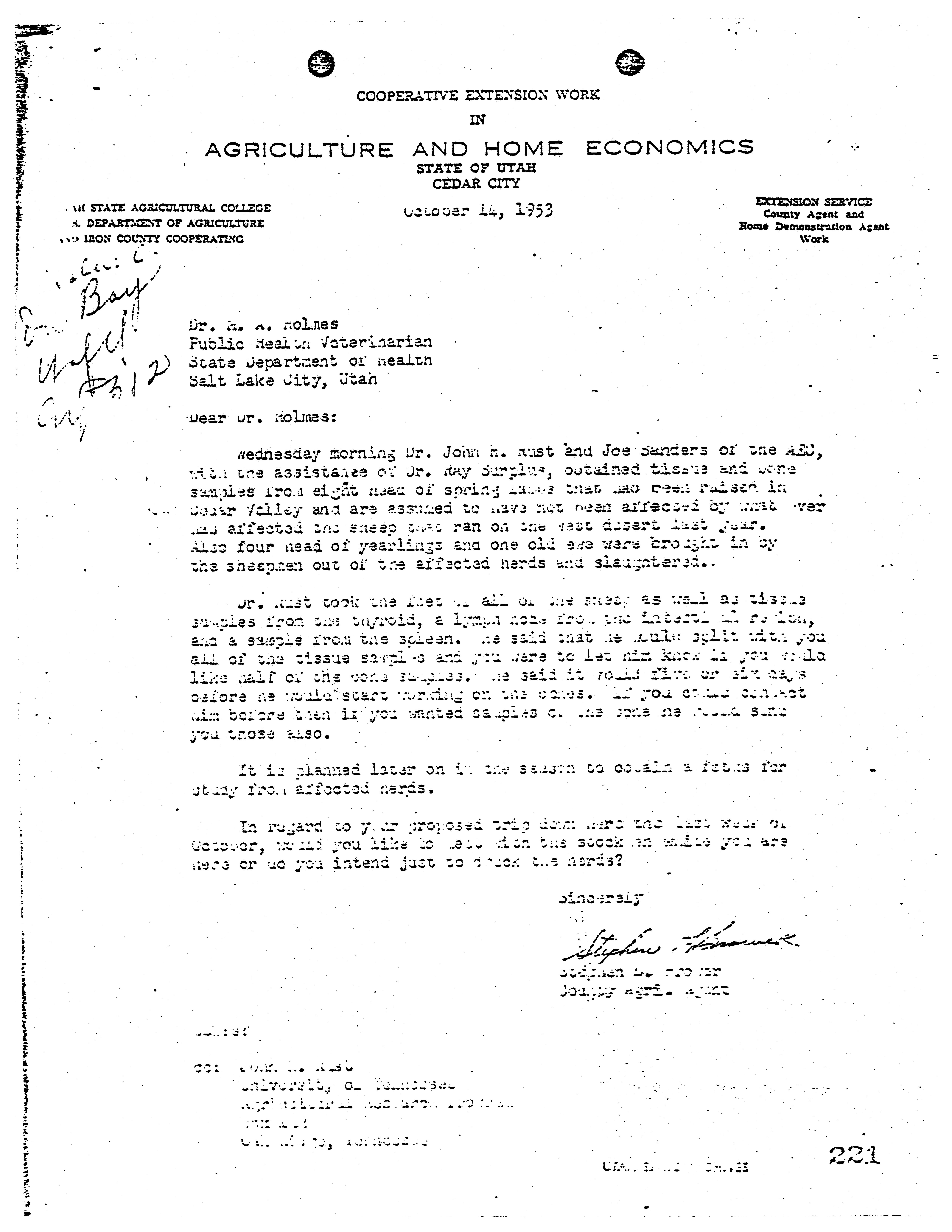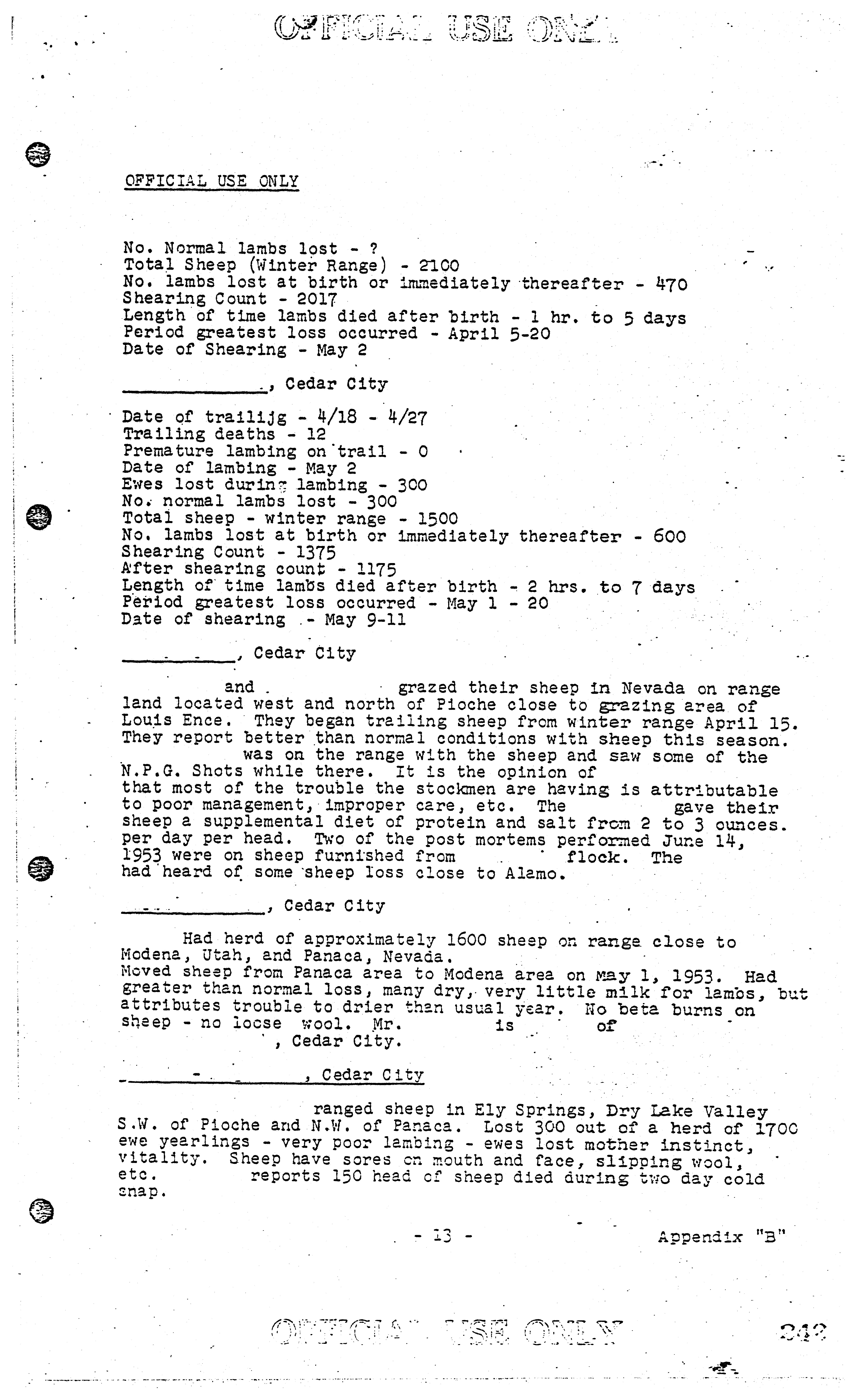 - "Correspondence and reports on sheep losses in Utah (continued)", Dwight Ink Collection, Iowa State University Library Digital Collections