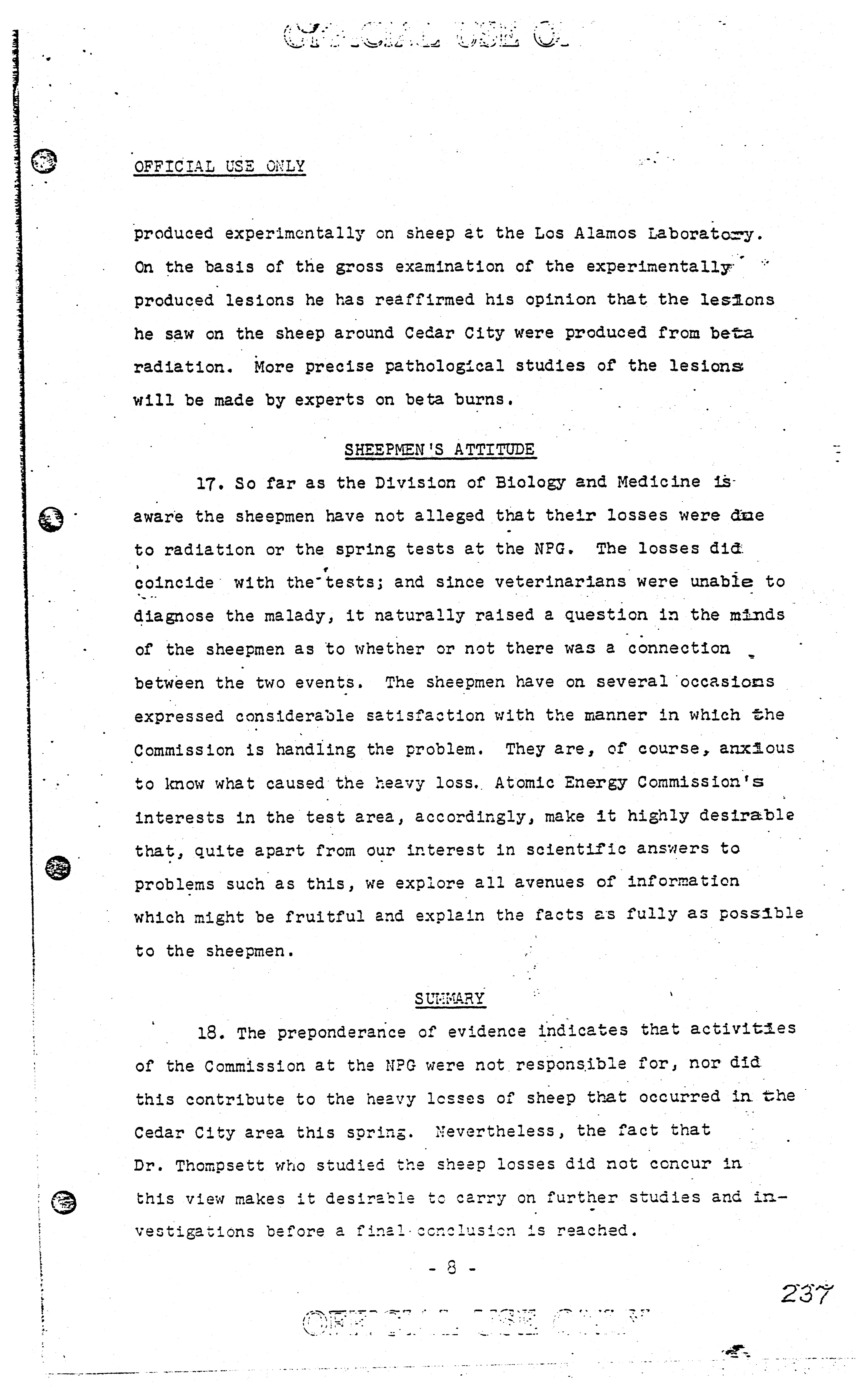 - Nuclear fallout's effects on health in Utah: research and correspondence, 1950-1979