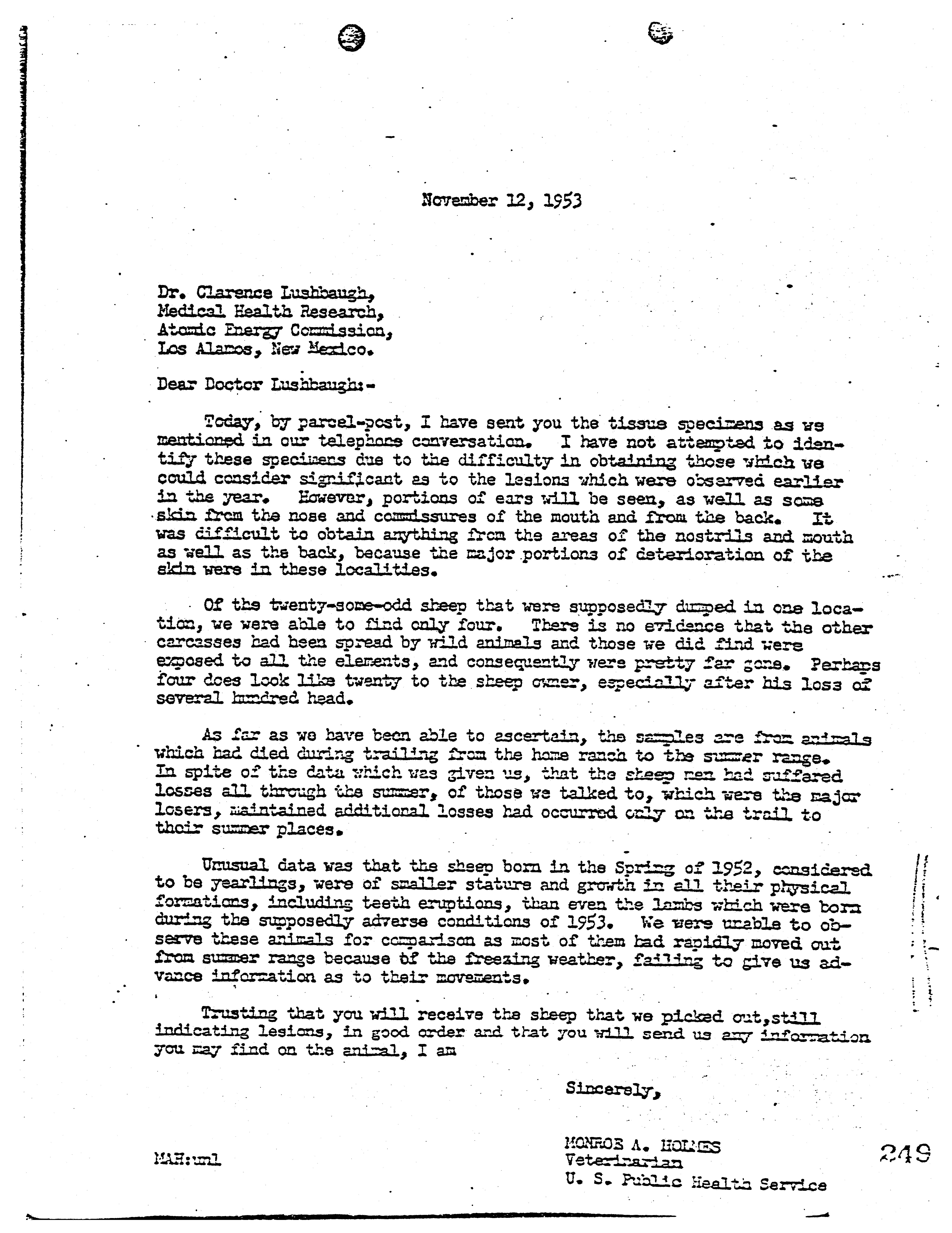 Correspondence and reports on sheep losses in Utah (continued) Item Info