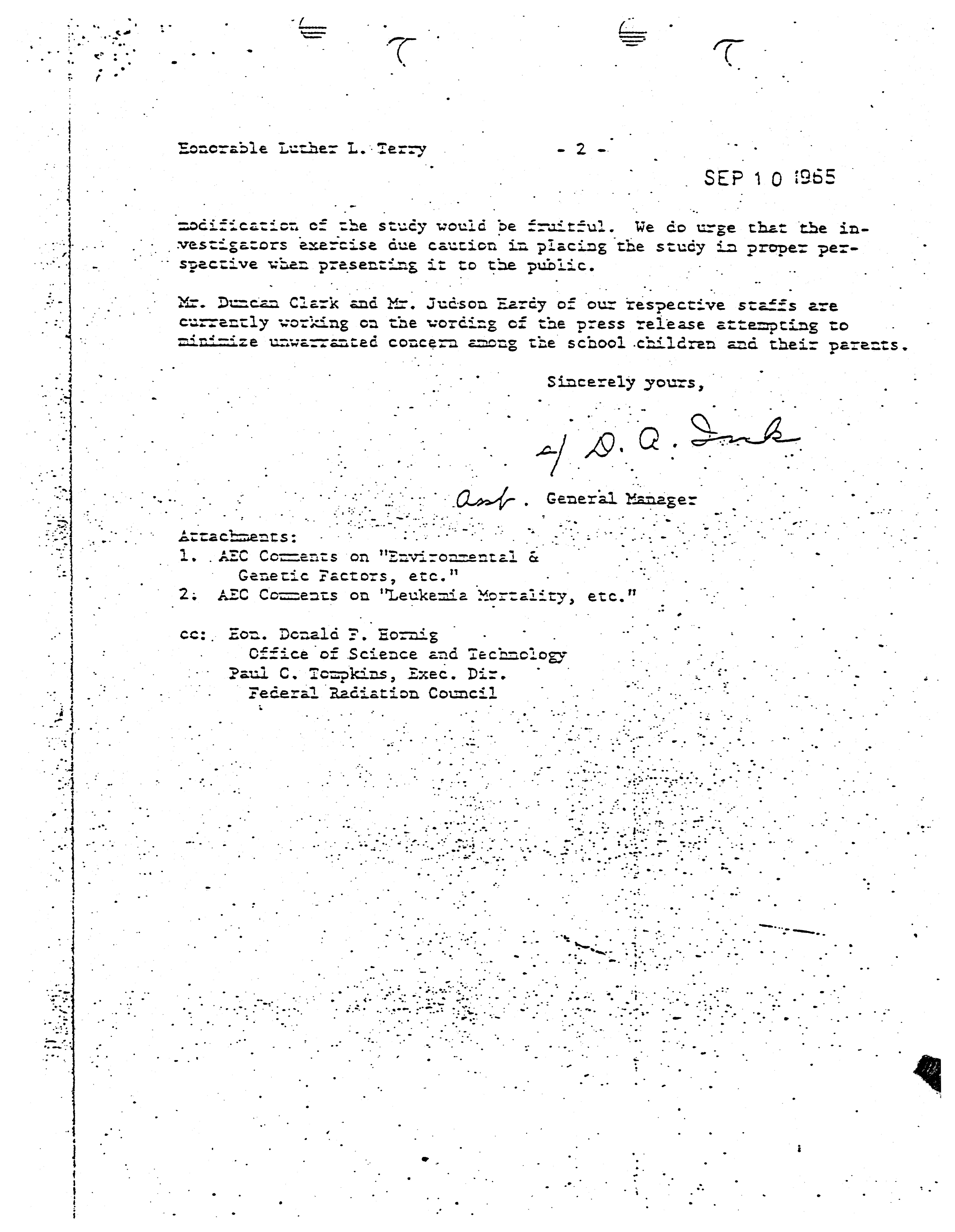 - Dwight A. Ink letter to Luther L. Terry with two attachments, September 10, 1965