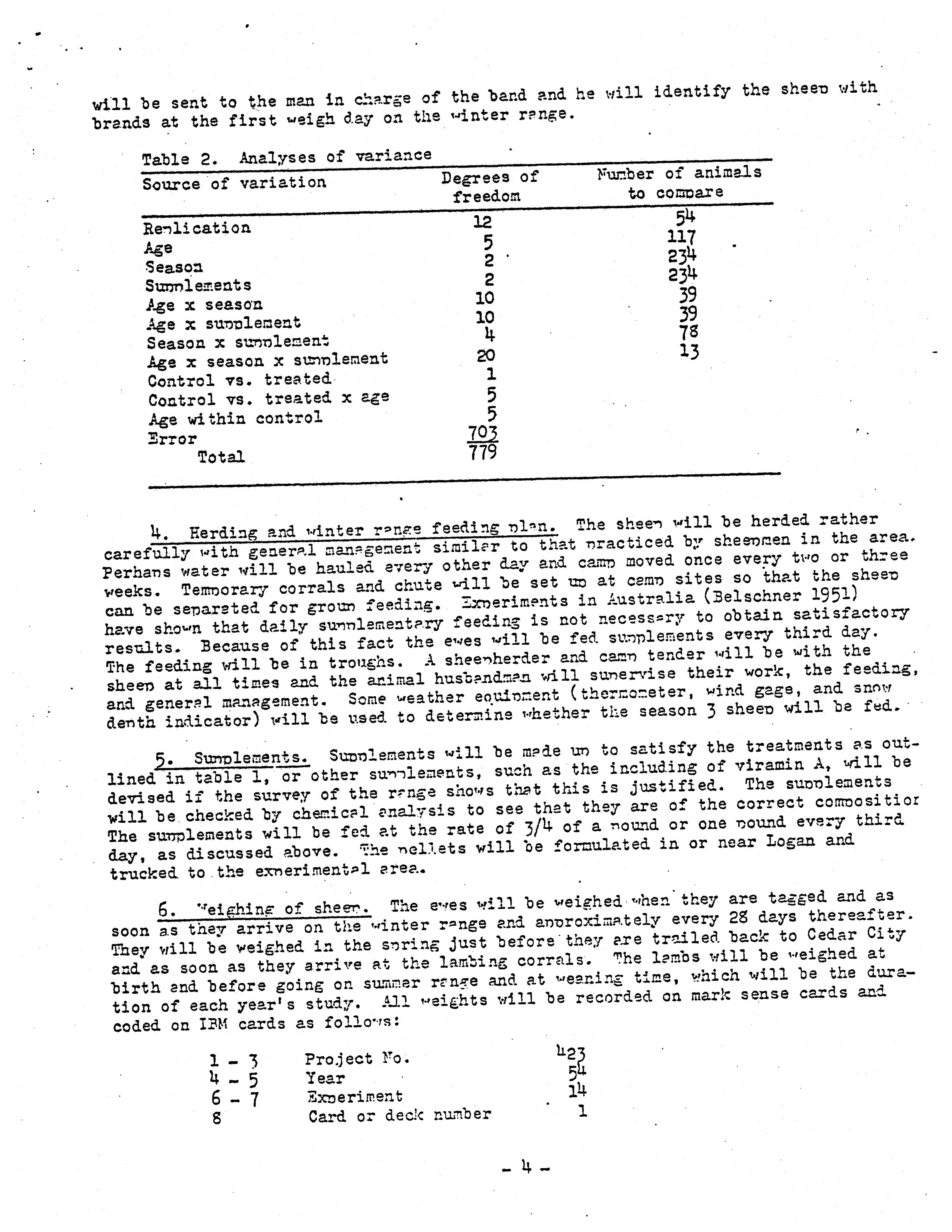 - Annotation: Experiment Outline. Agricultural Experiment Station. Utah State Agricultural College. Project No. 423. Experiment No. 54-14