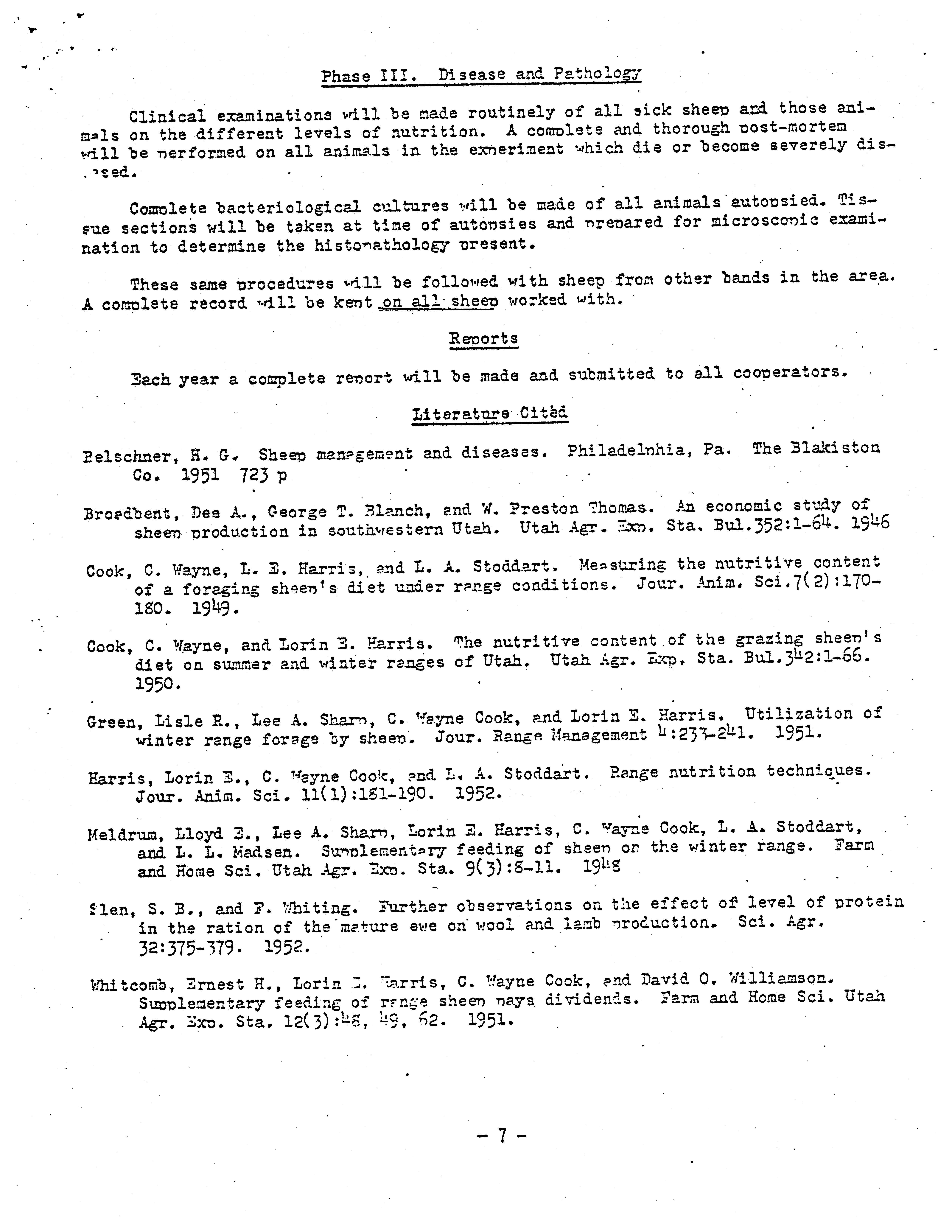 - "The effects of the level of nutrition on the pathology and productivity of range sheep", Dwight Ink Collection, Iowa State University Library Digital Collections