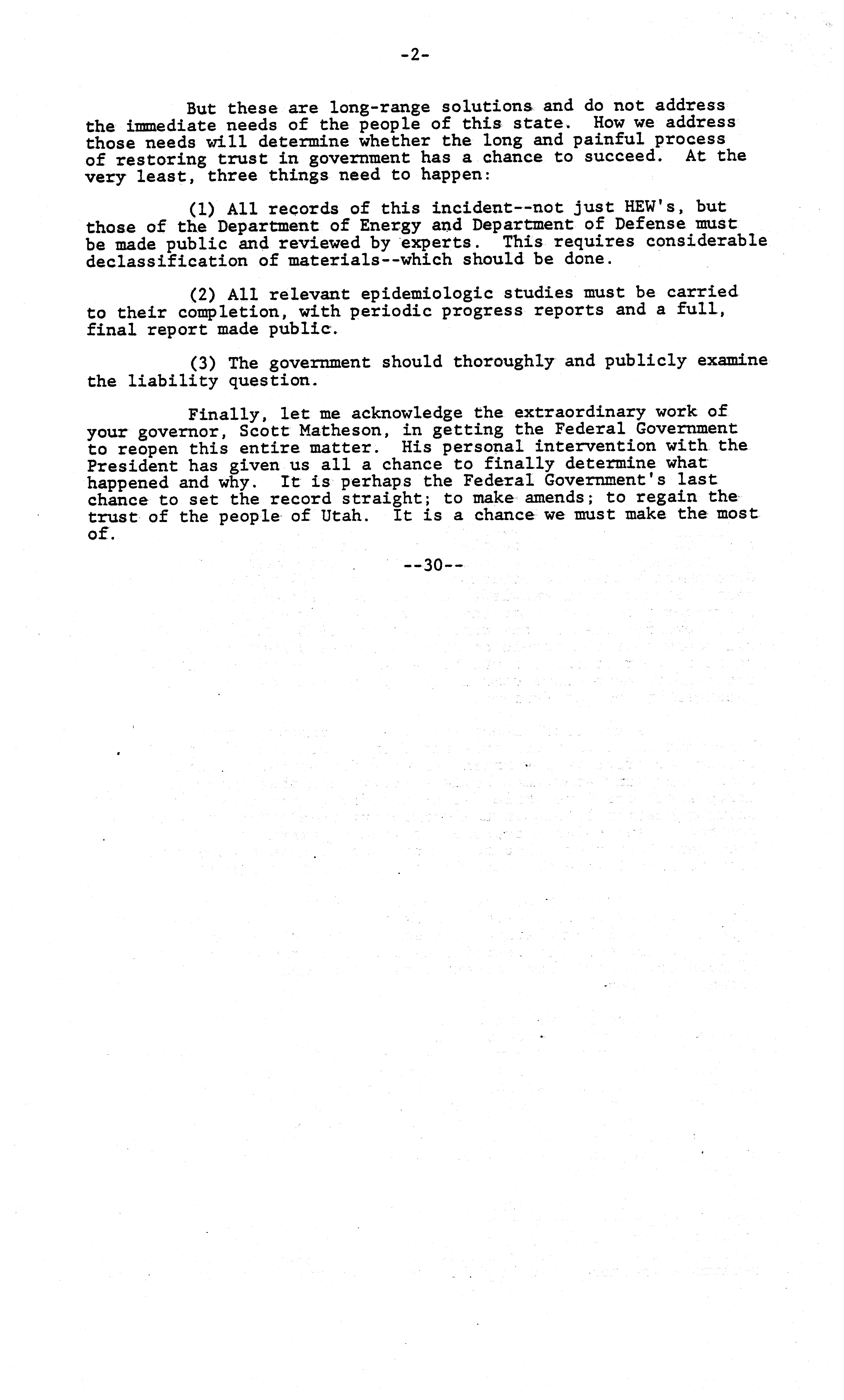 - "Opening statement of senator Edward M. Kennedy at a hearing on the long-range health effects of radioactive fallout from the above-ground nuclear tests conducted by the United States in the 1950s, April 19, 1979", Dwight Ink Collection, Iowa State University Library Digital Collections