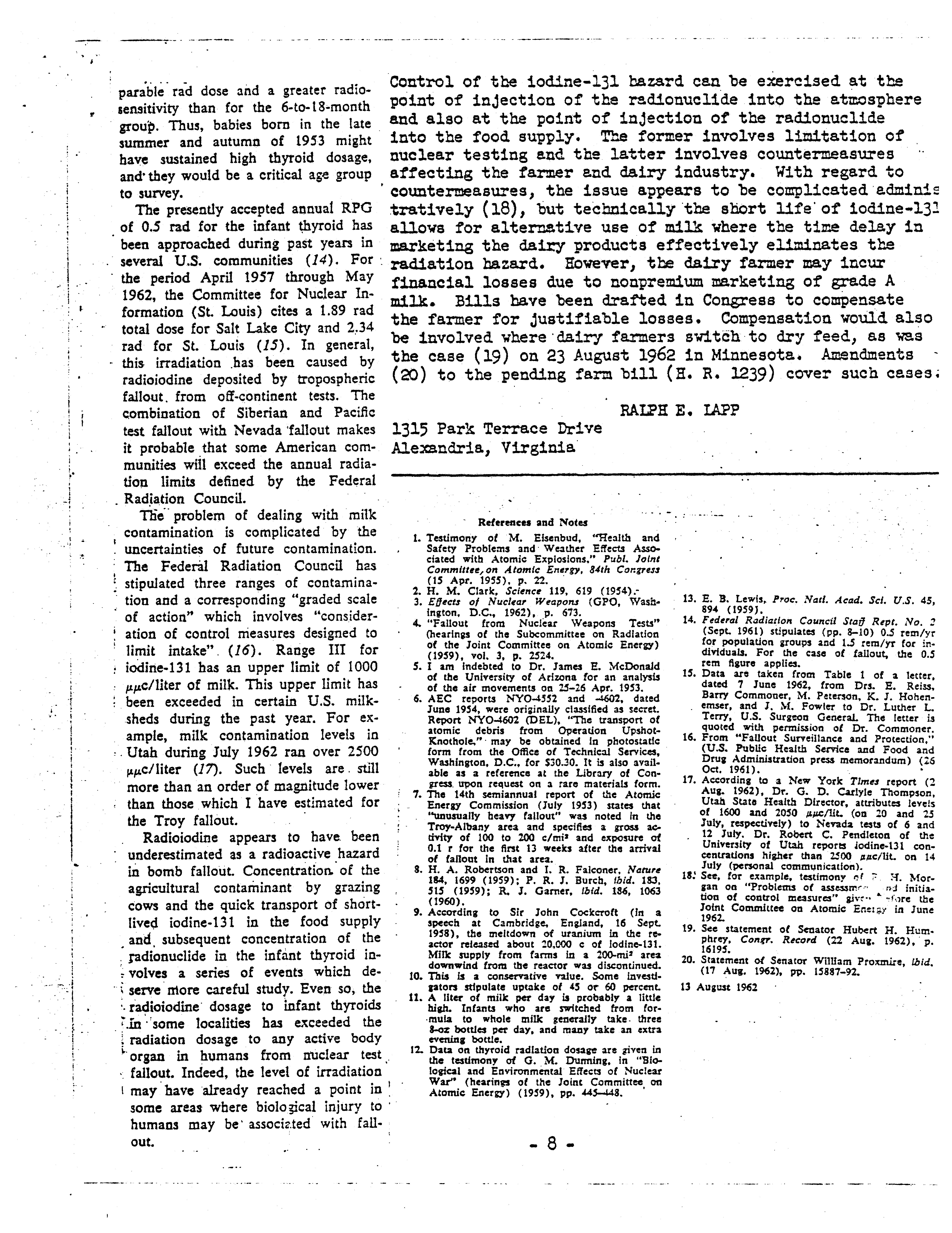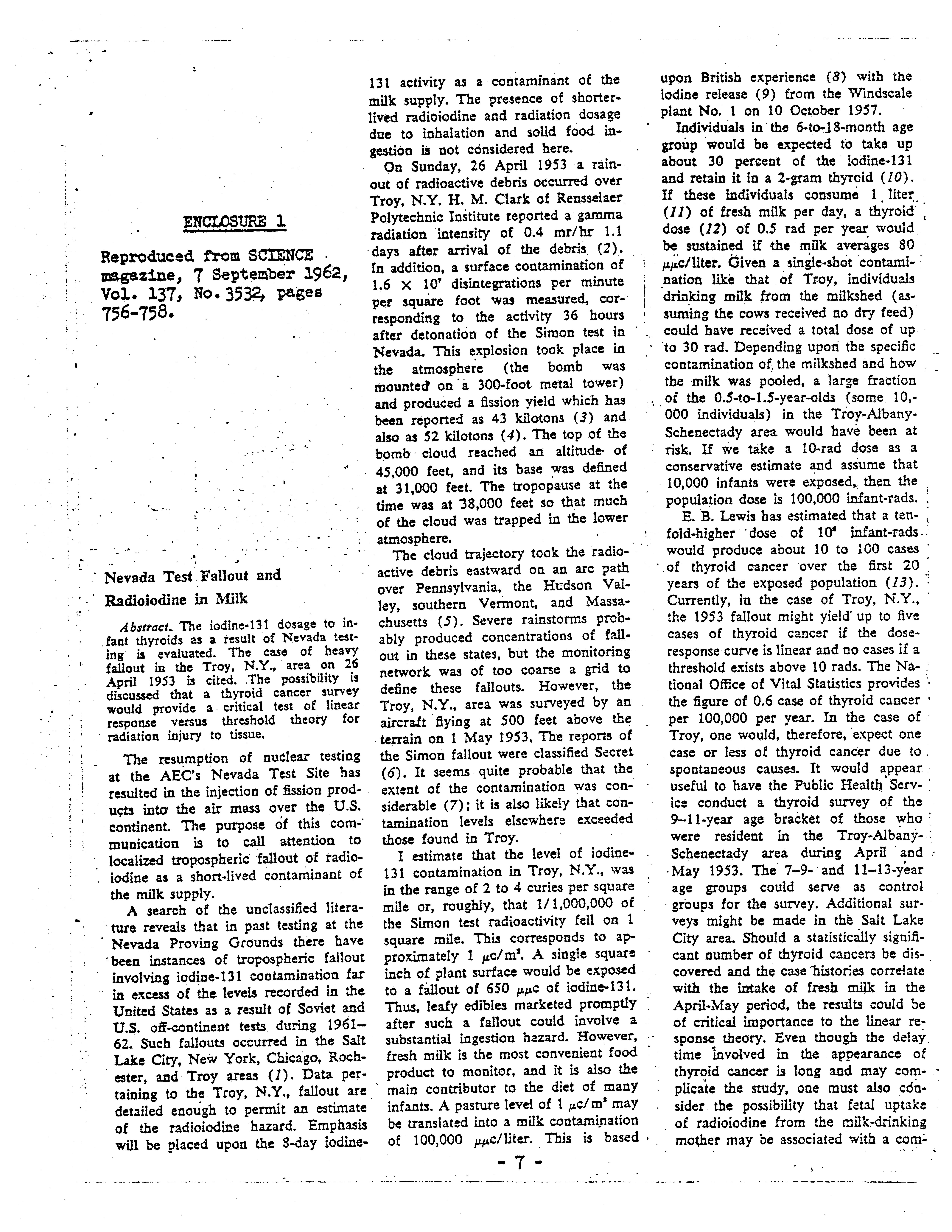 - Nuclear fallout's effects on health memorandums and reports, 1962-1963, 1979