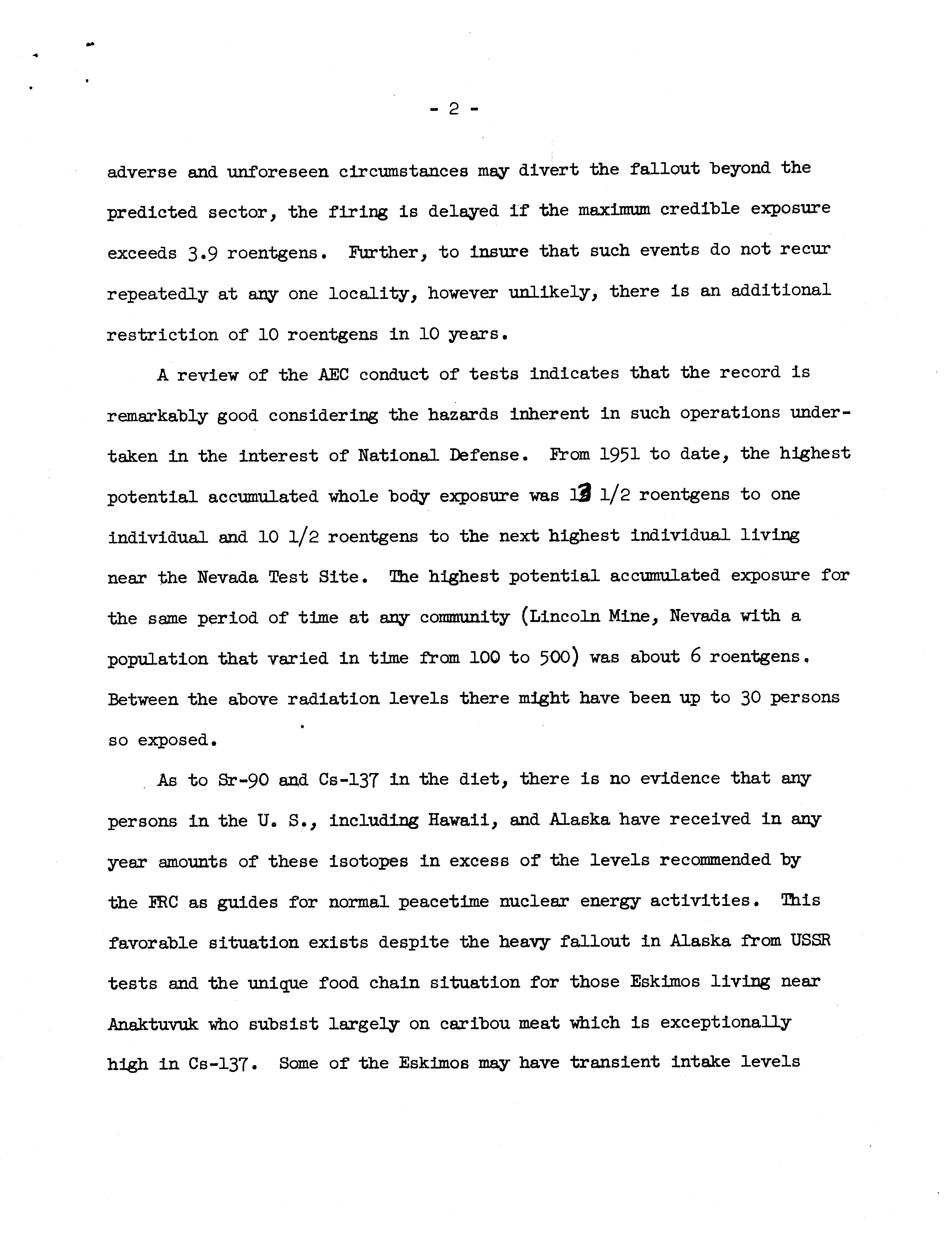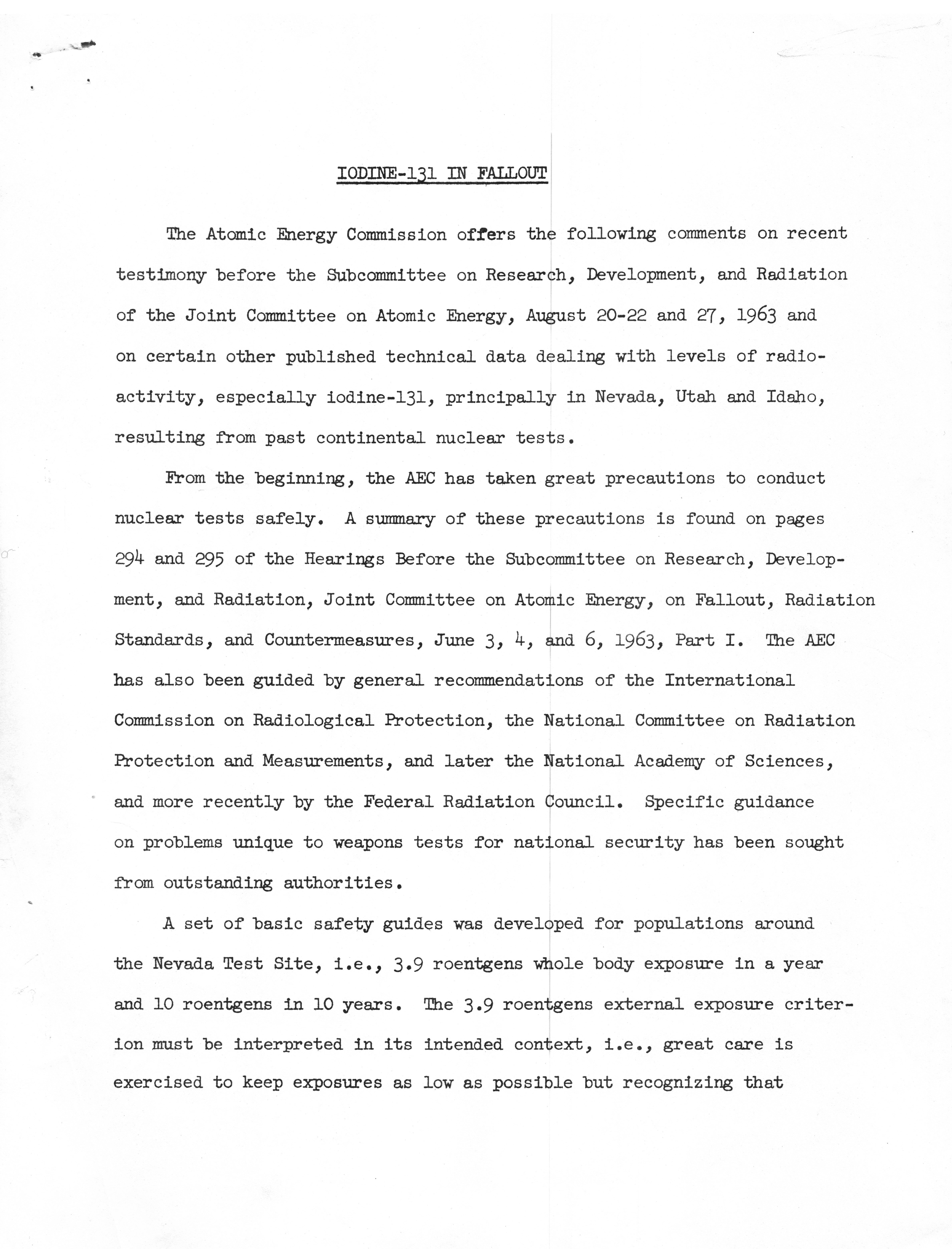 - Nuclear fallout's effects on health memorandums and reports, 1962-1963, 1979