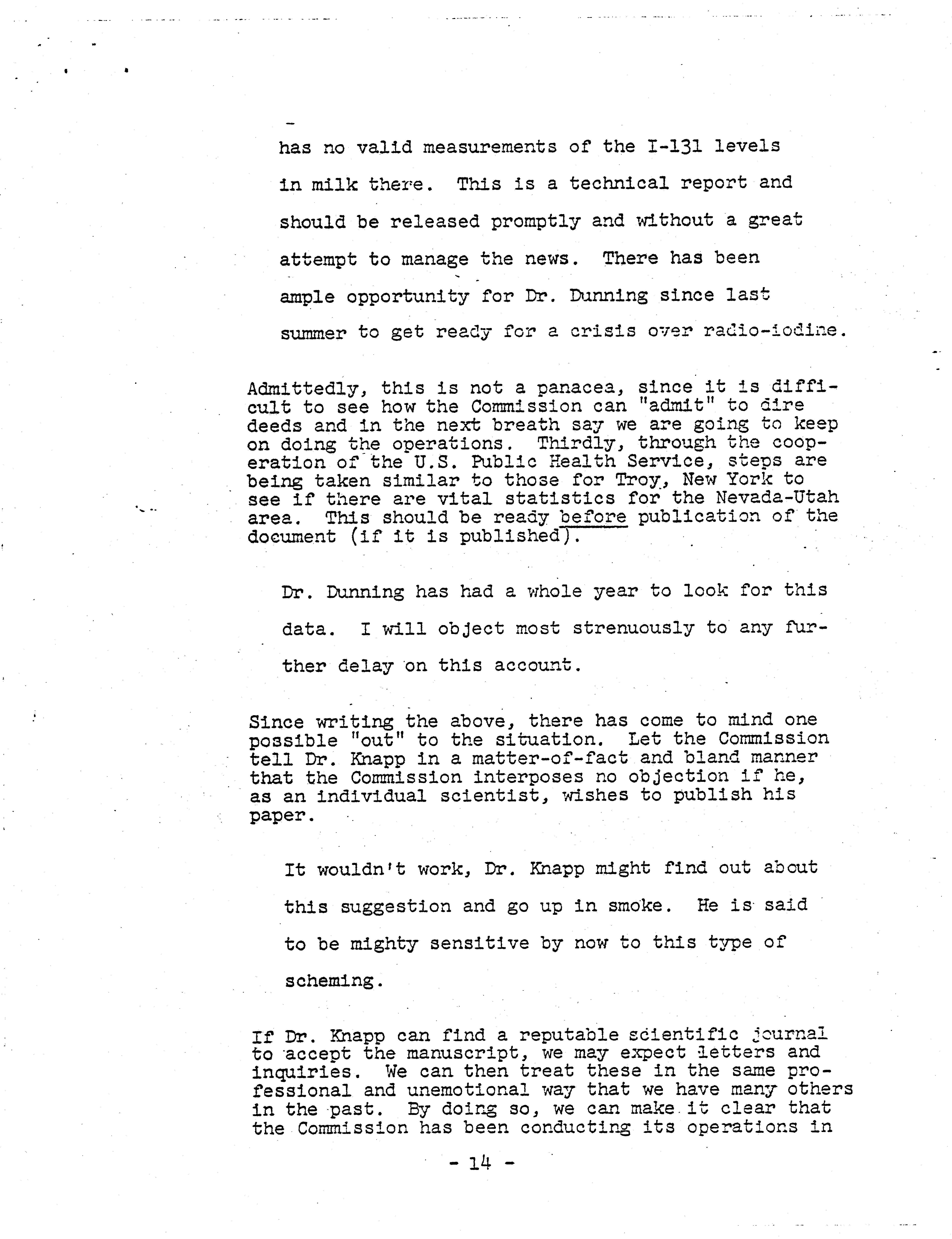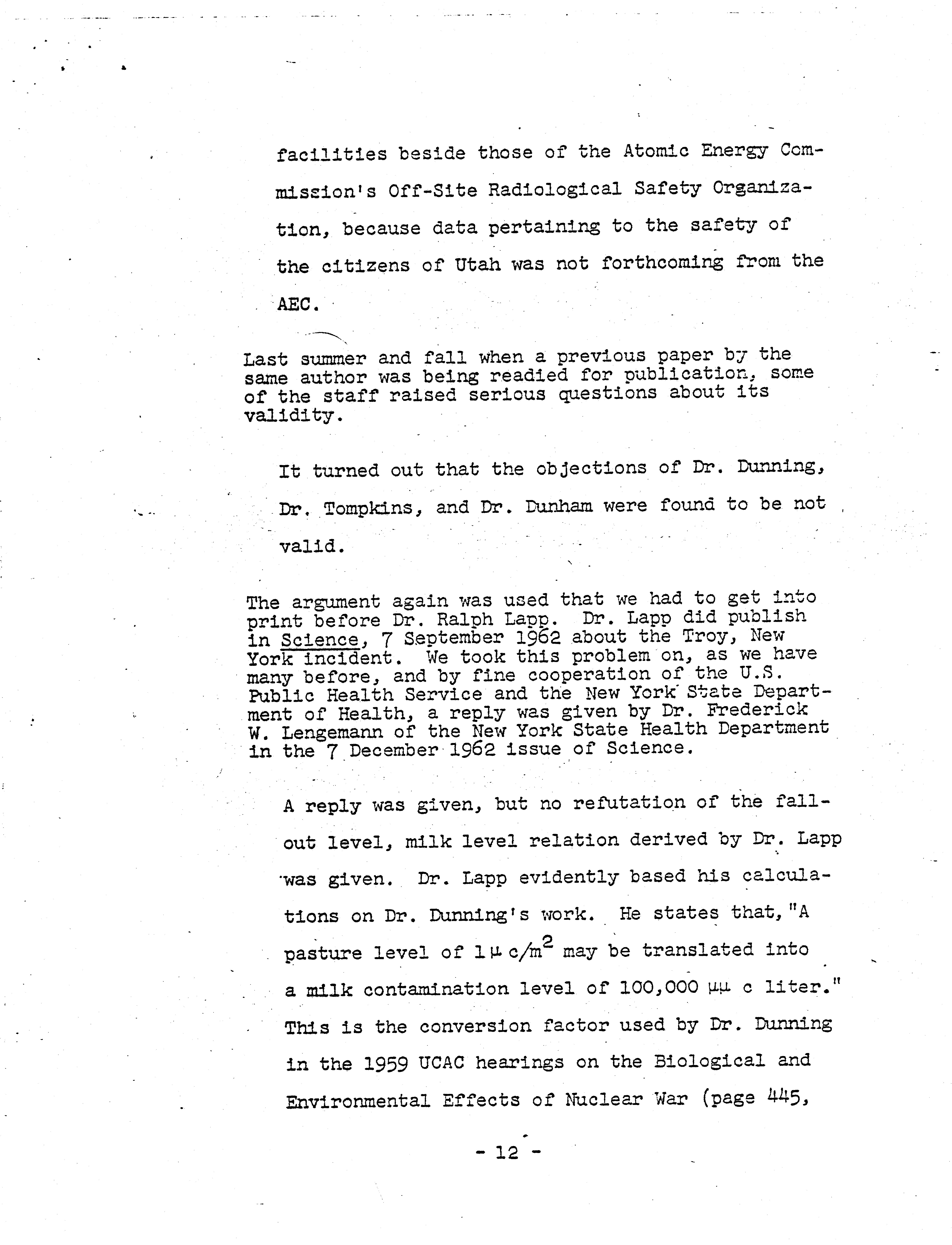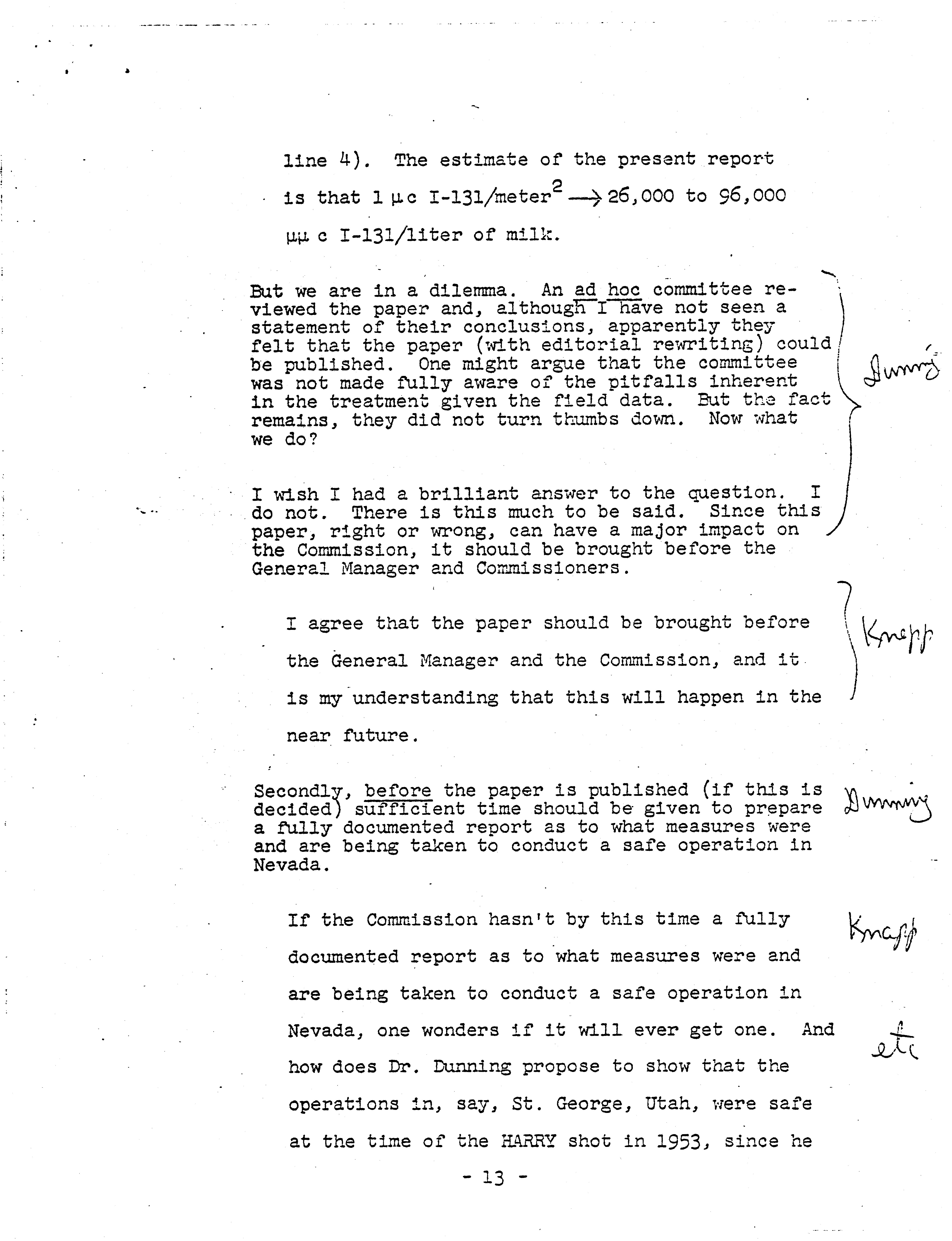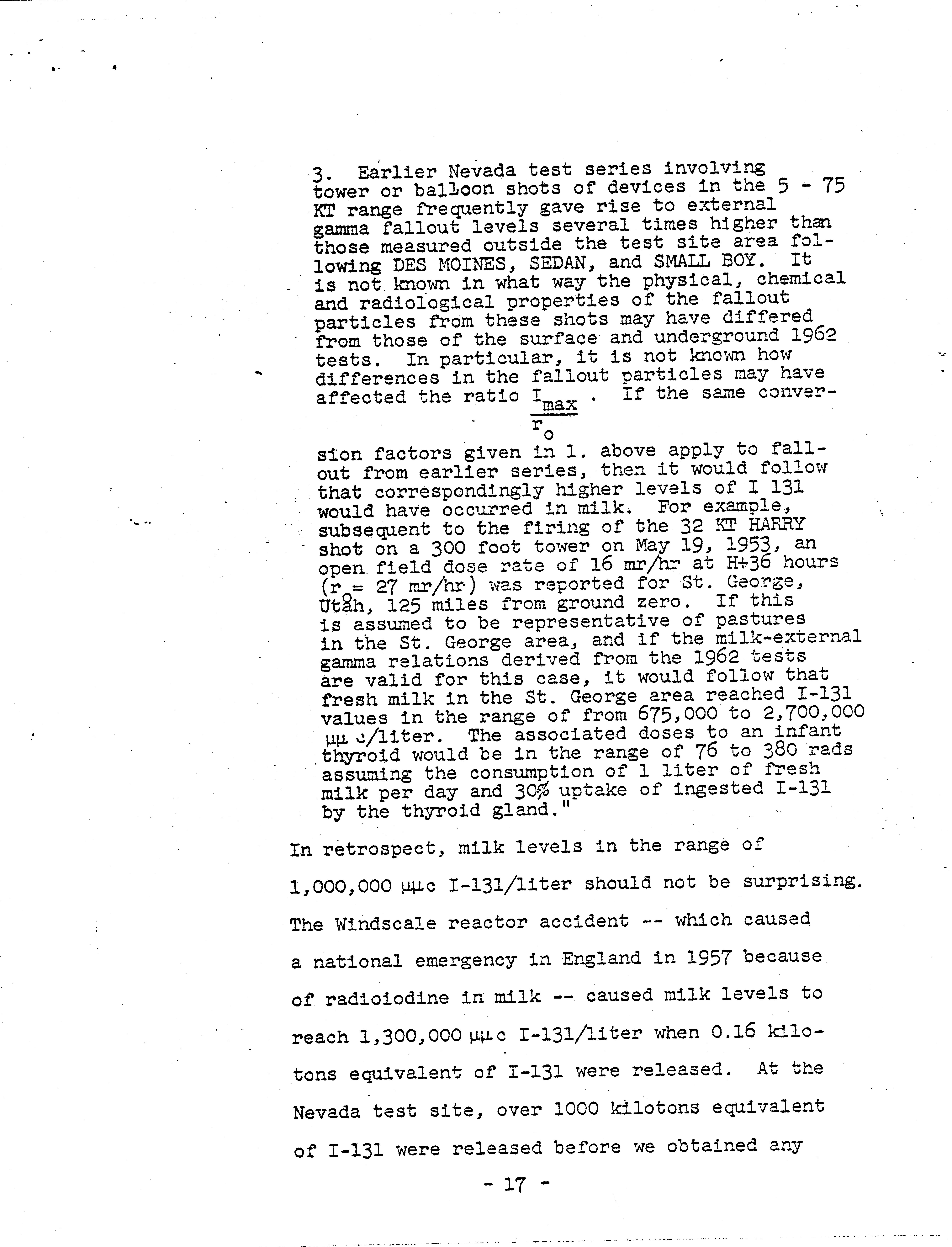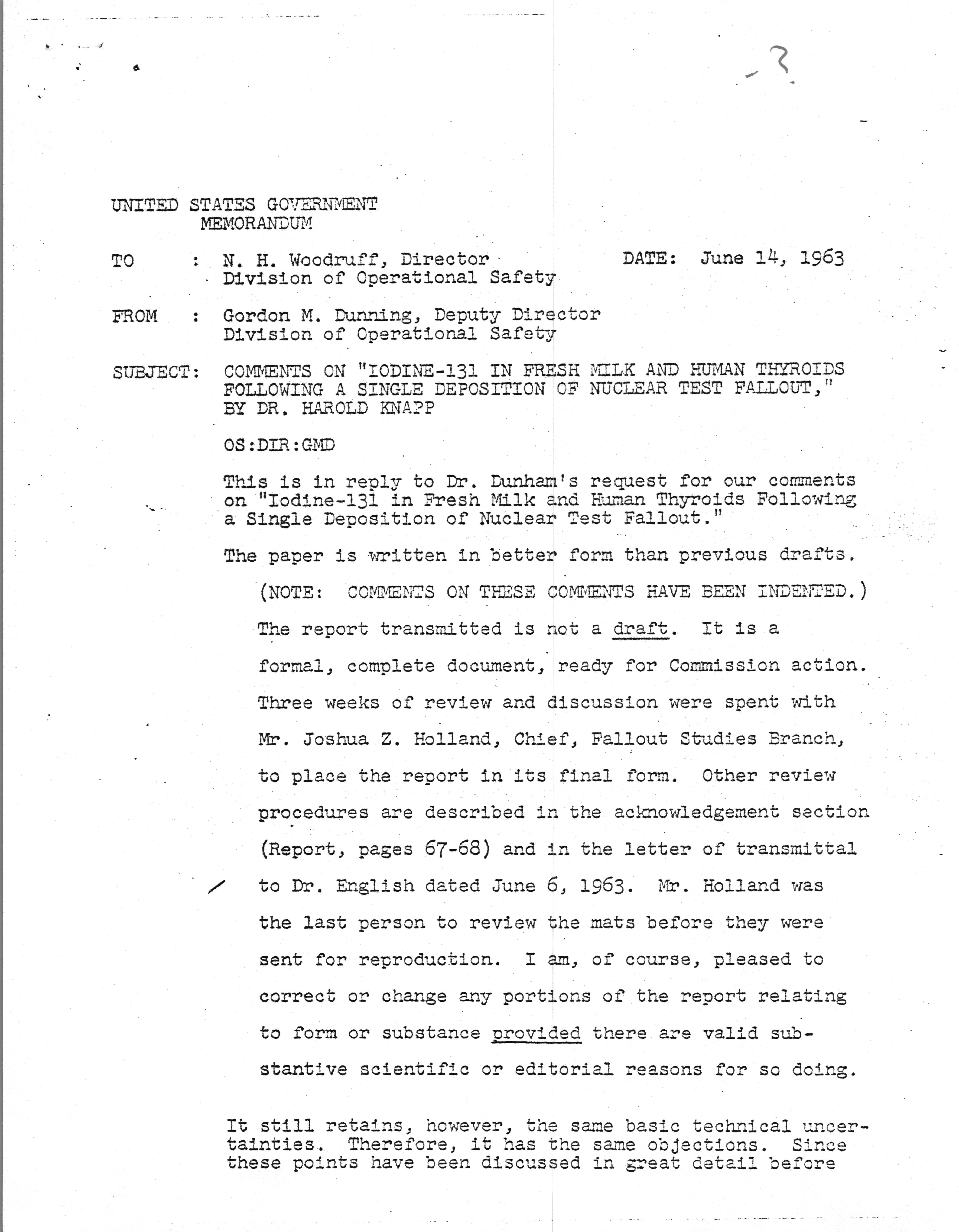 - Annotation: Comments on Iodine-131 in fresh milk and human thyroids following a single deposition of nuclear test fallout, by Dr. Harold Knapp
