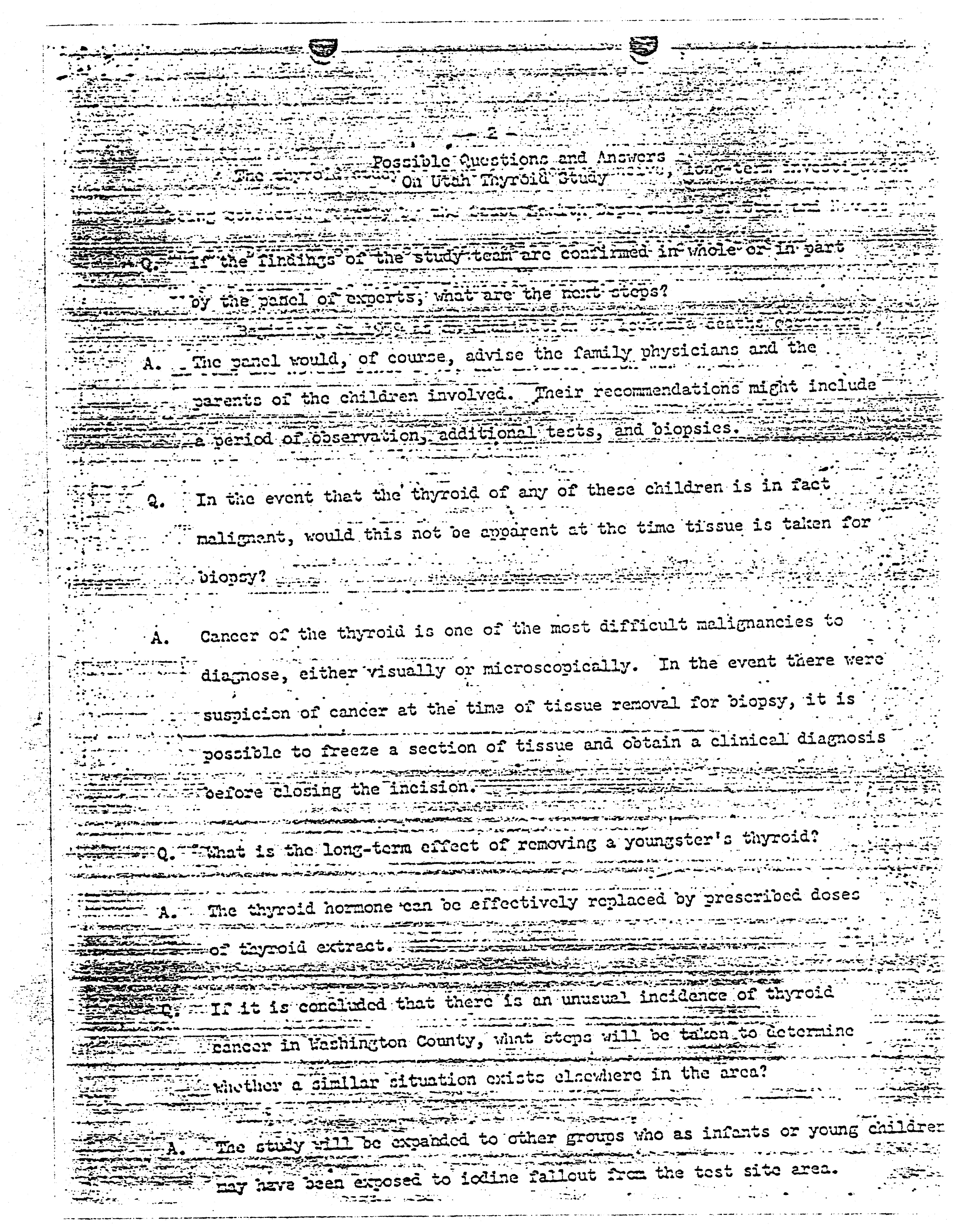 - "Possible questions and answers on Utah thyroid study", Dwight Ink Collection, Iowa State University Library Digital Collections