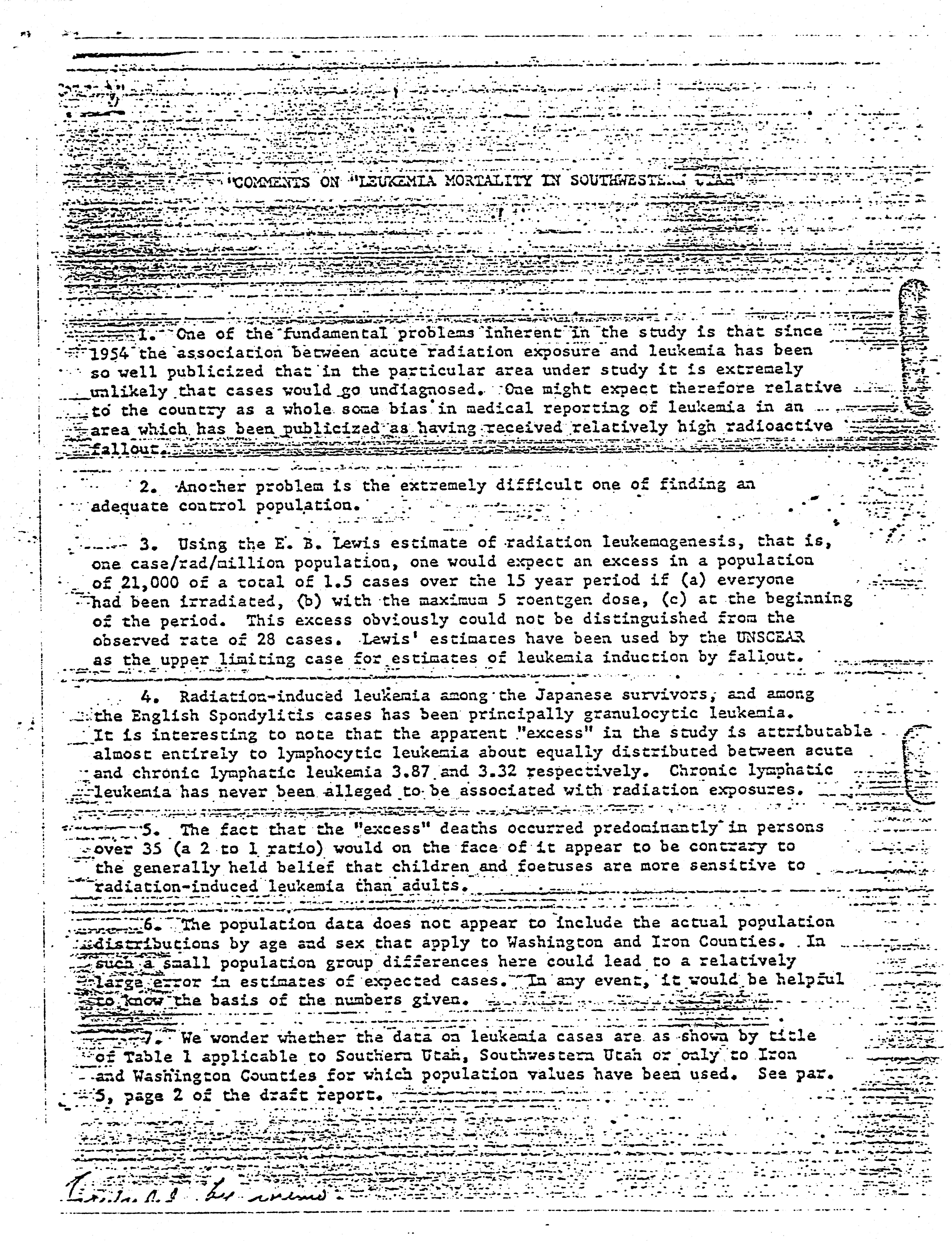 - "Comments on "Leukemia mortality in Southwestern Utah"", Dwight Ink Collection, Iowa State University Library Digital Collections