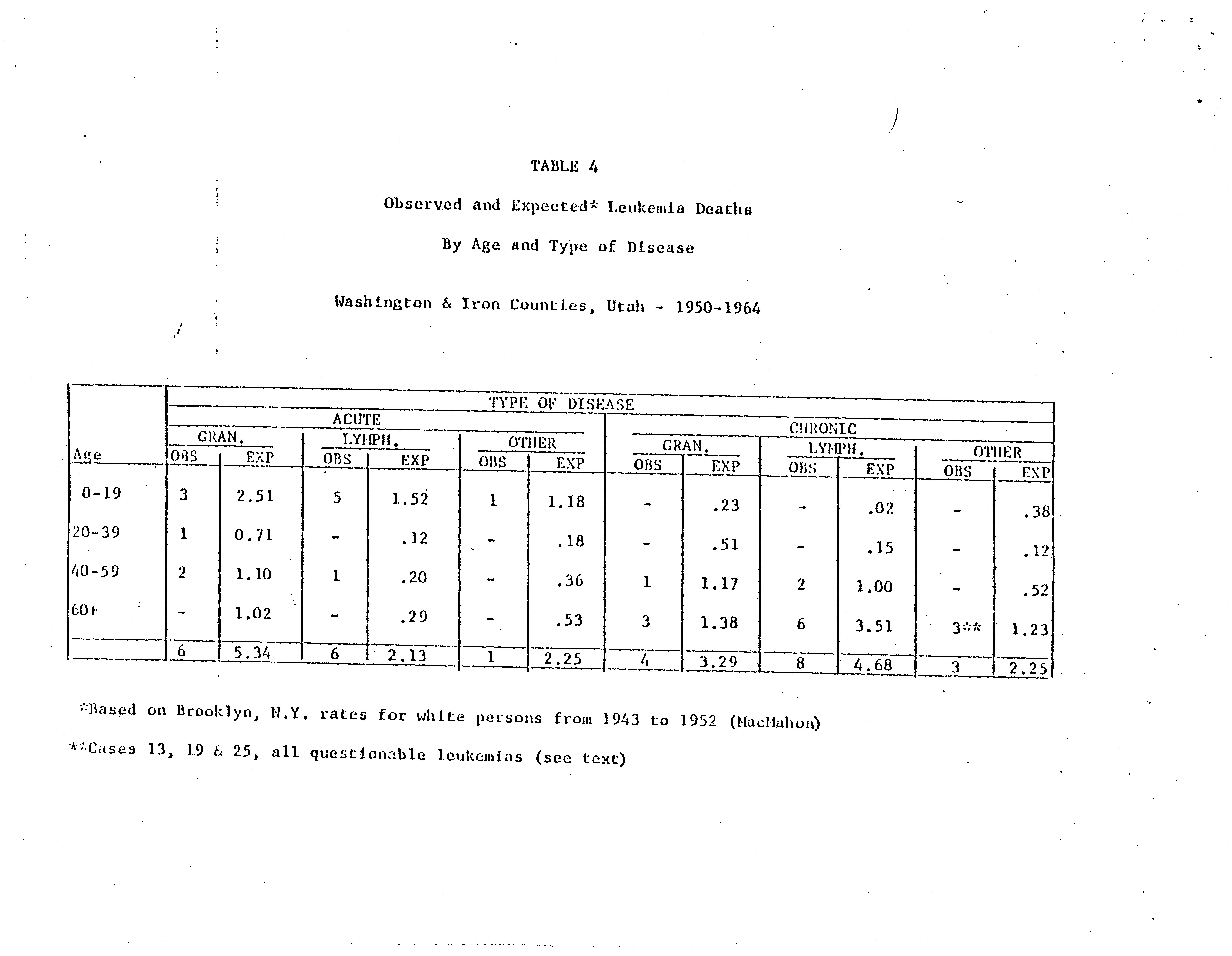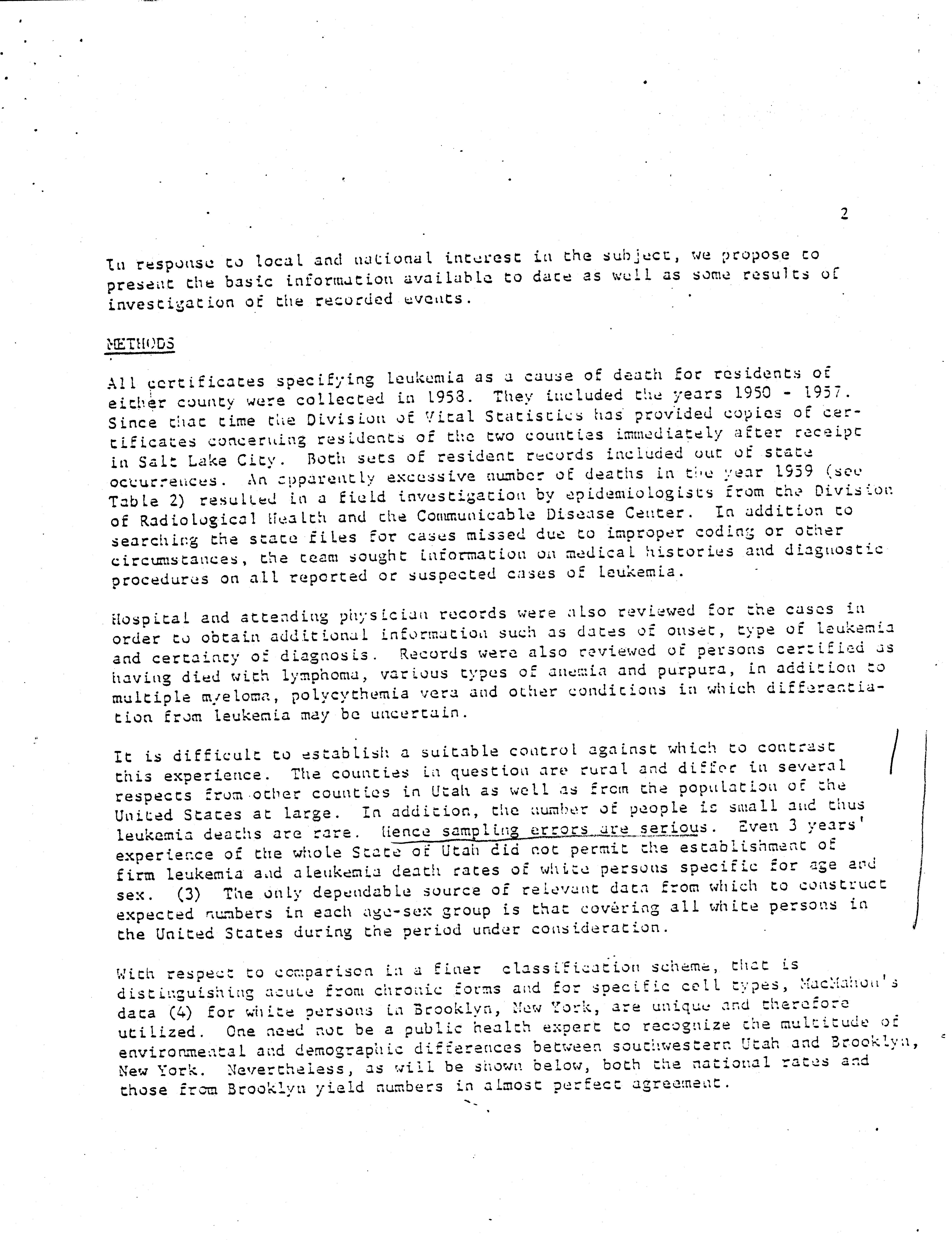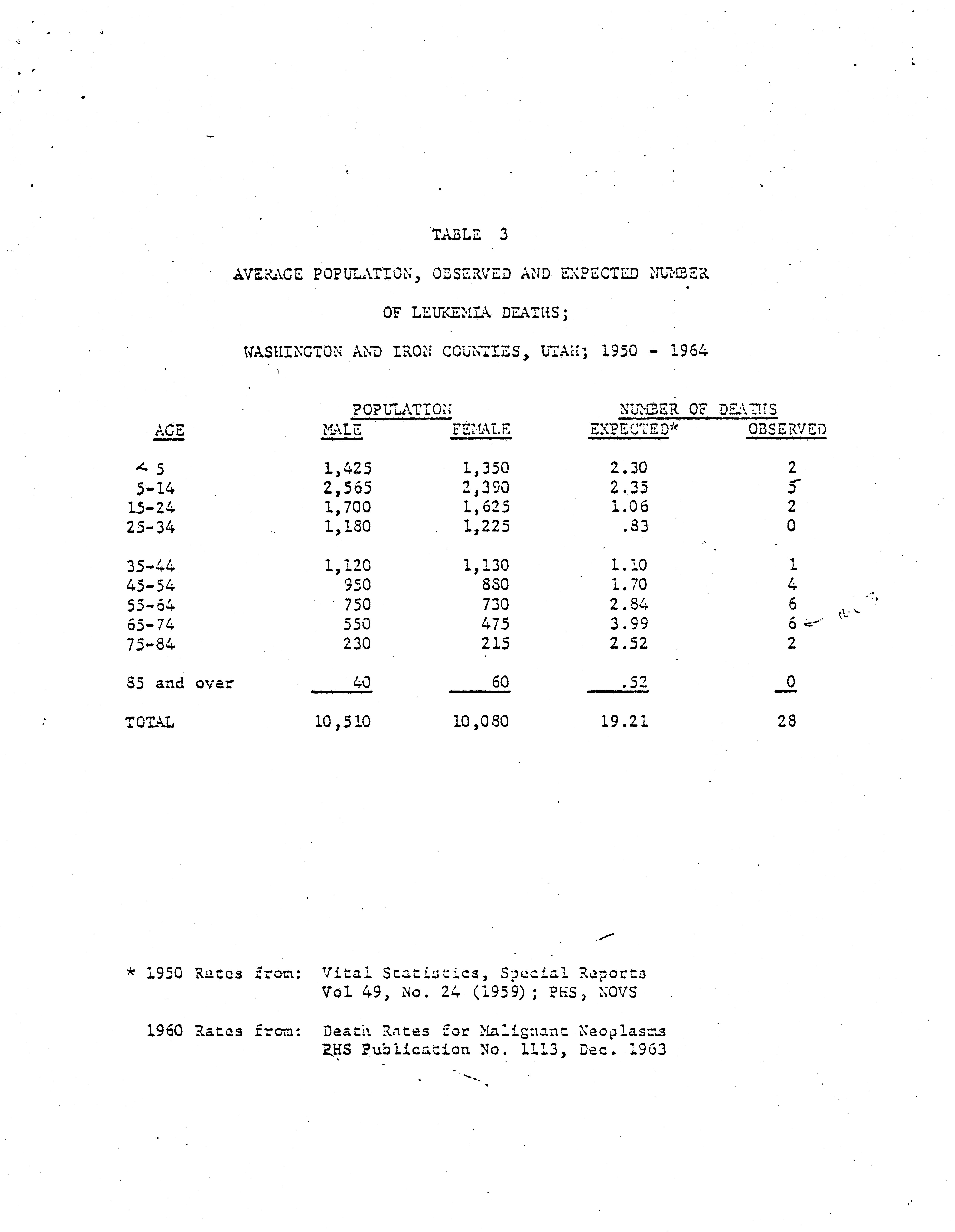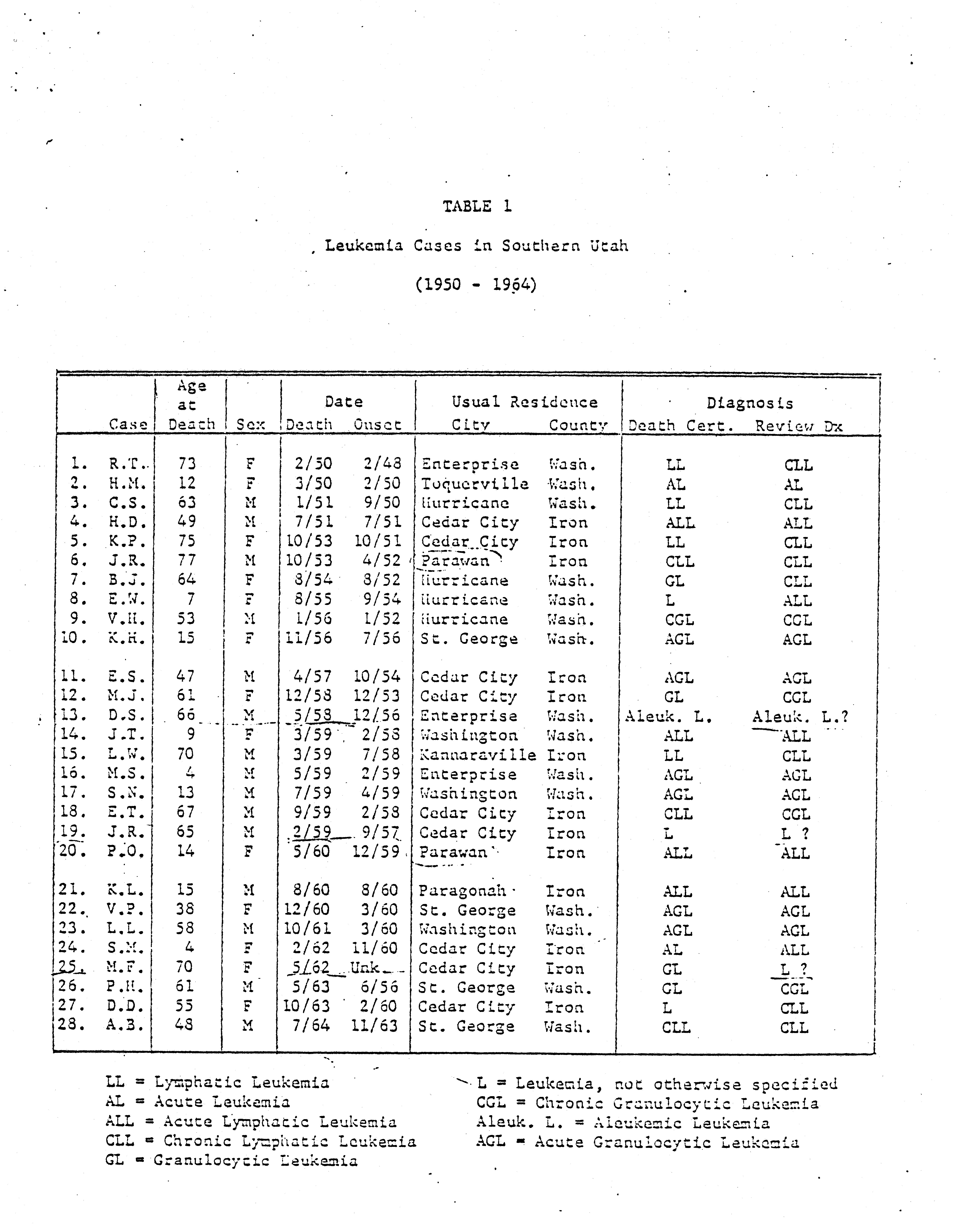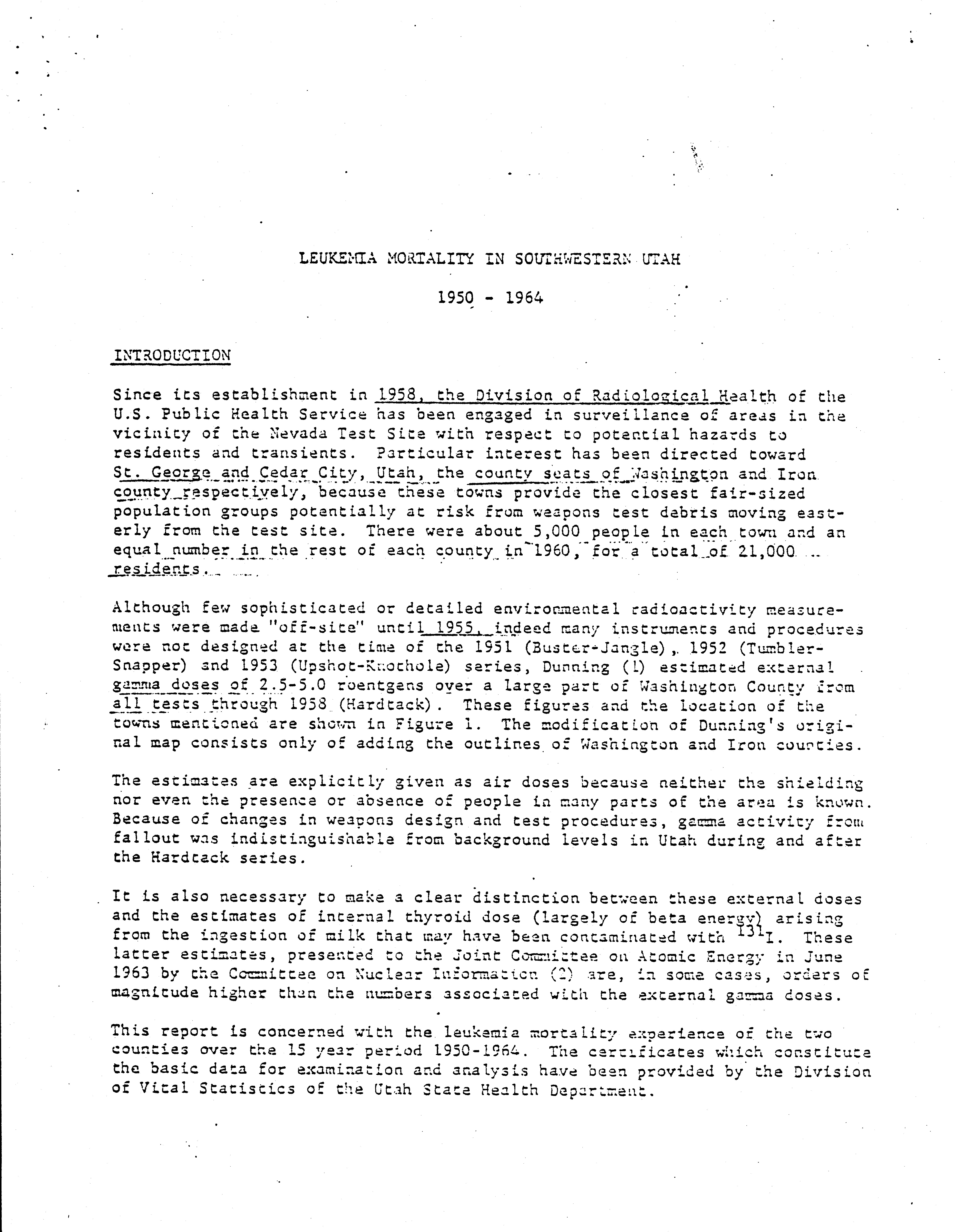 - Leukemia mortality in Southwestern Utah: 1950-1964, September 14, 1965