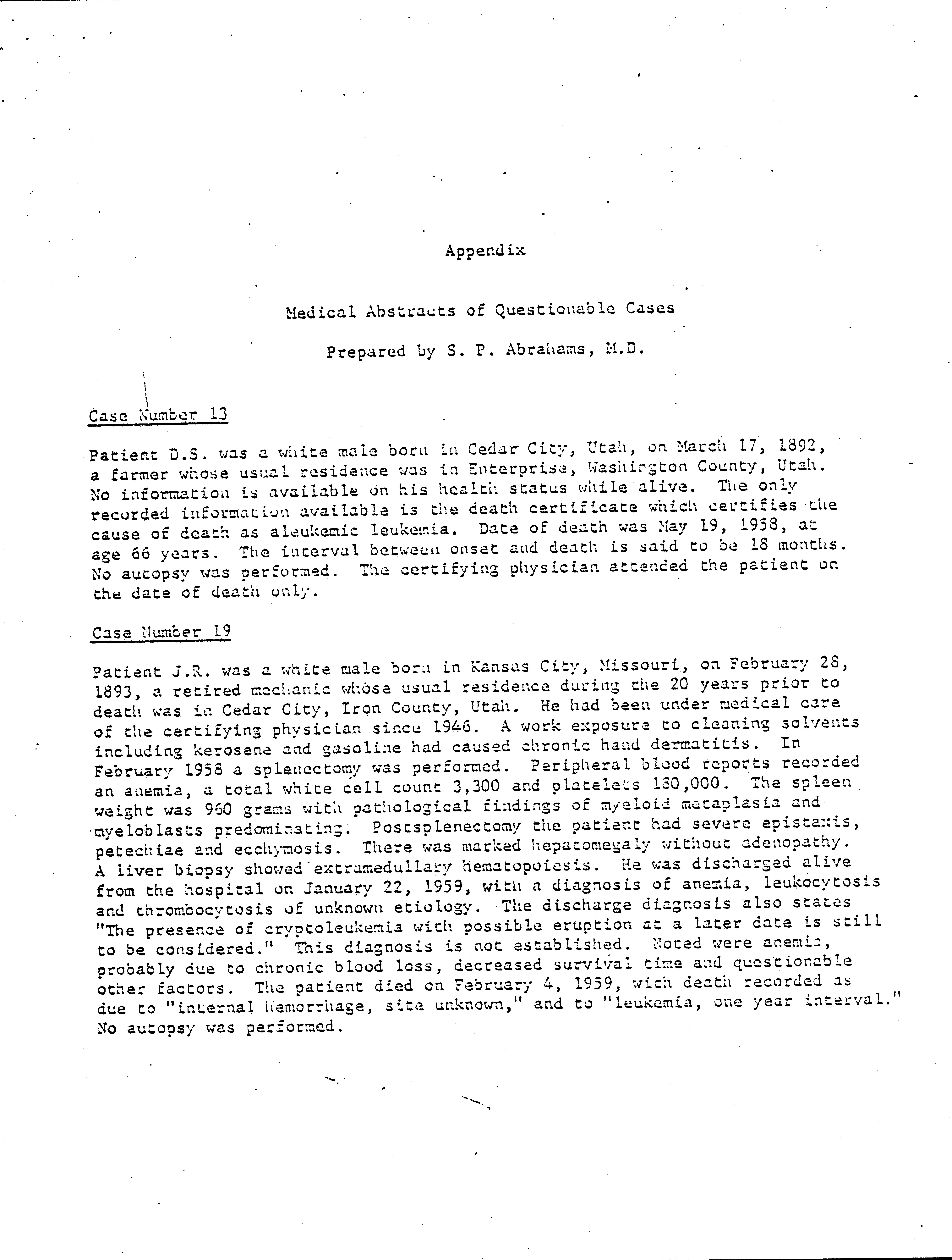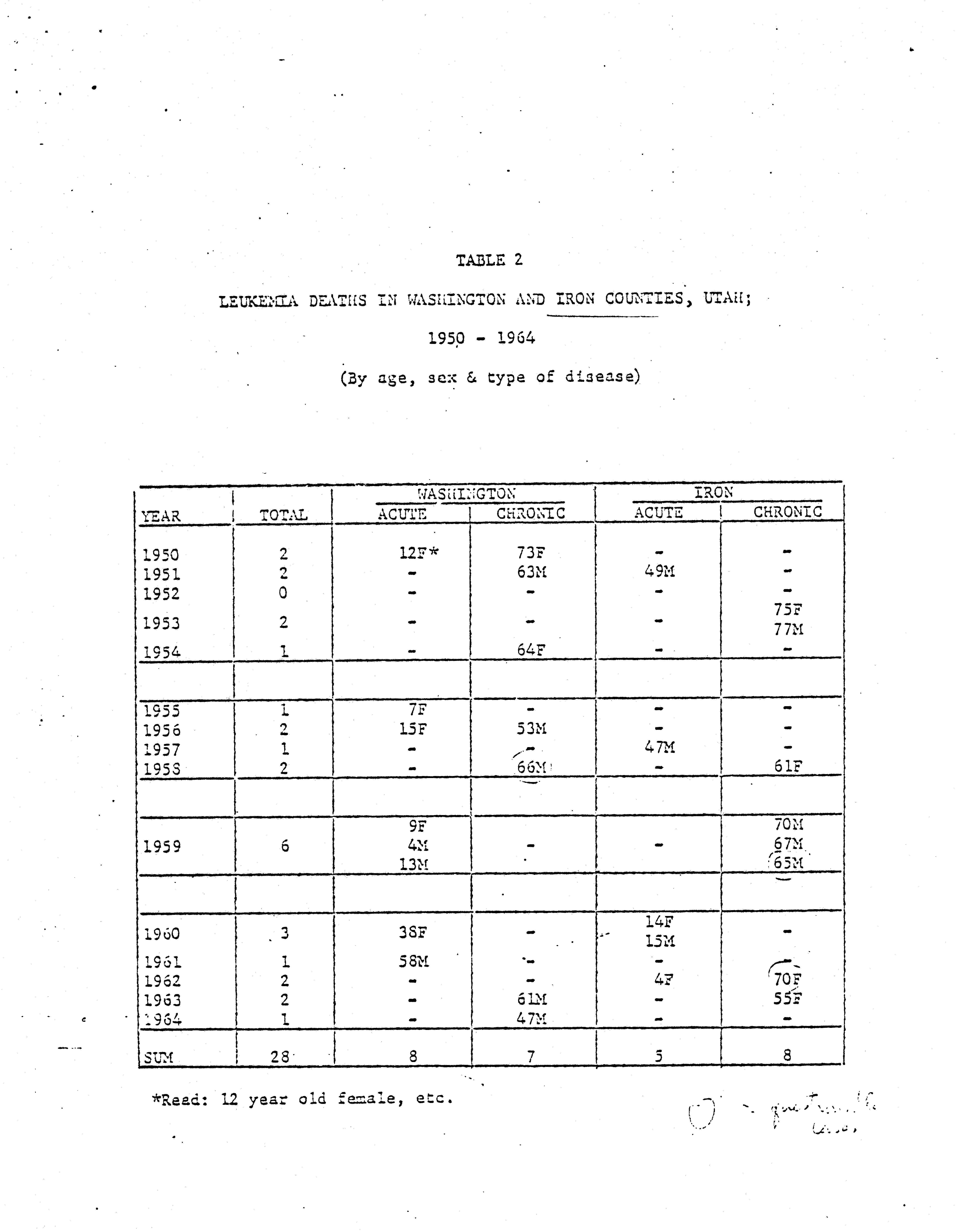 - "Leukemia mortality in Southwestern Utah: 1950-1964, September 14, 1965", Dwight Ink Collection, Iowa State University Library Digital Collections