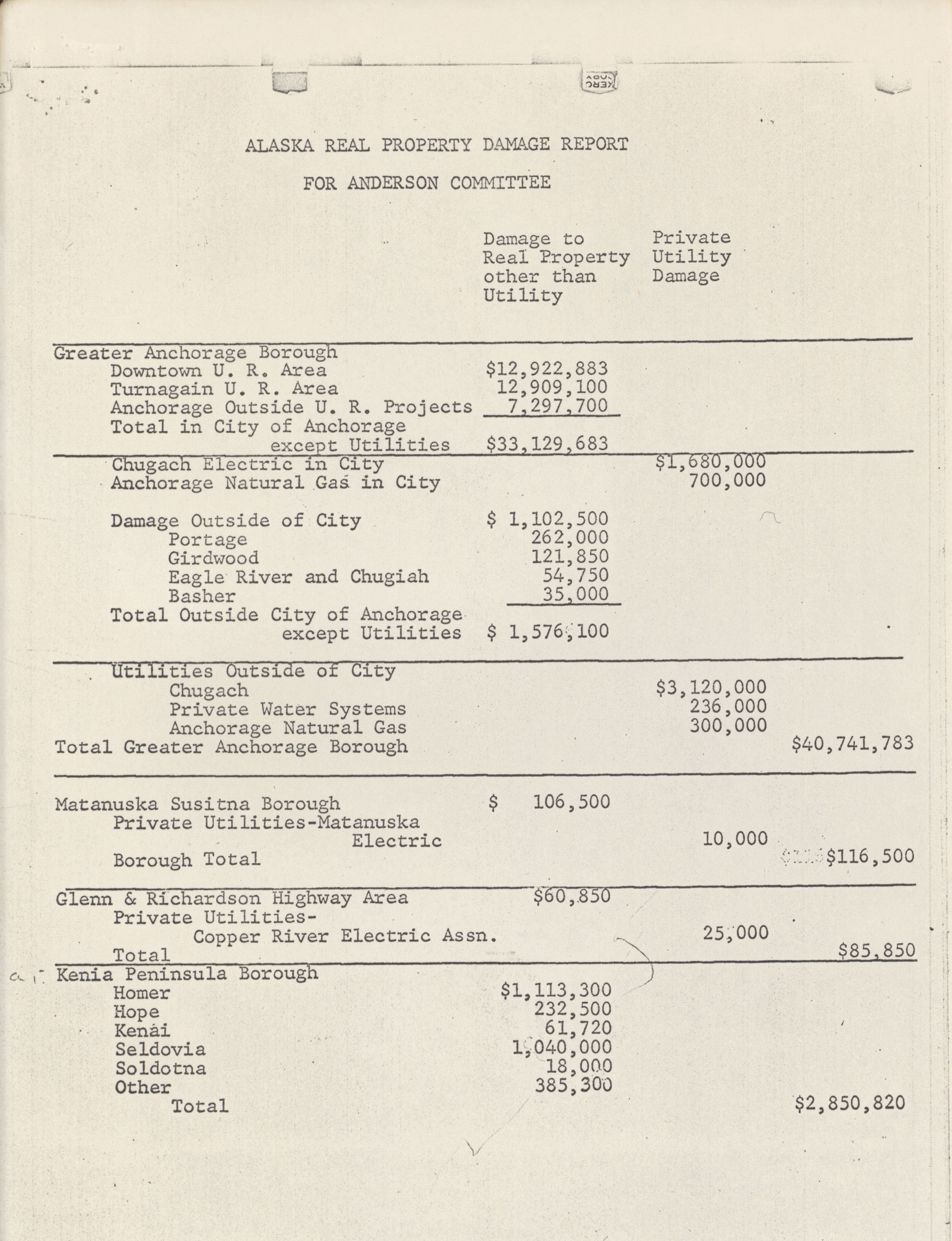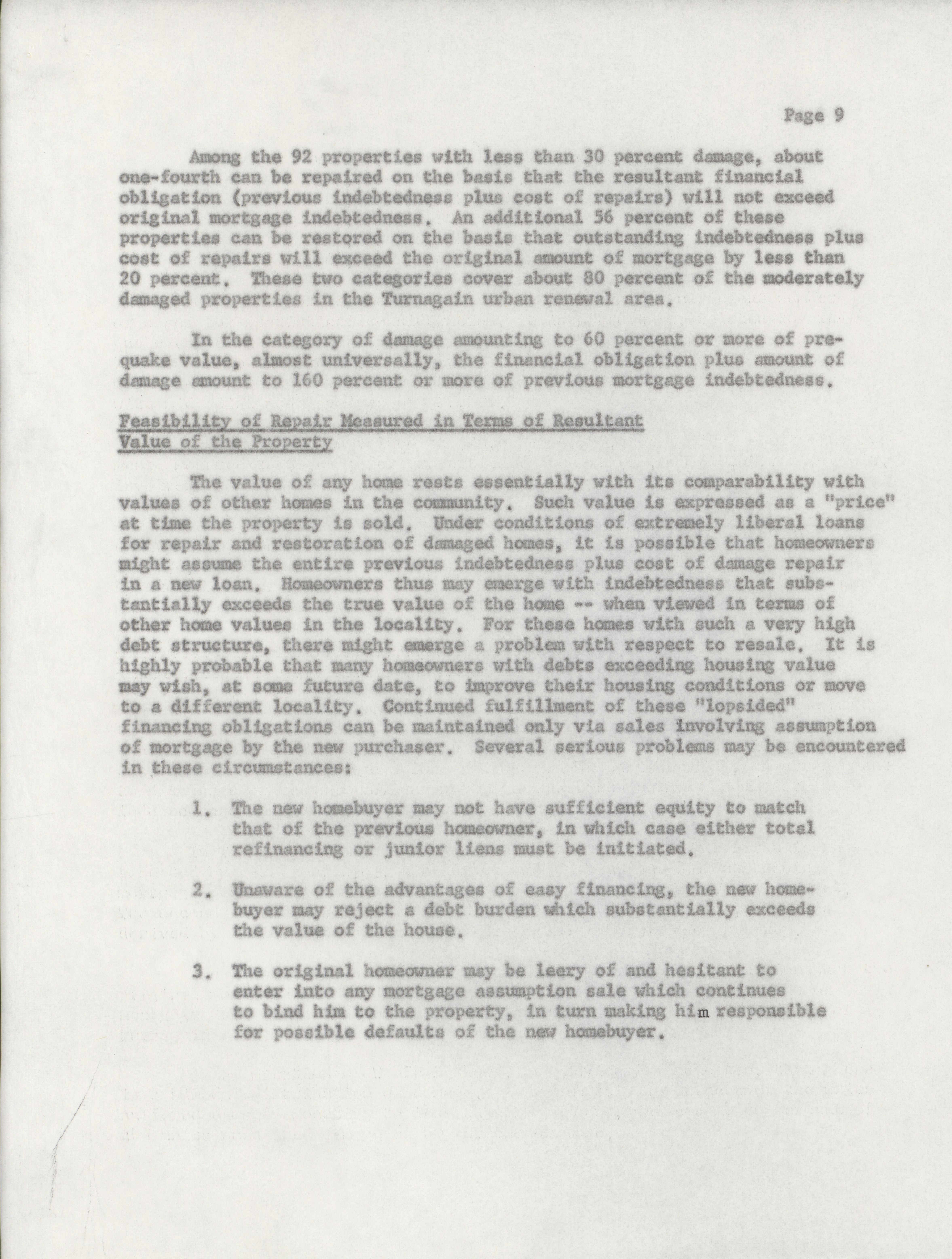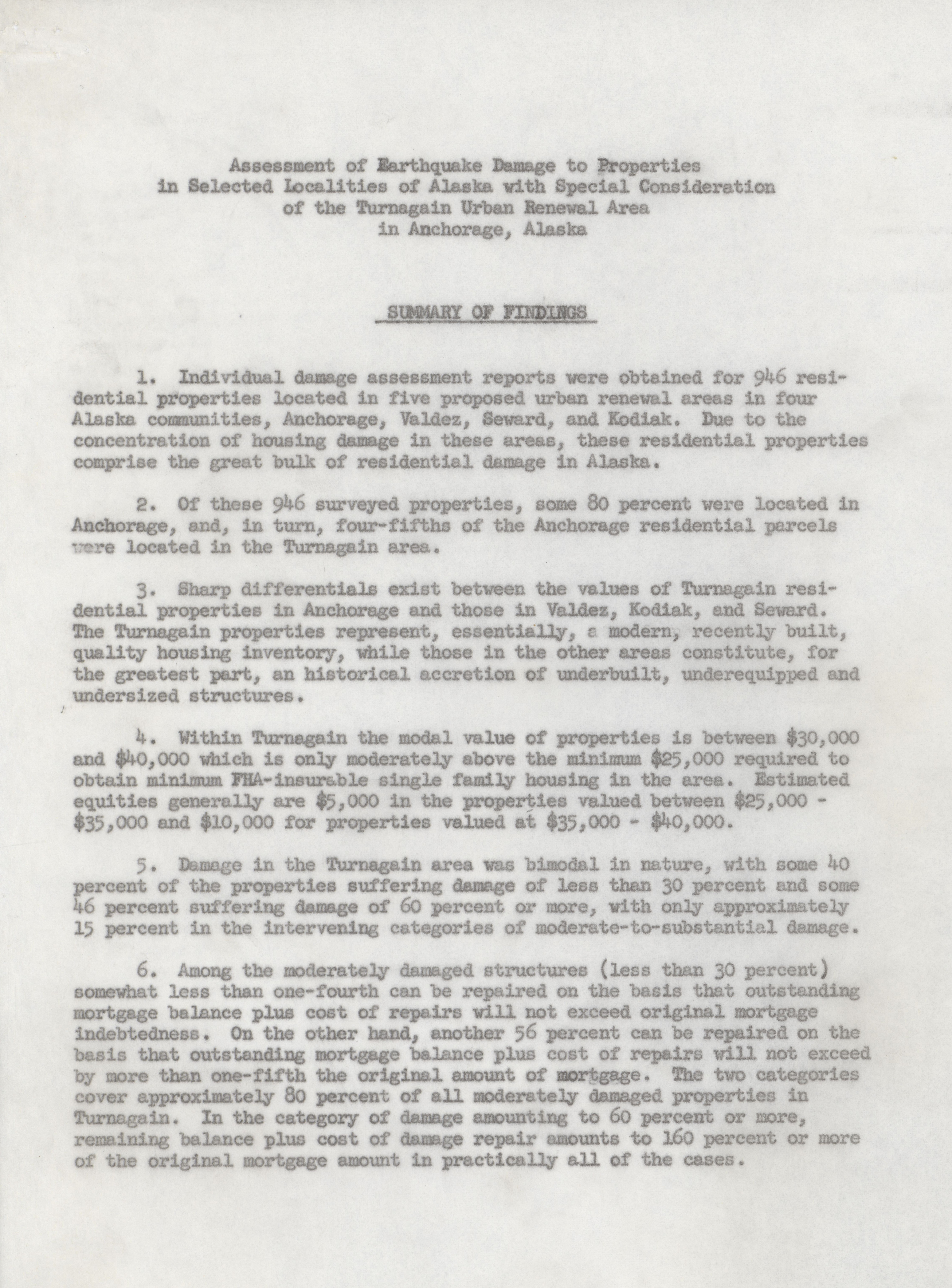 Assessment of earthquake damage to properties in selected localities of Alaska with special consideration of the Turnagain urban renewal area in Anchorage, Alaska Item Info