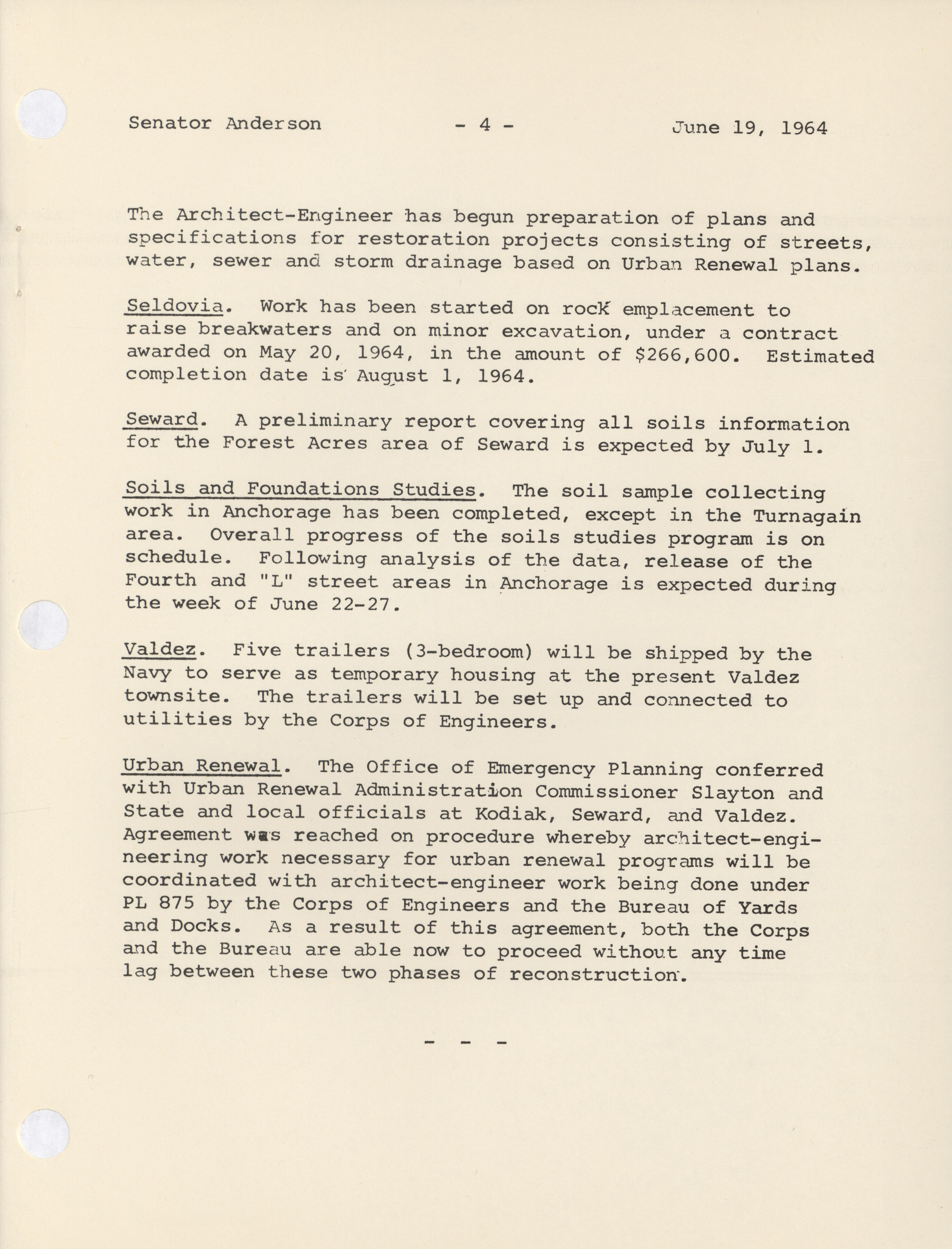 - Weekly reports, April 10, 1964 to July 31, 1964