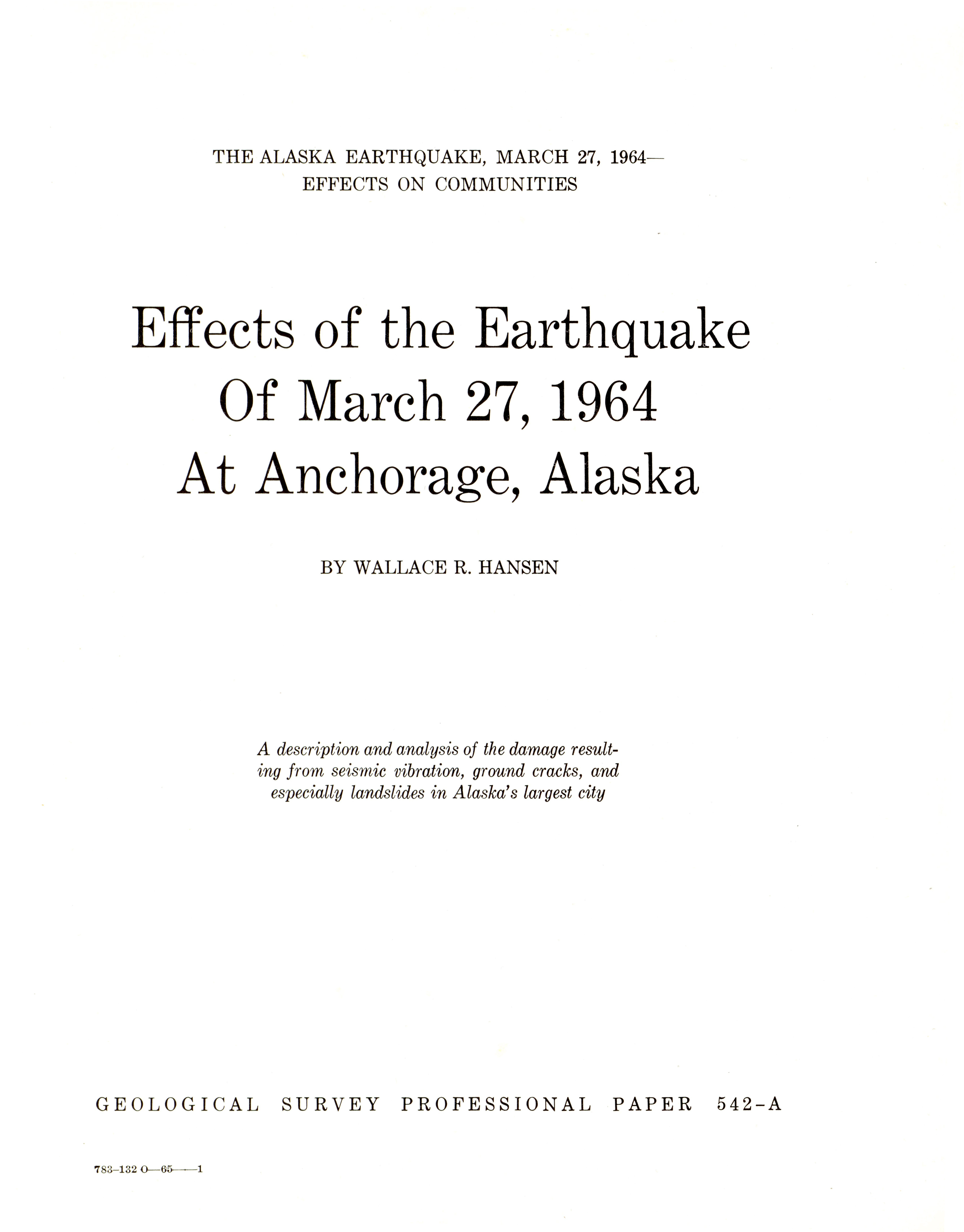 - The Alaska earthquake, March 27, 1964: effects on communities. Anchorage