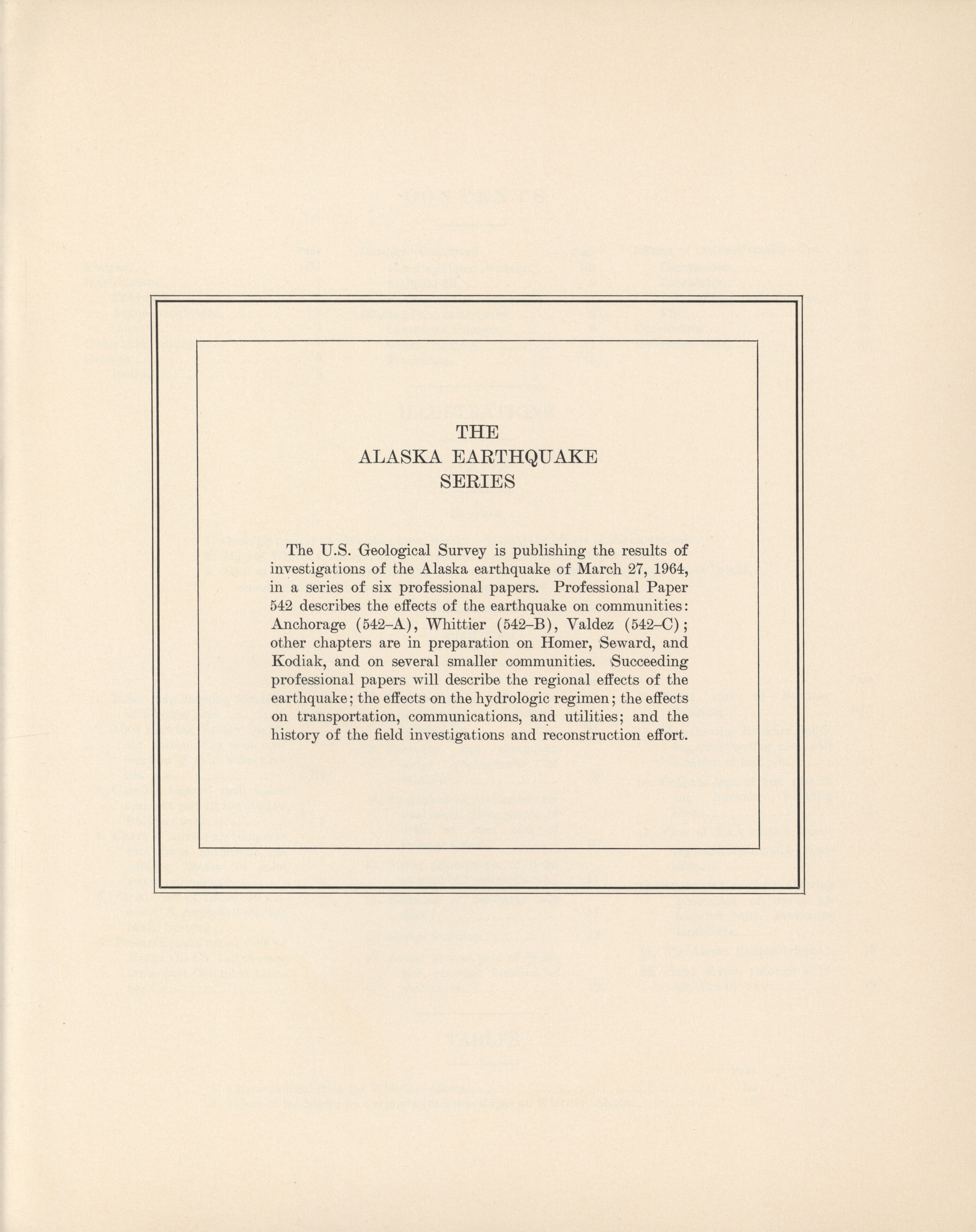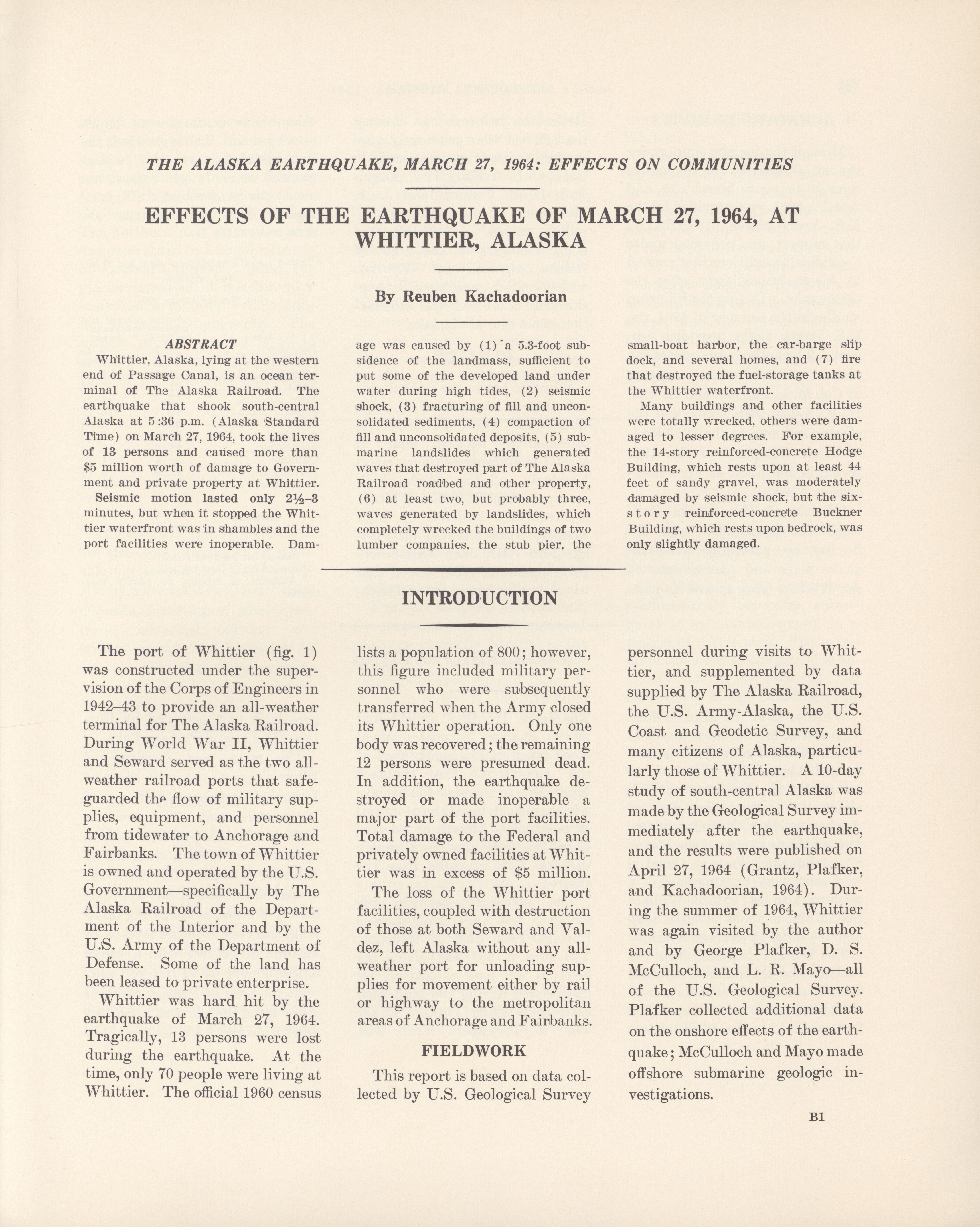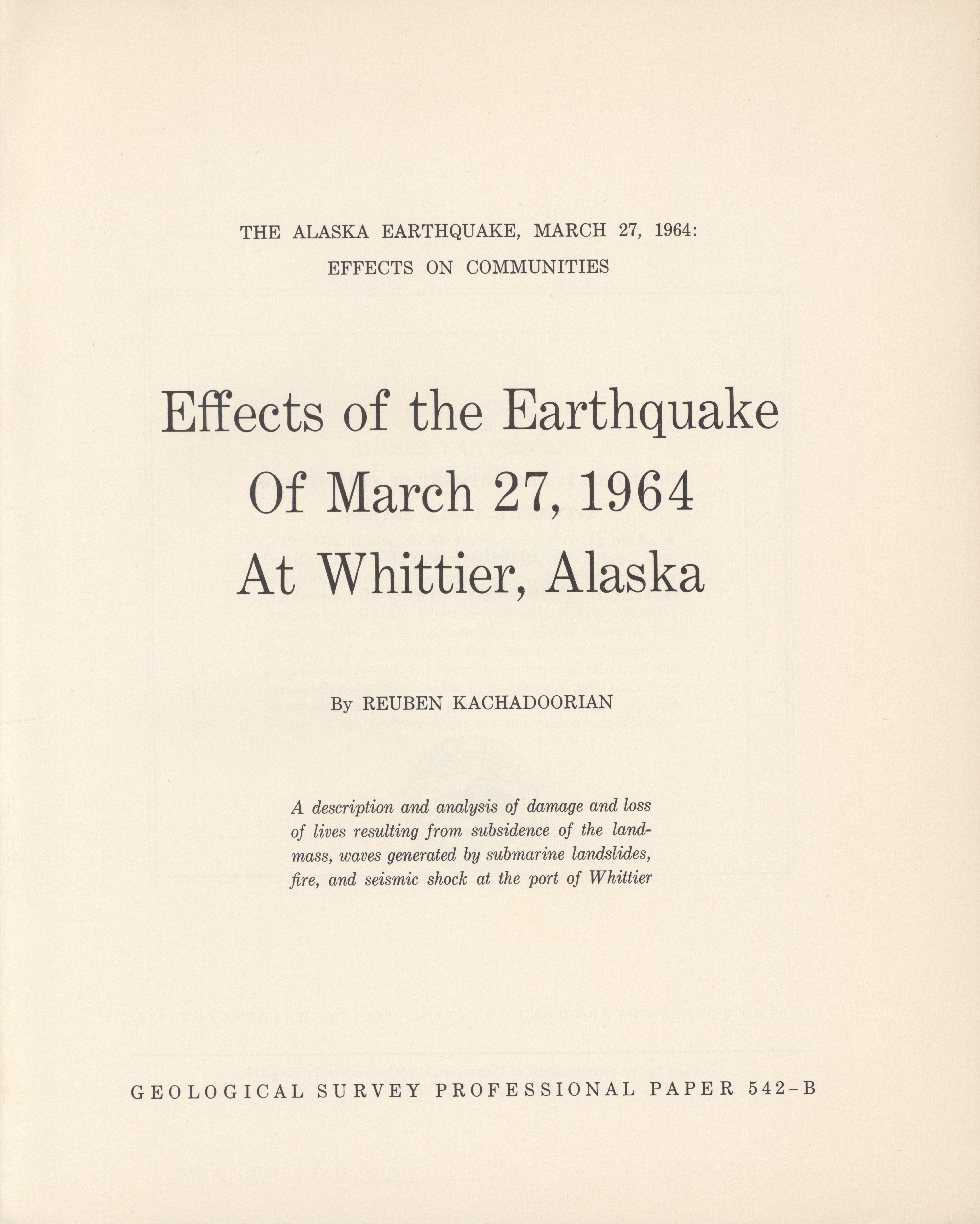 - Geological Survey professional paper 542B: Effects on communities, Whittier, 1965