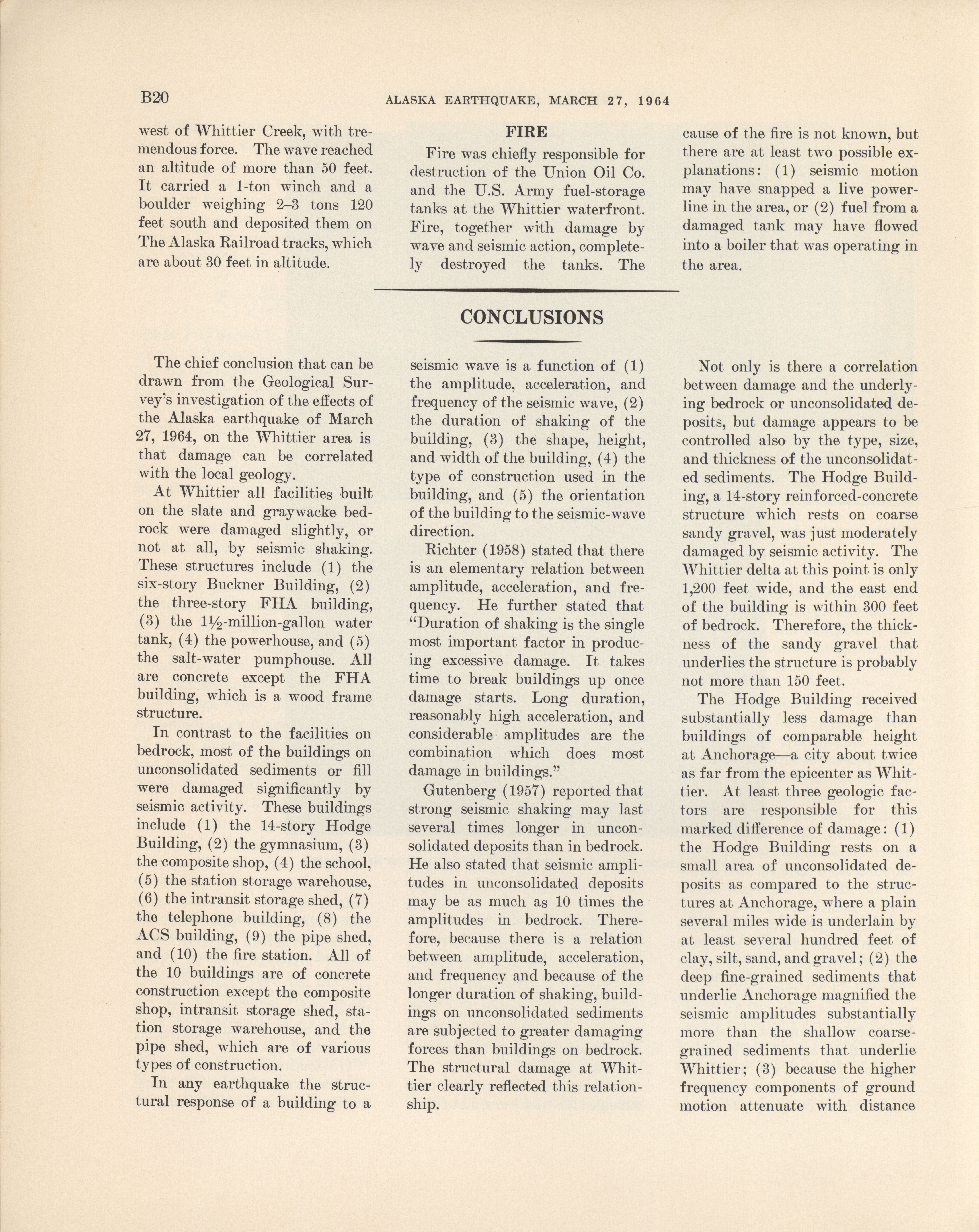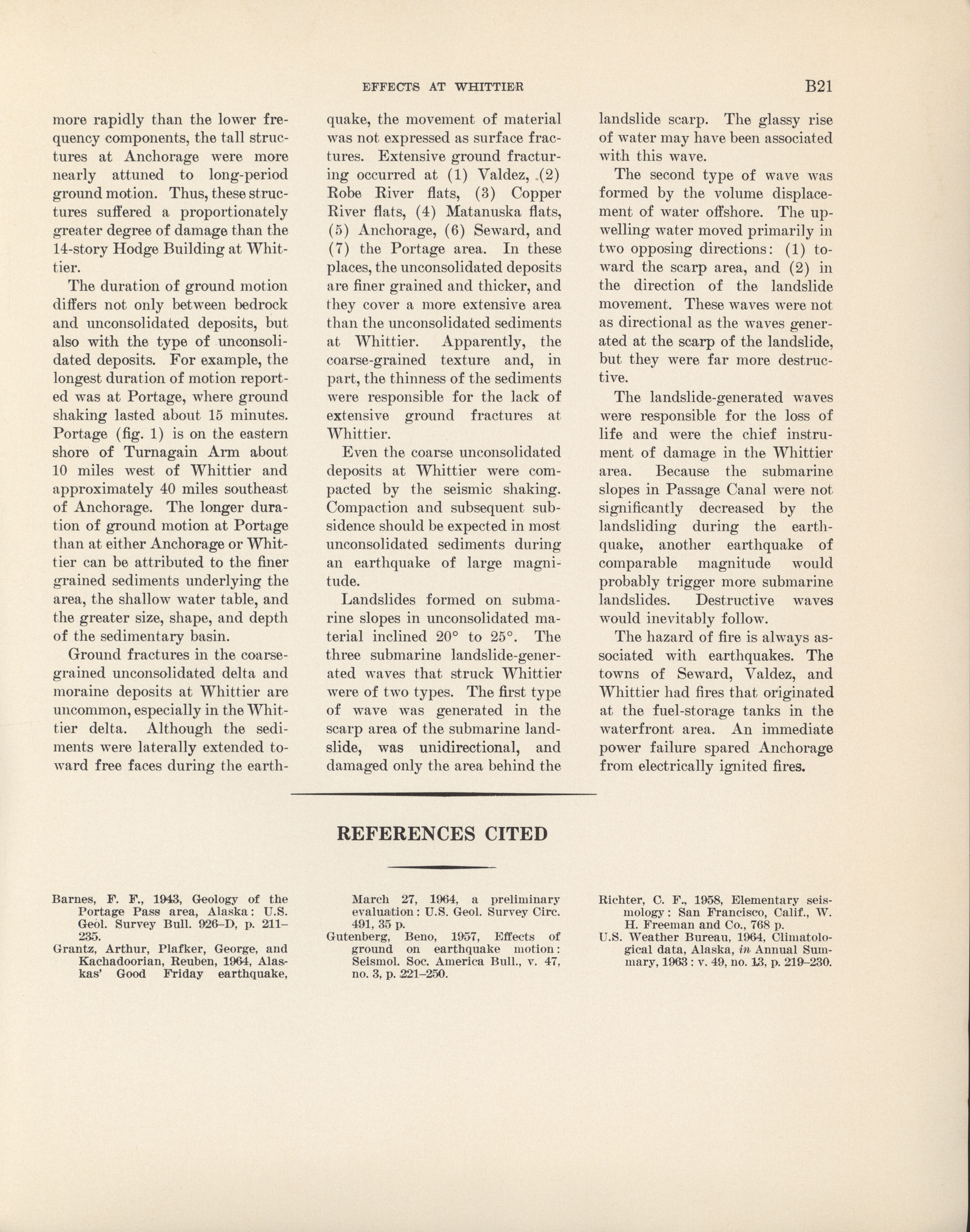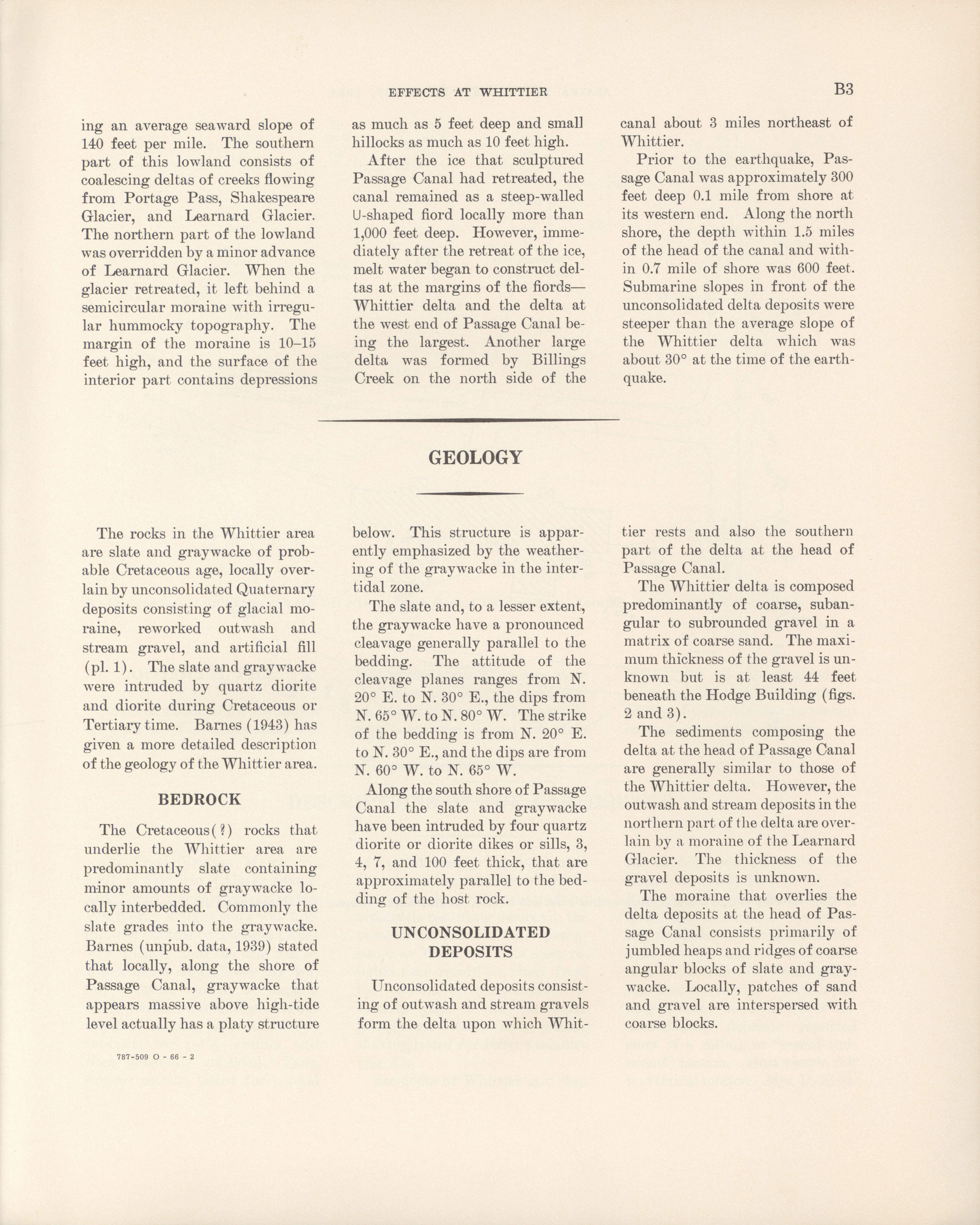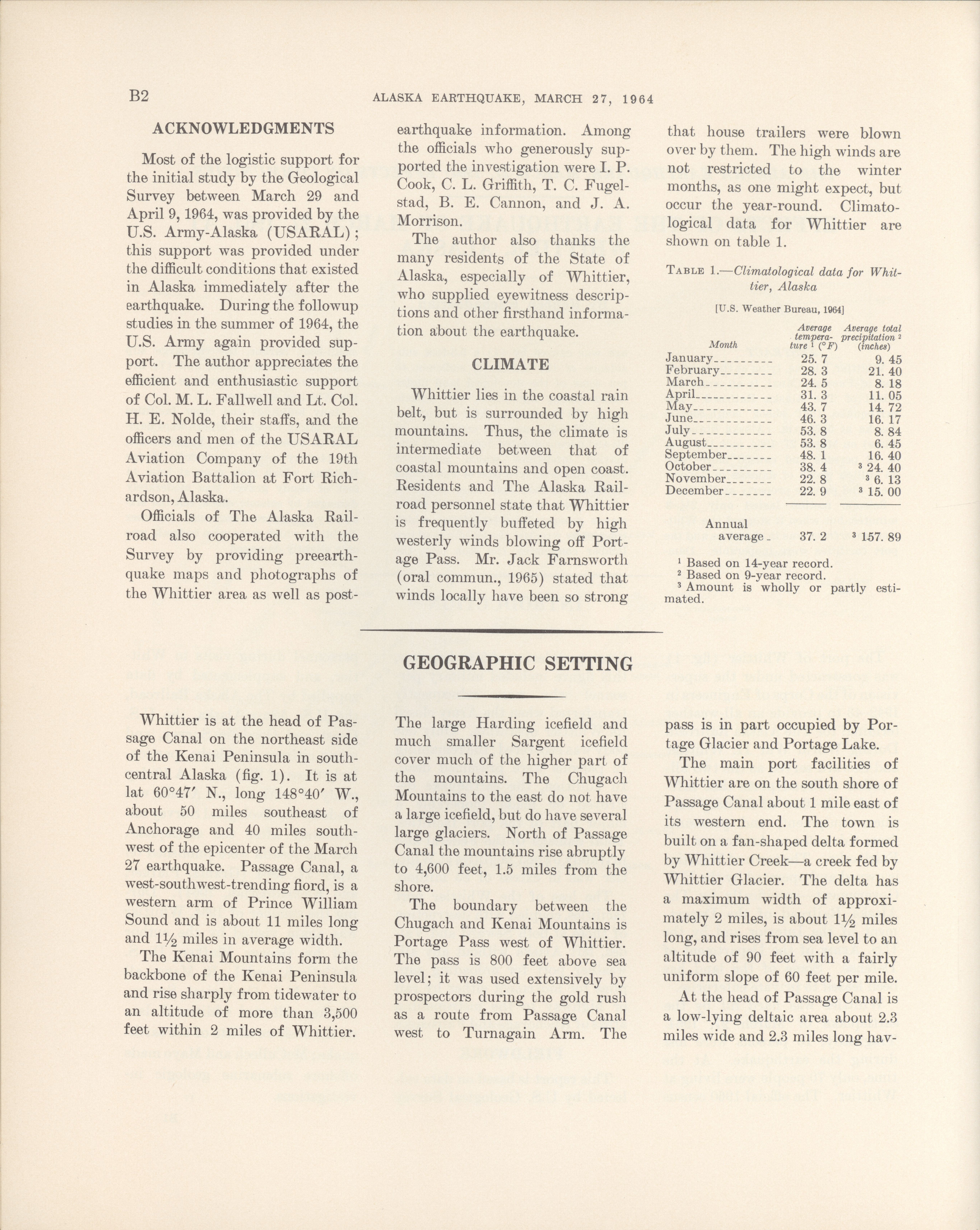 - Geological Survey professional paper 542B: Effects on communities, Whittier, 1965