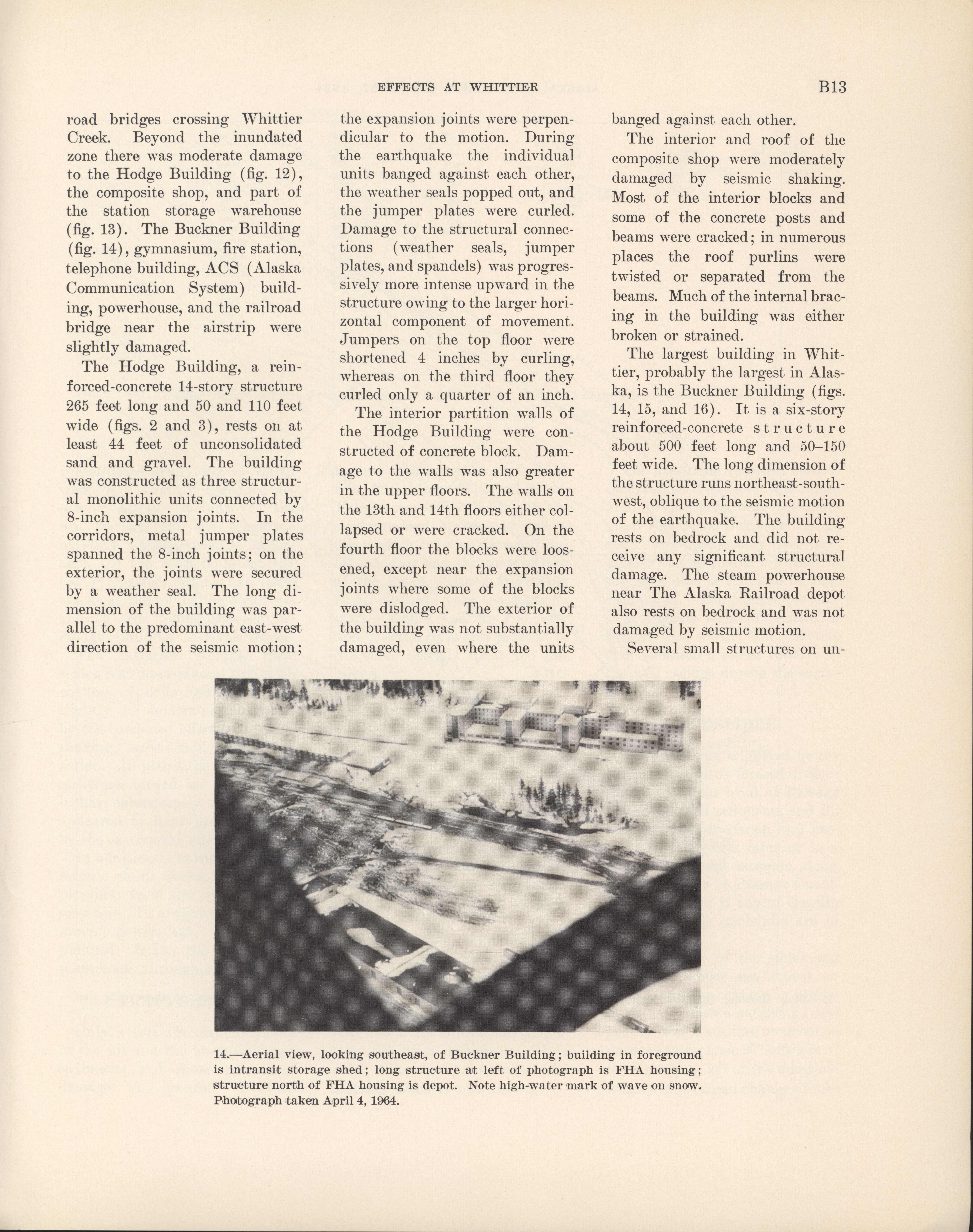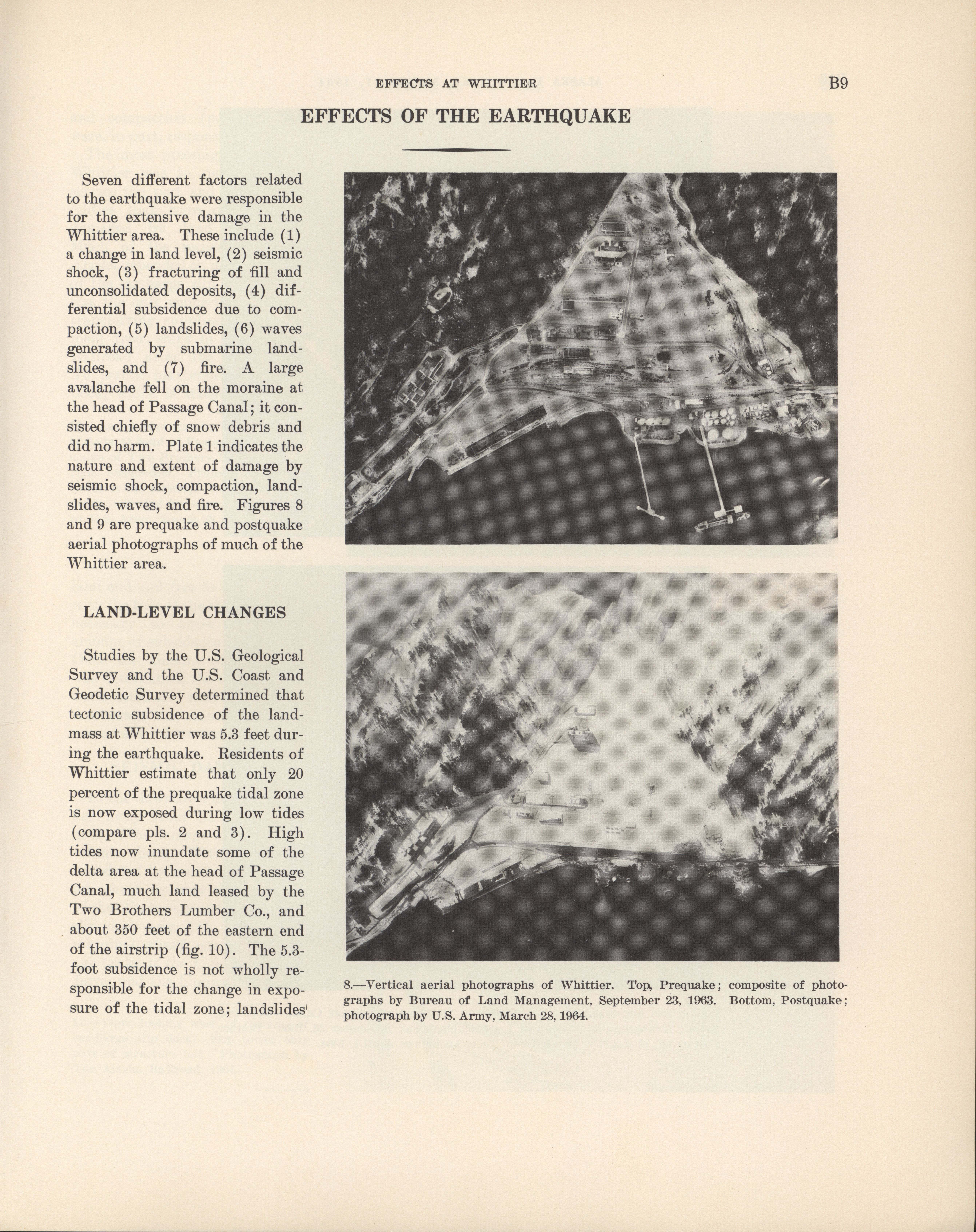 - "The Alaska earthquake, March 27, 1964: effects on communities. Whittier", Dwight Ink Collection, Iowa State University Library Digital Collections