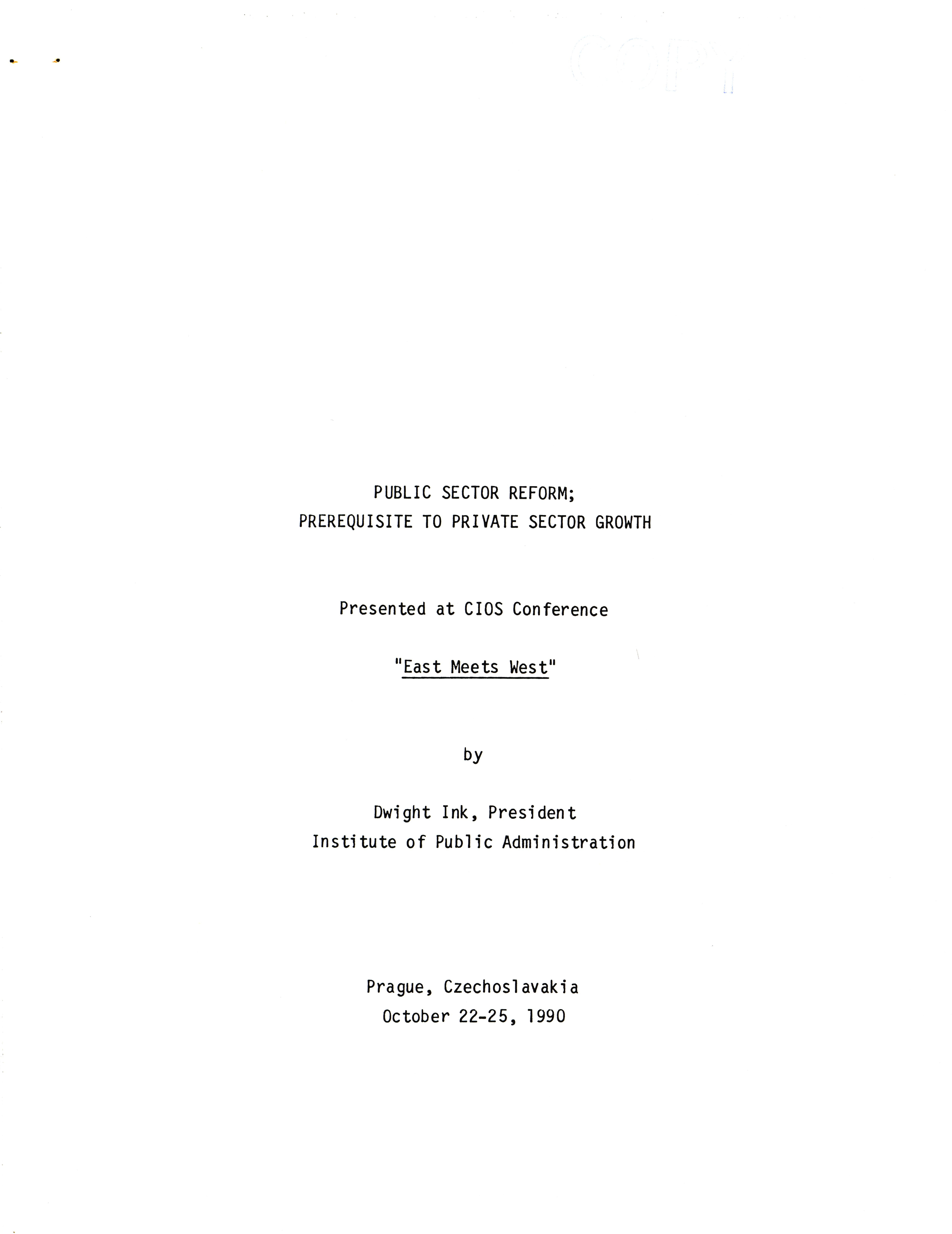 - "Public sector reform: prerequisite to private sector growth, October 22-25, 1990", Dwight Ink Collection, Iowa State University Library Digital Collections
