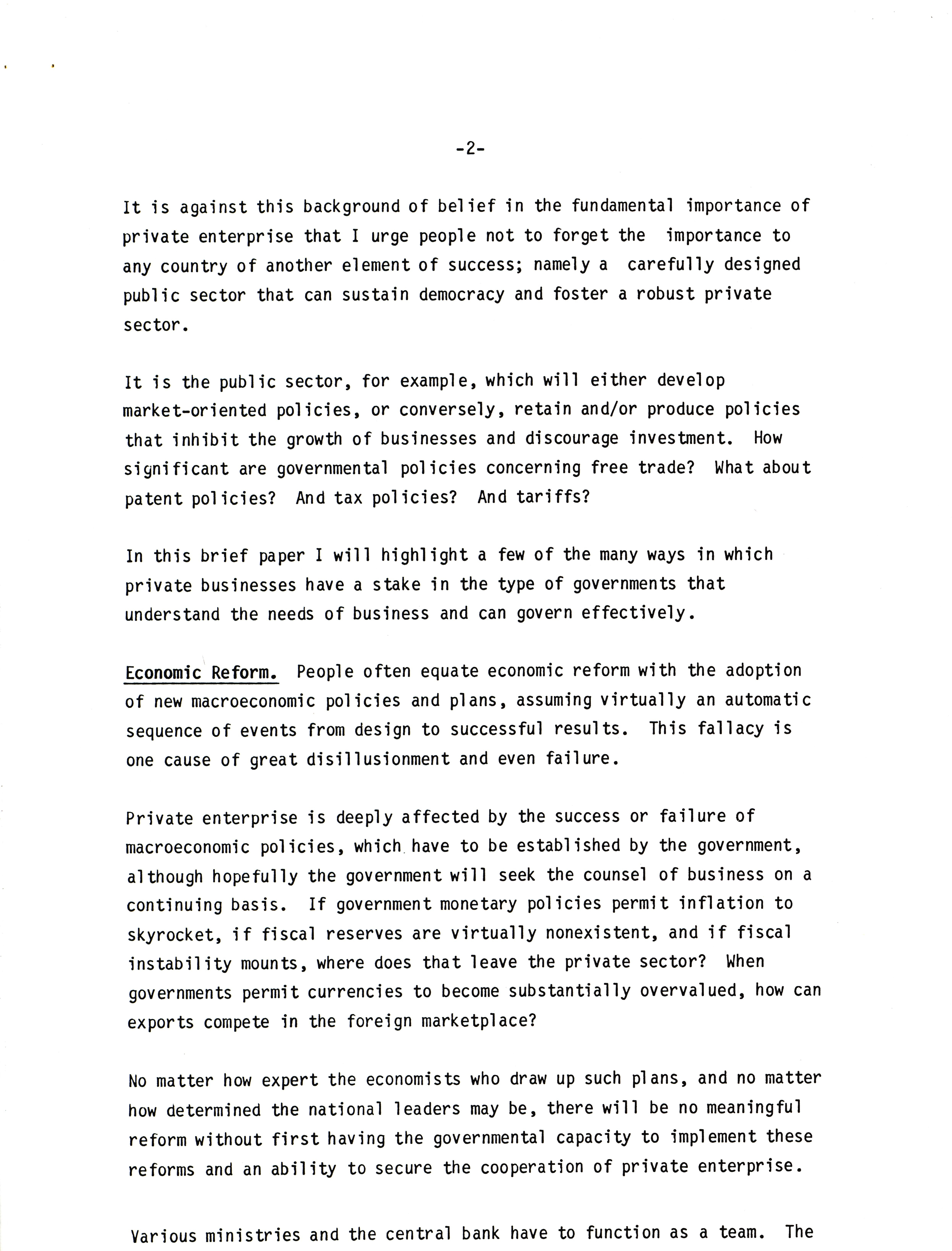- Public sector reform: prerequisite to private sector growth, October 22-25, 1990