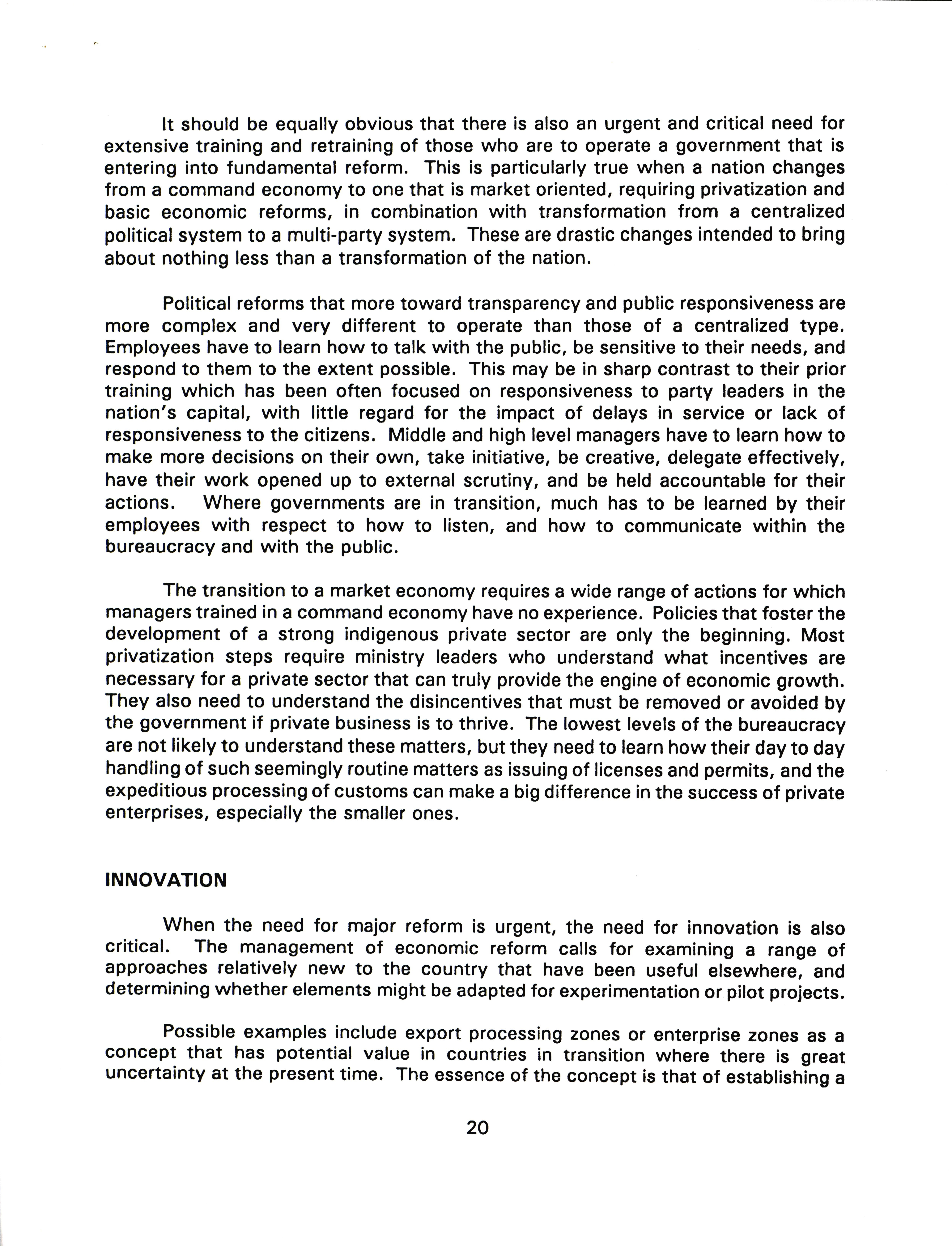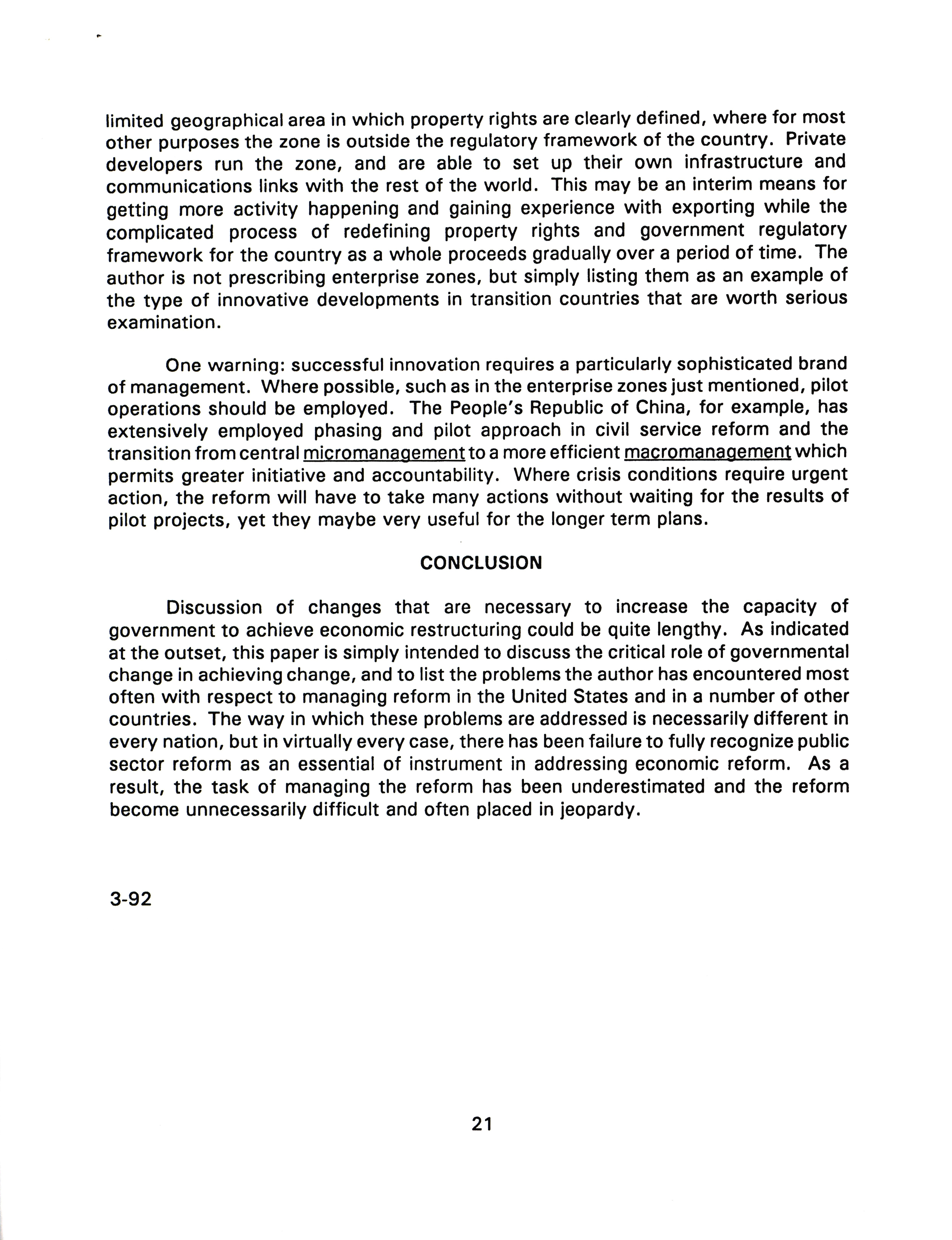 - Public sector reform: prerequisite to economic transformation, September 19, 1991