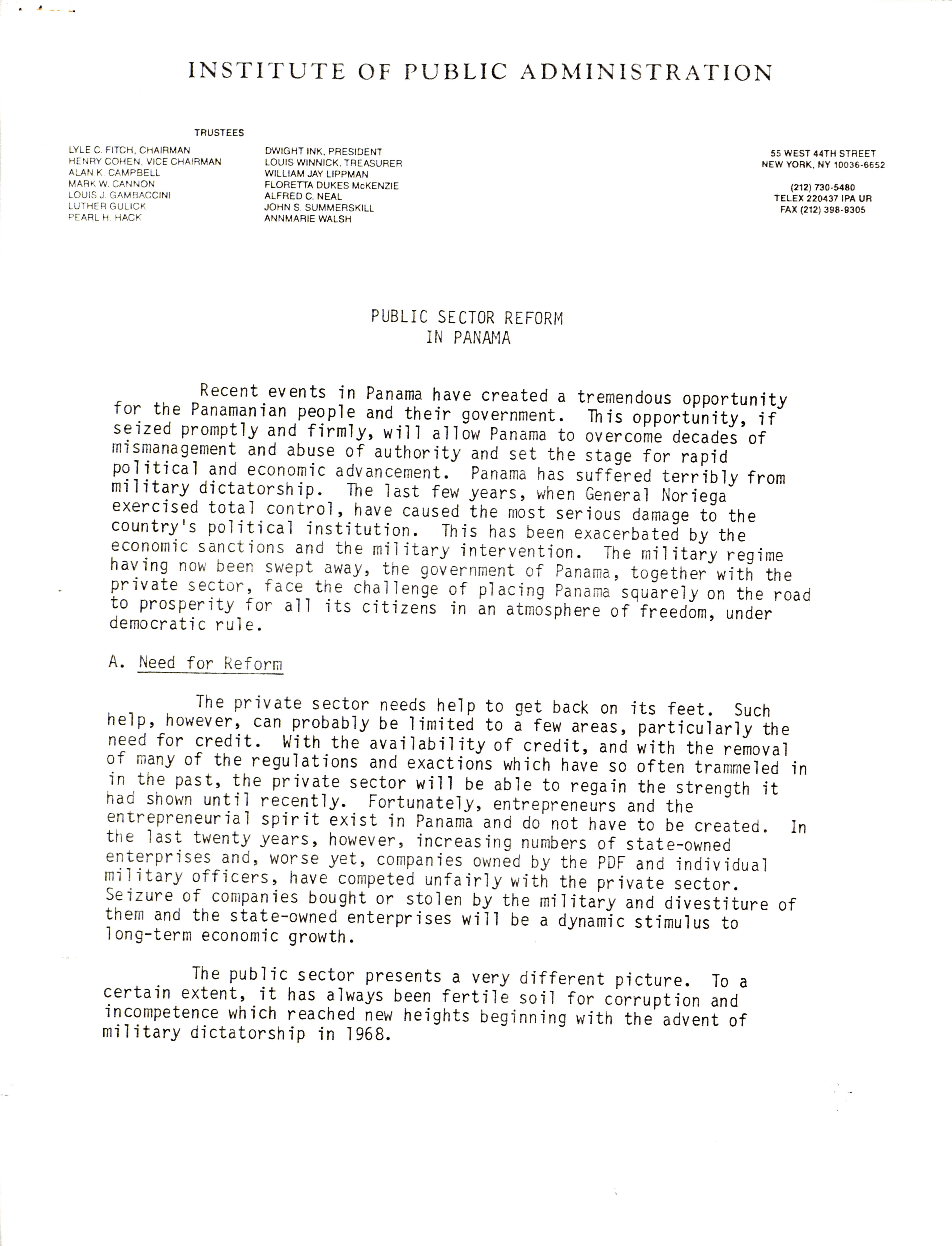 - "Public sector reform in Panama", Dwight Ink Collection, Iowa State University Library Digital Collections
