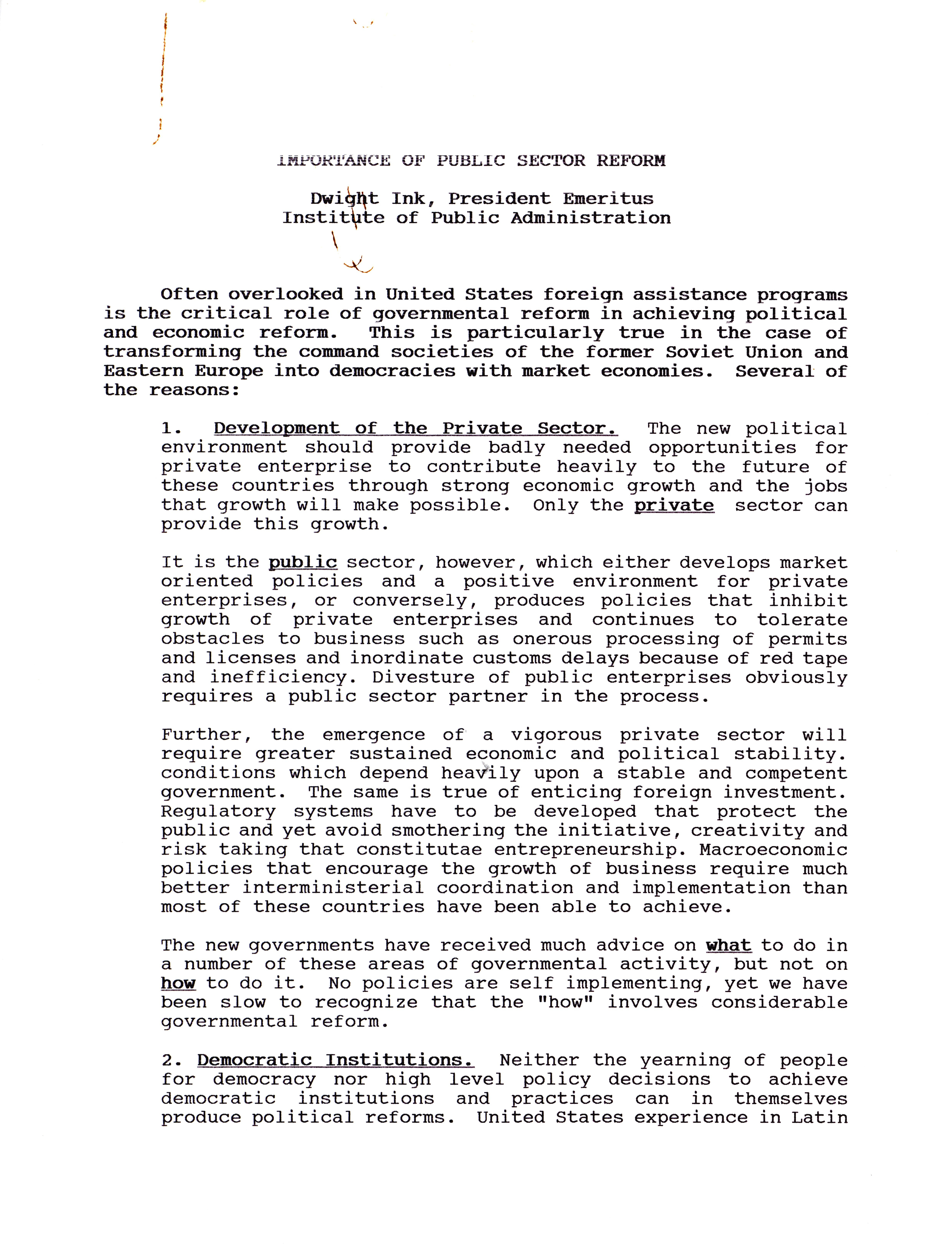 - "Importance of public sector reform", Dwight Ink Collection, Iowa State University Library Digital Collections