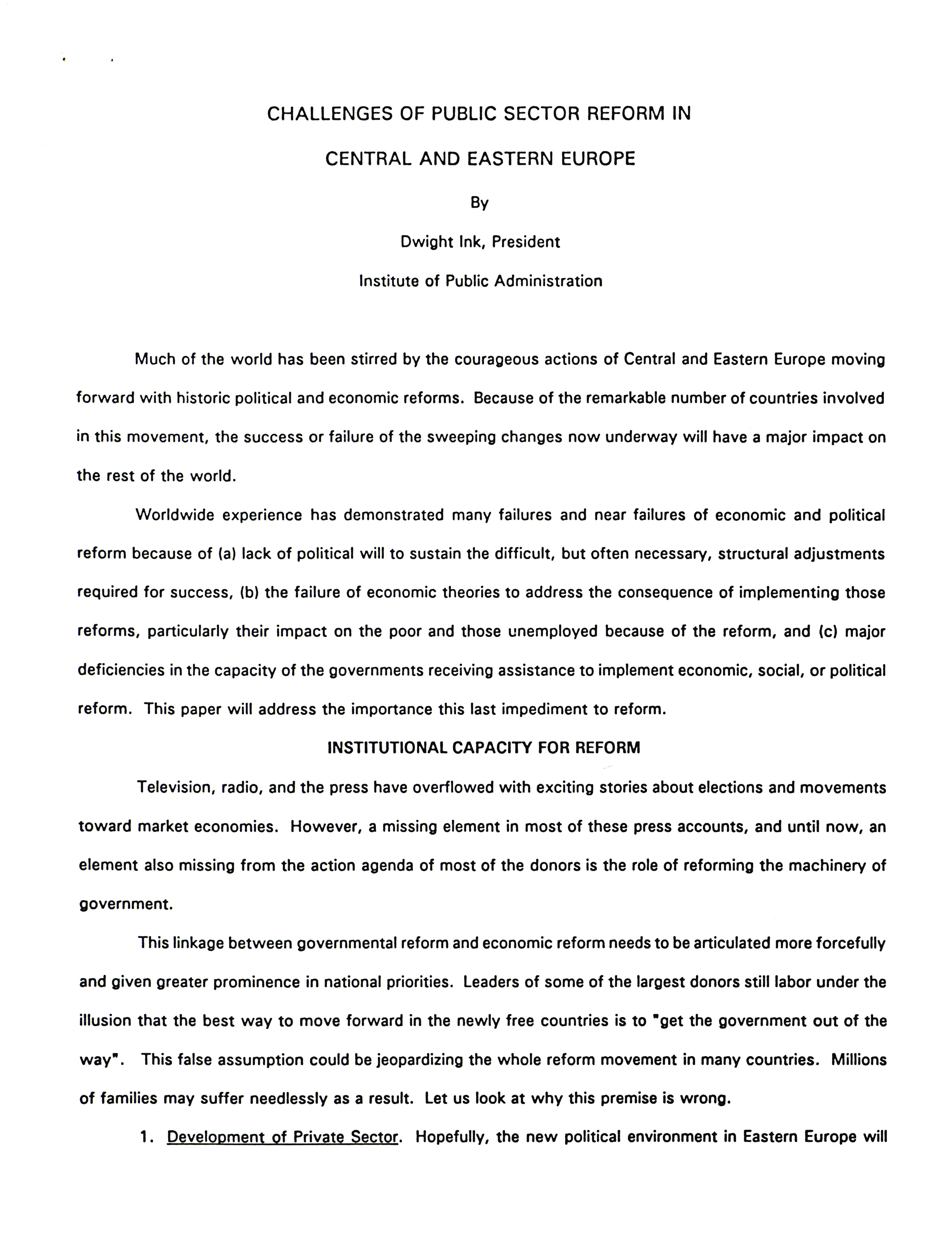 - "Challenges of public sector reform in Central and Eastern Europe", Dwight Ink Collection, Iowa State University Library Digital Collections