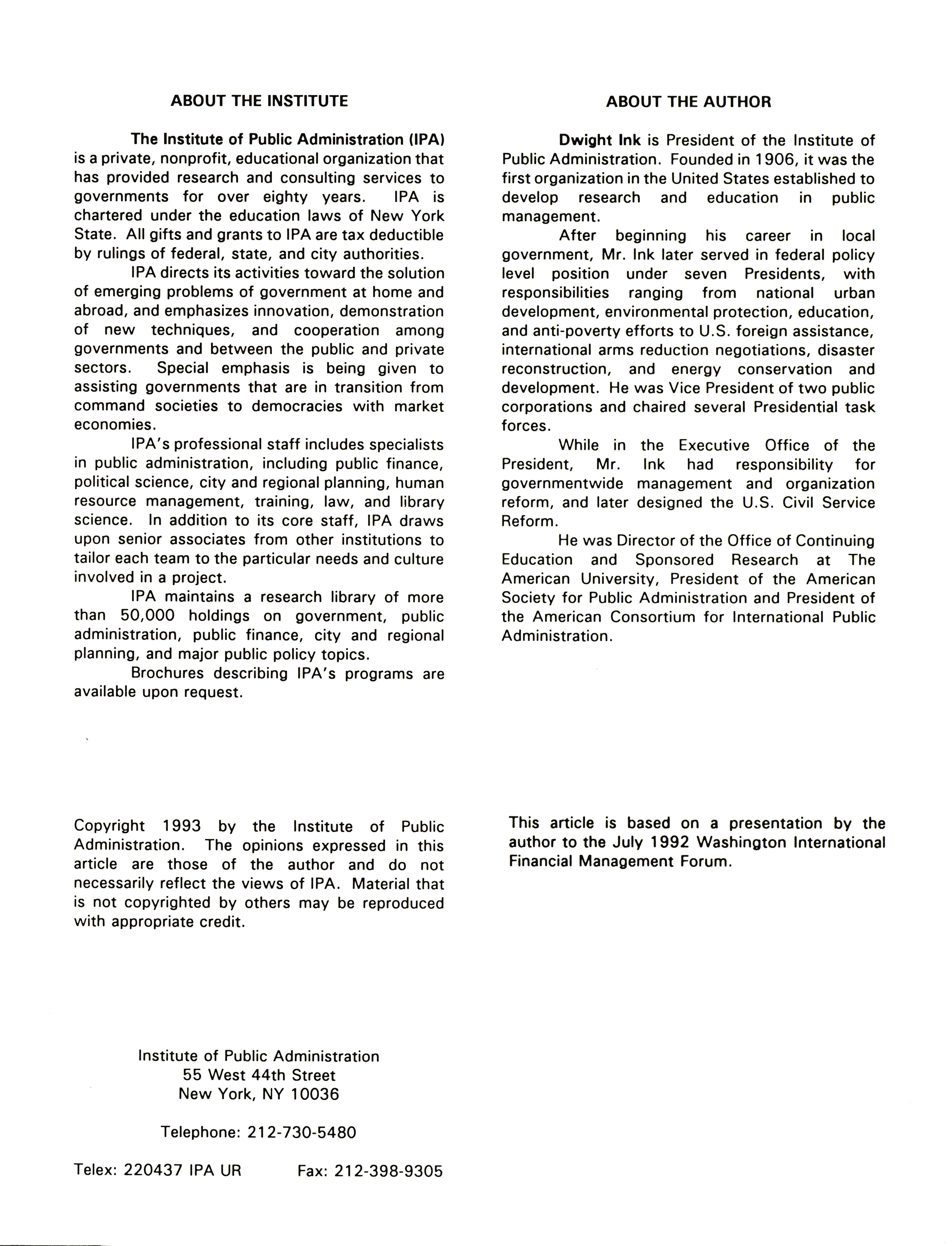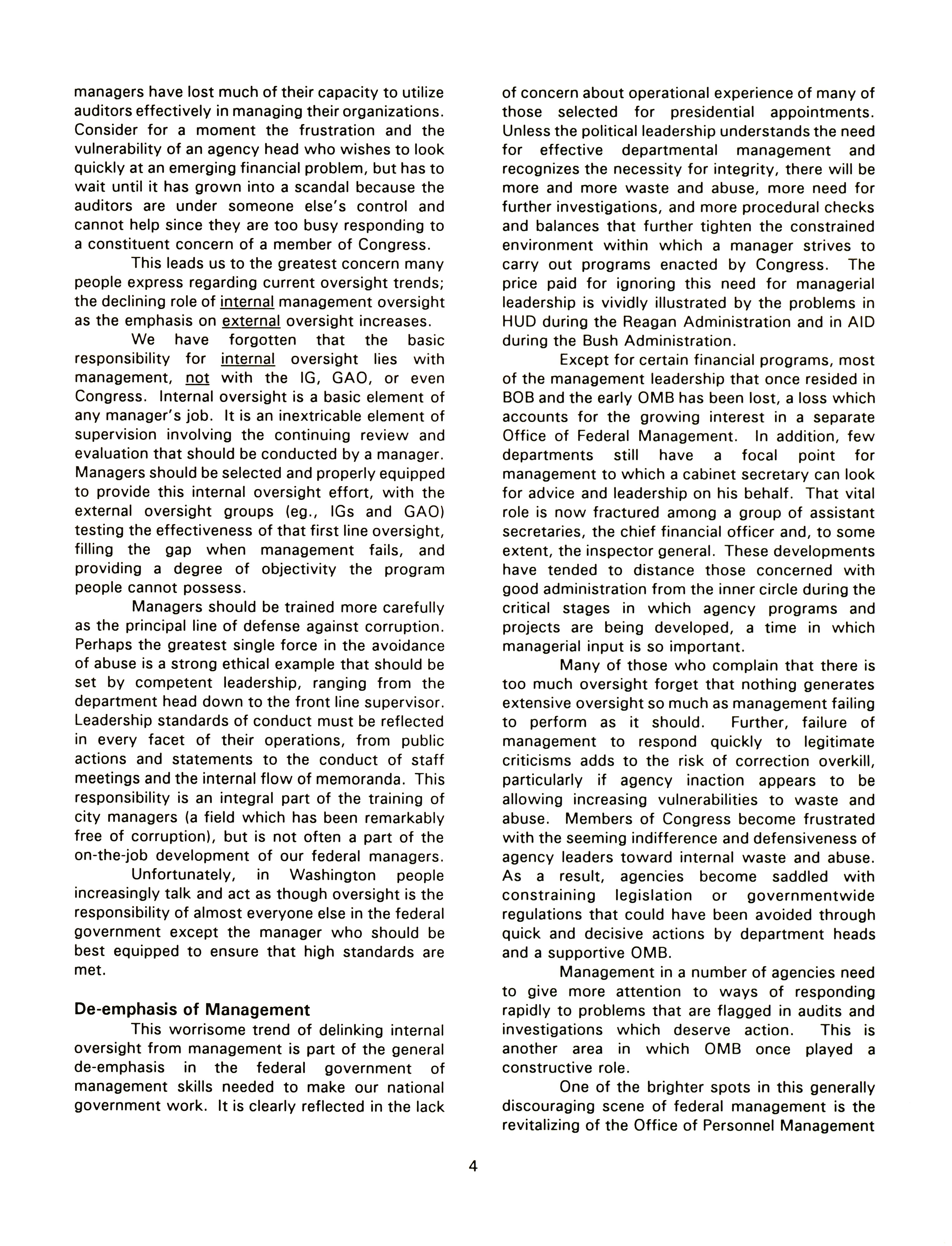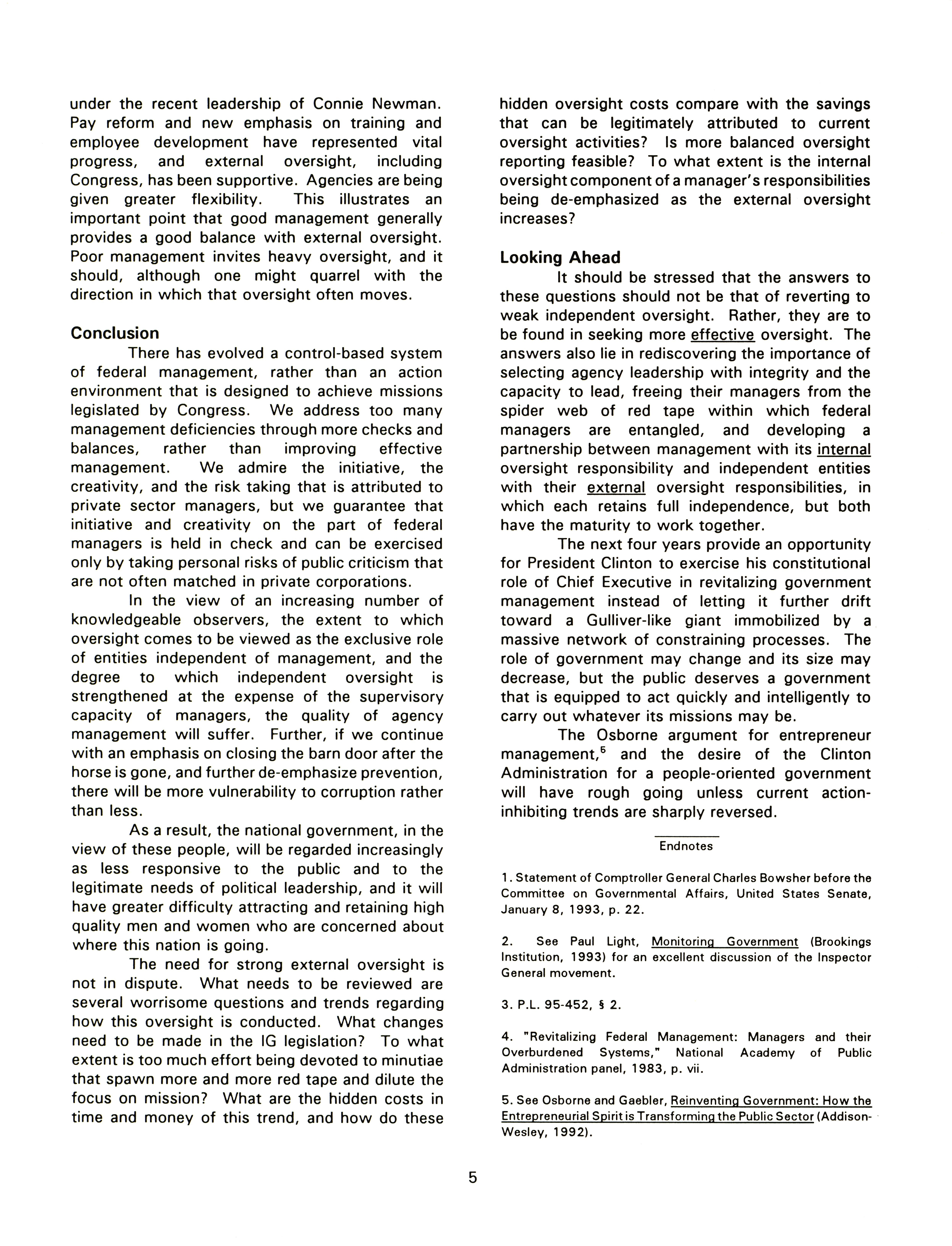 - "Are federal oversight and agency management out of sync?" Institute of Public Administration, 1993