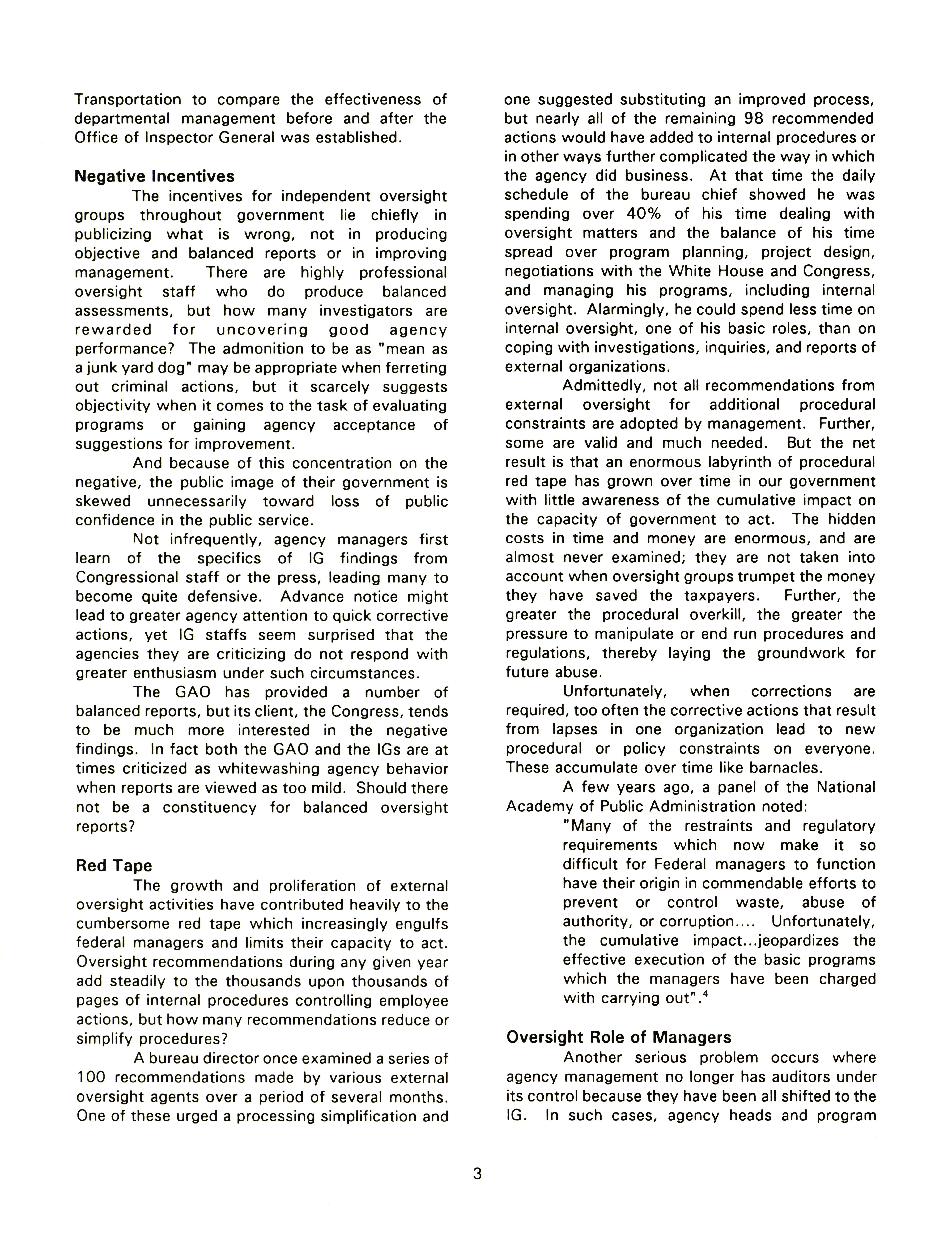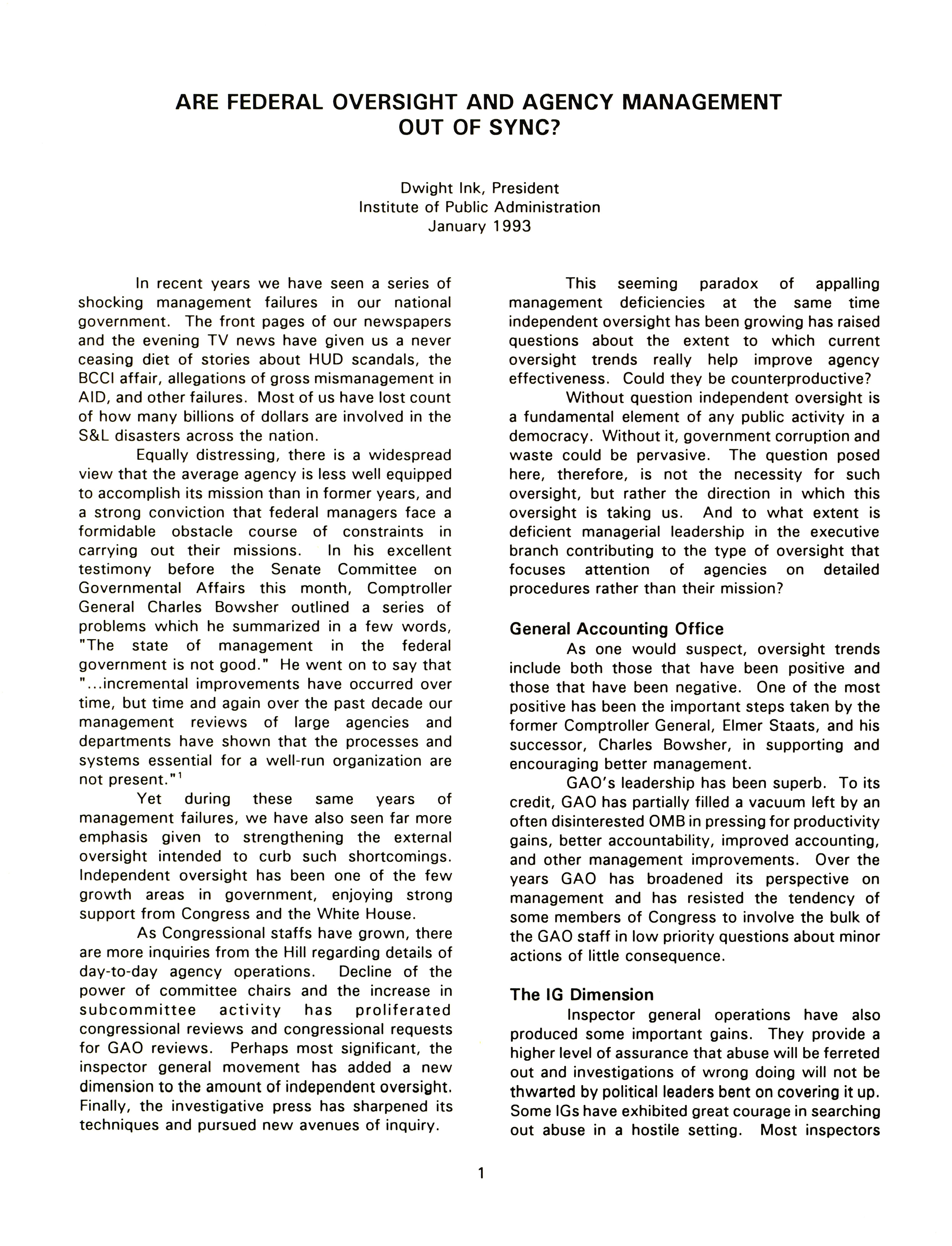 - "Are federal oversight and agency management out of sync?, January 1993", Dwight Ink Collection, Iowa State University Library Digital Collections