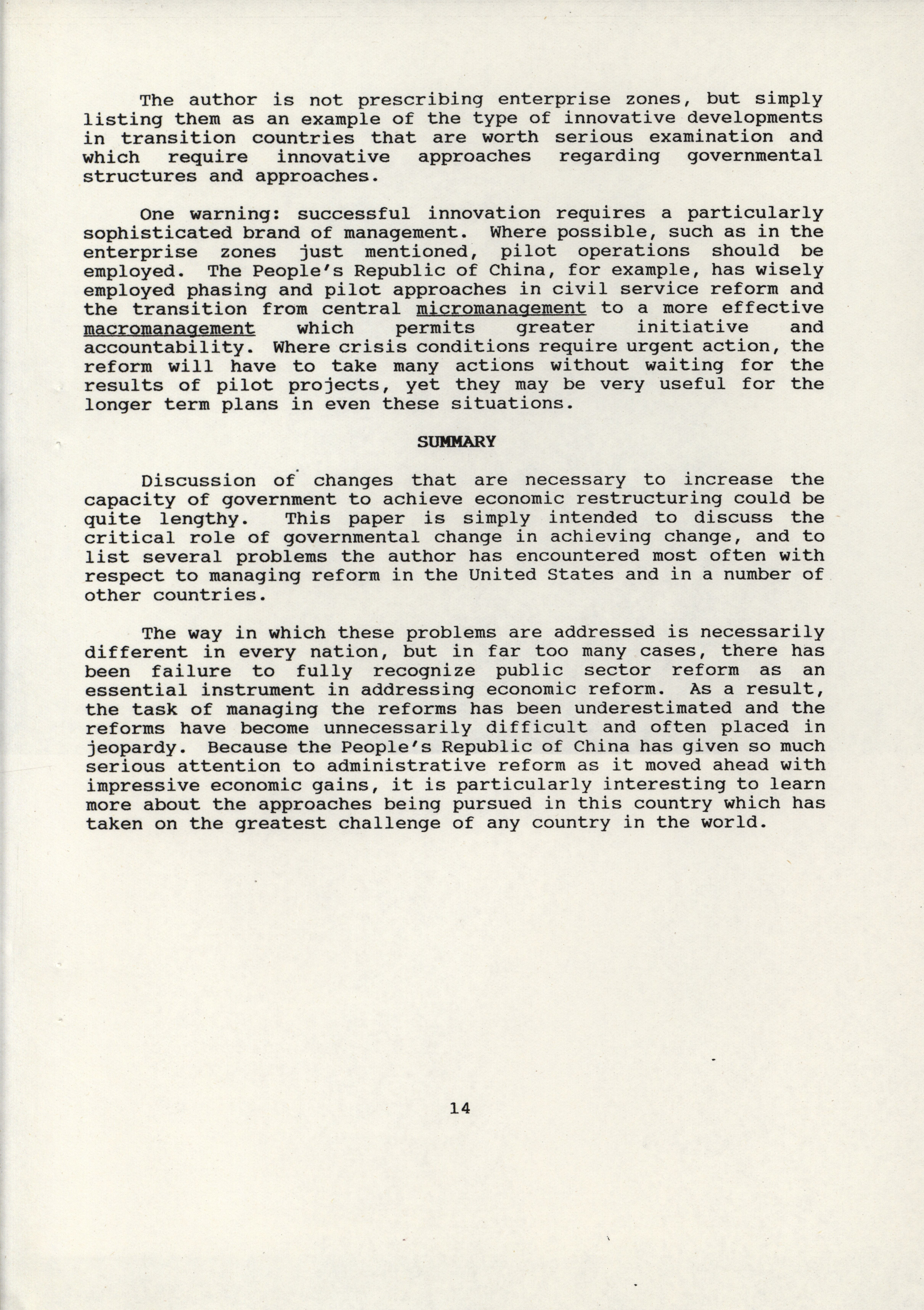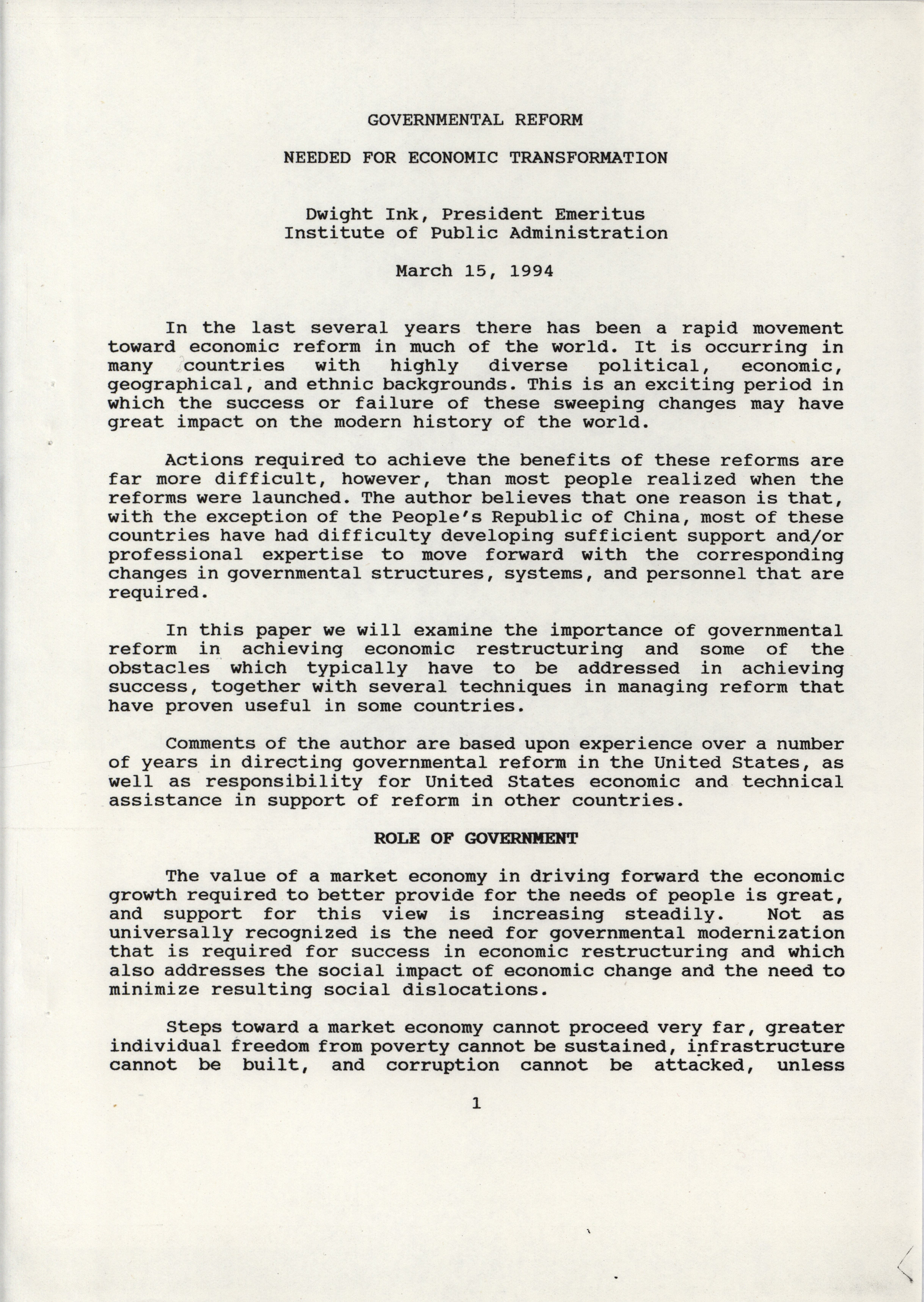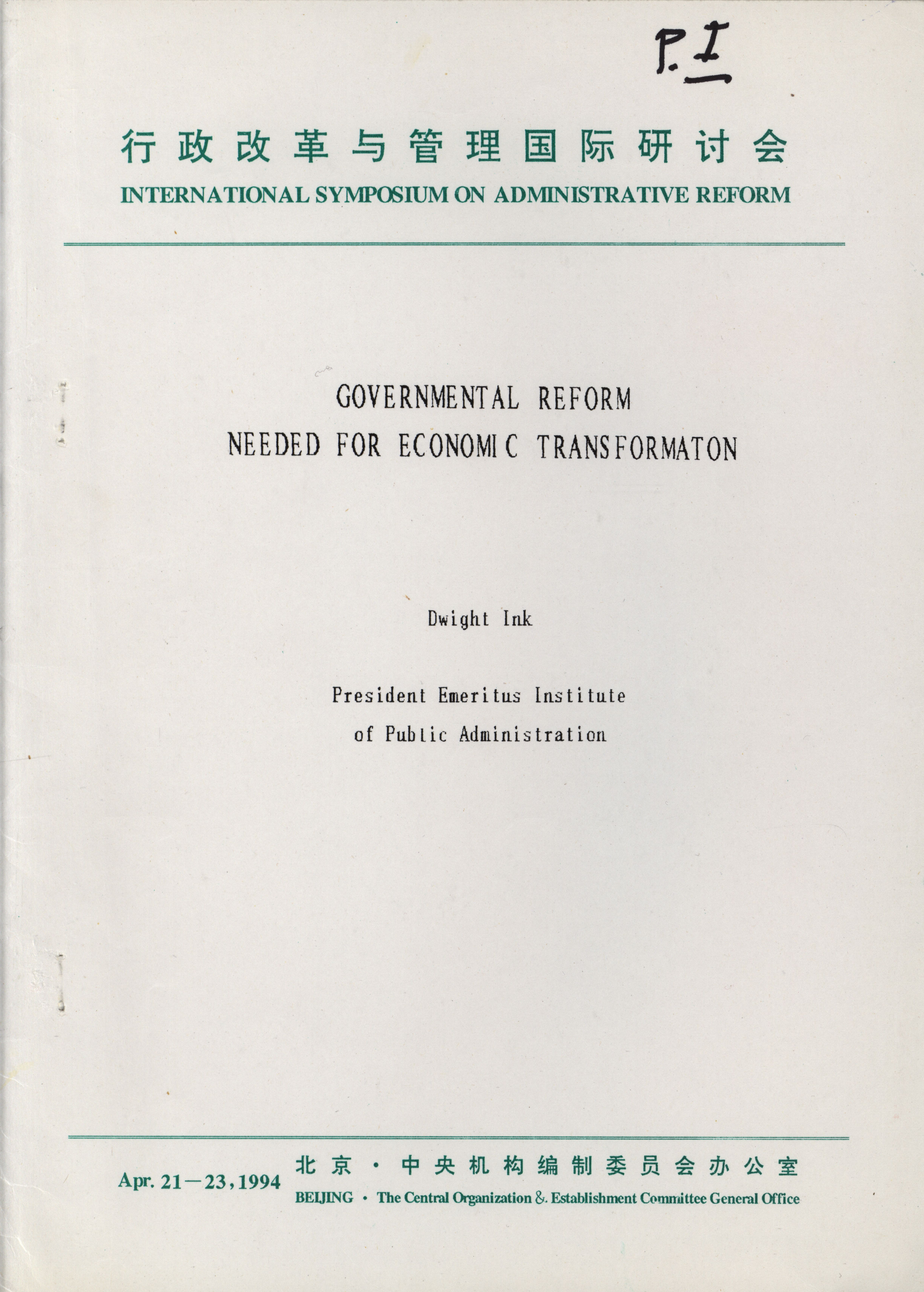 - "Governmental reform needed for economic transformation, April 21-23, 1994", Dwight Ink Collection, Iowa State University Library Digital Collections