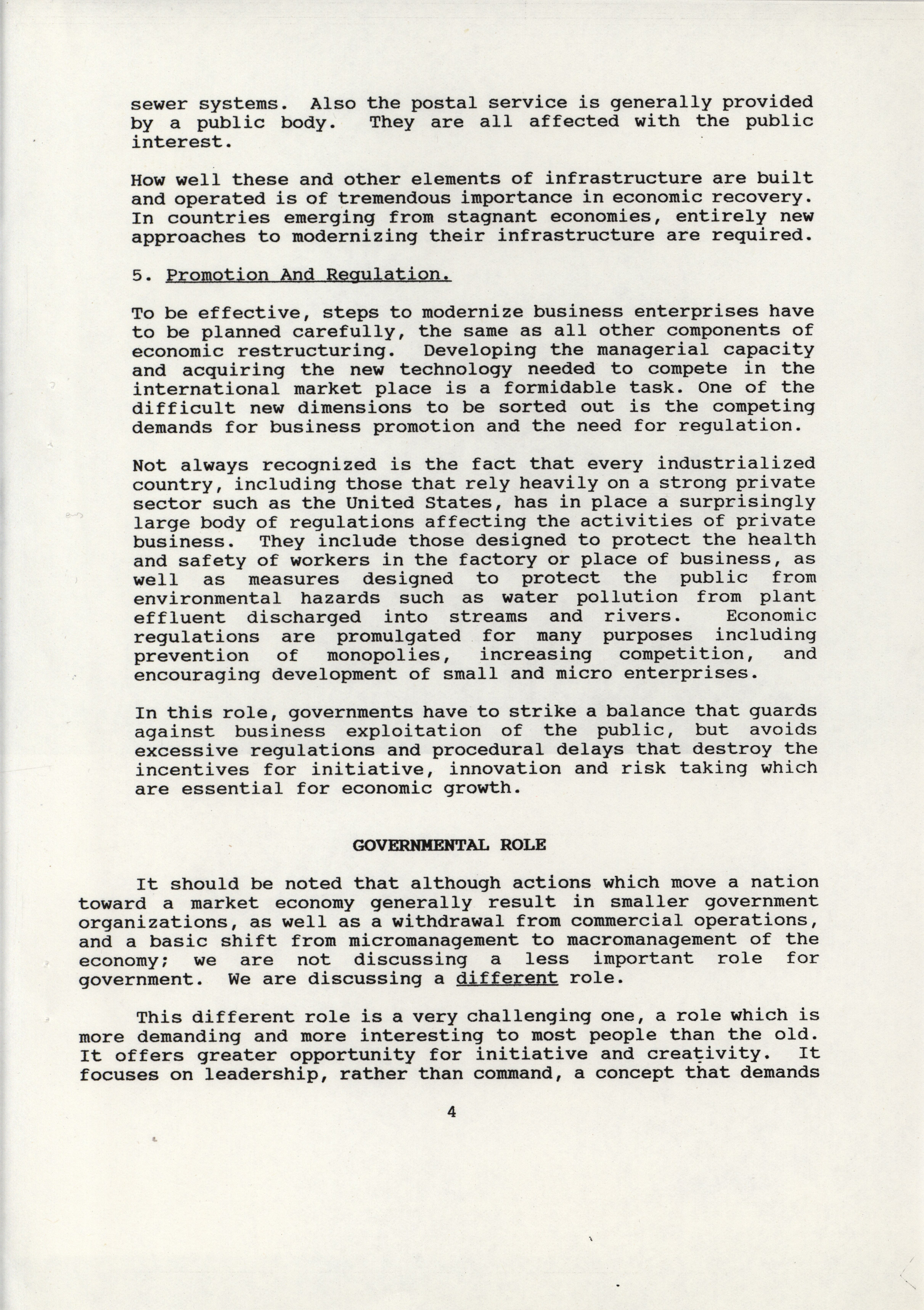 - Governmental reform needed for economic transformation, April 21-23, 1994