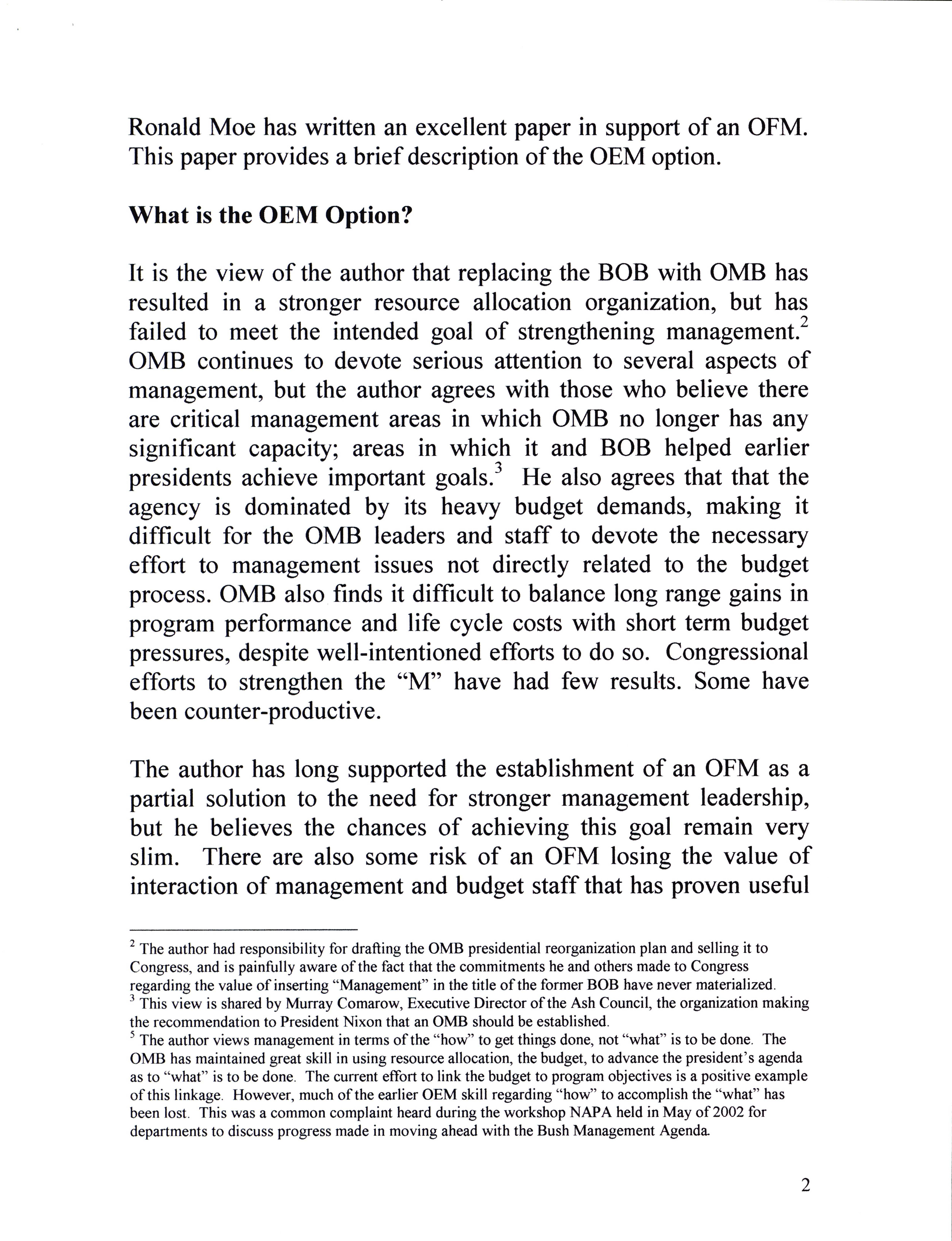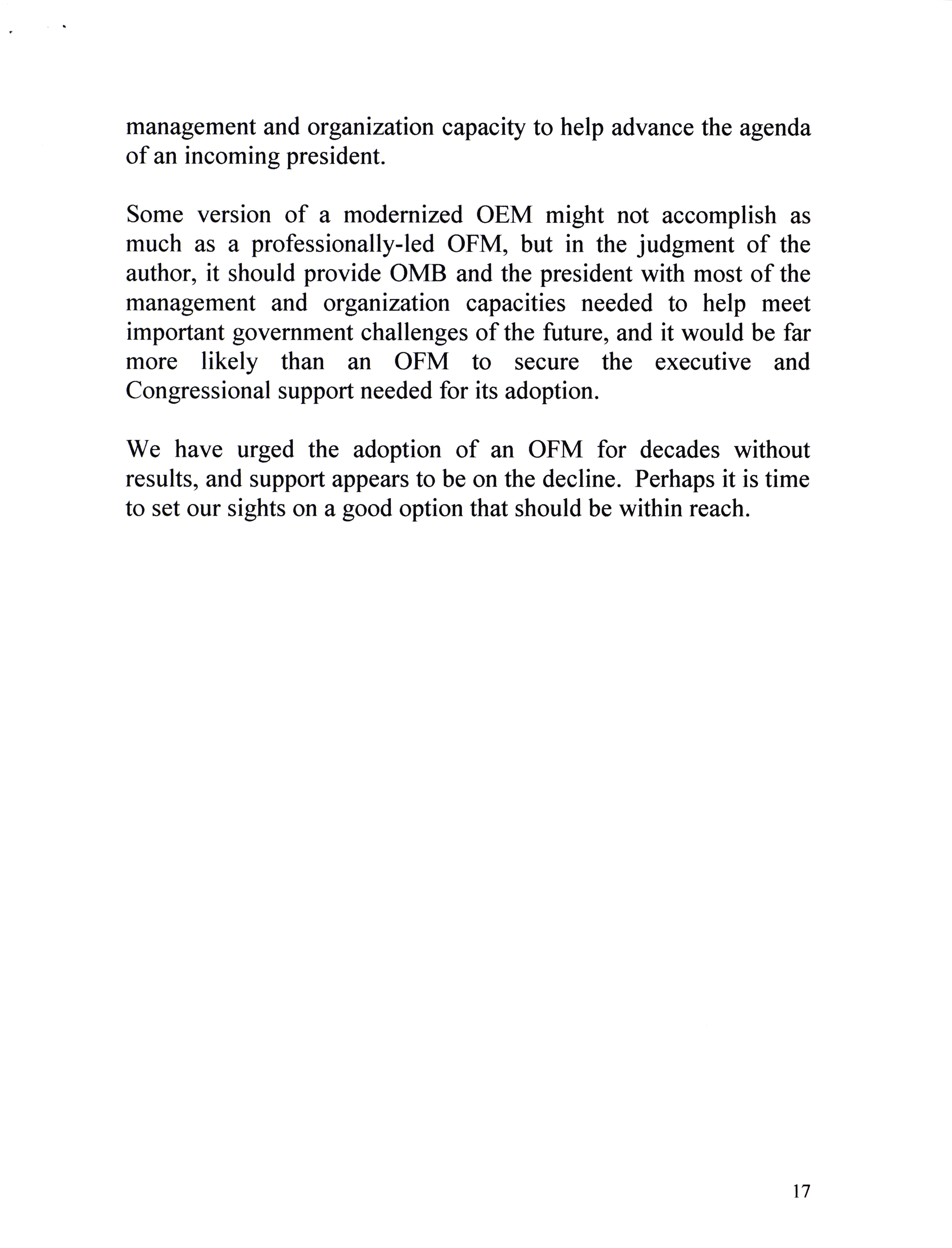- A modernized office of executive management: an option for making the M in OMB a reality