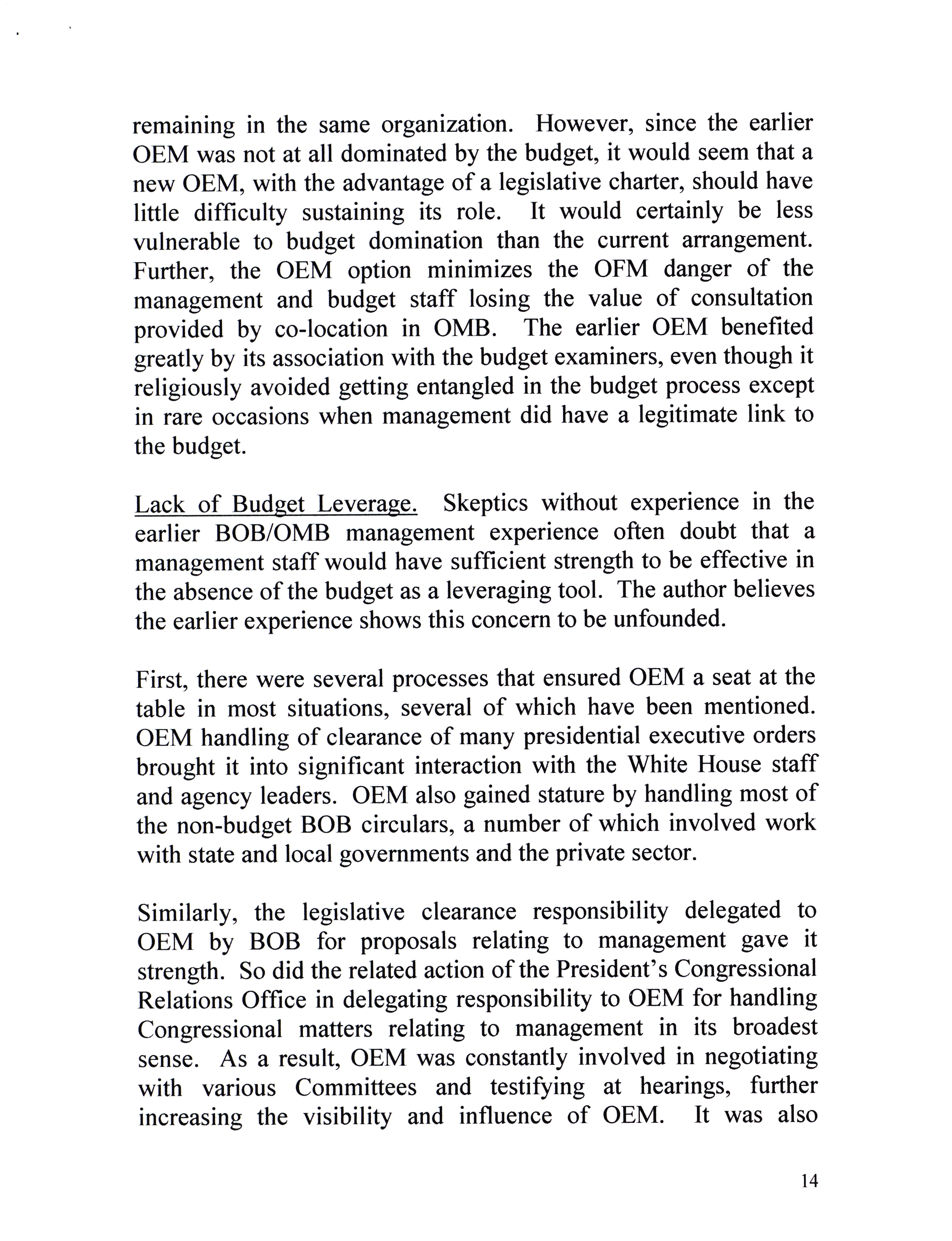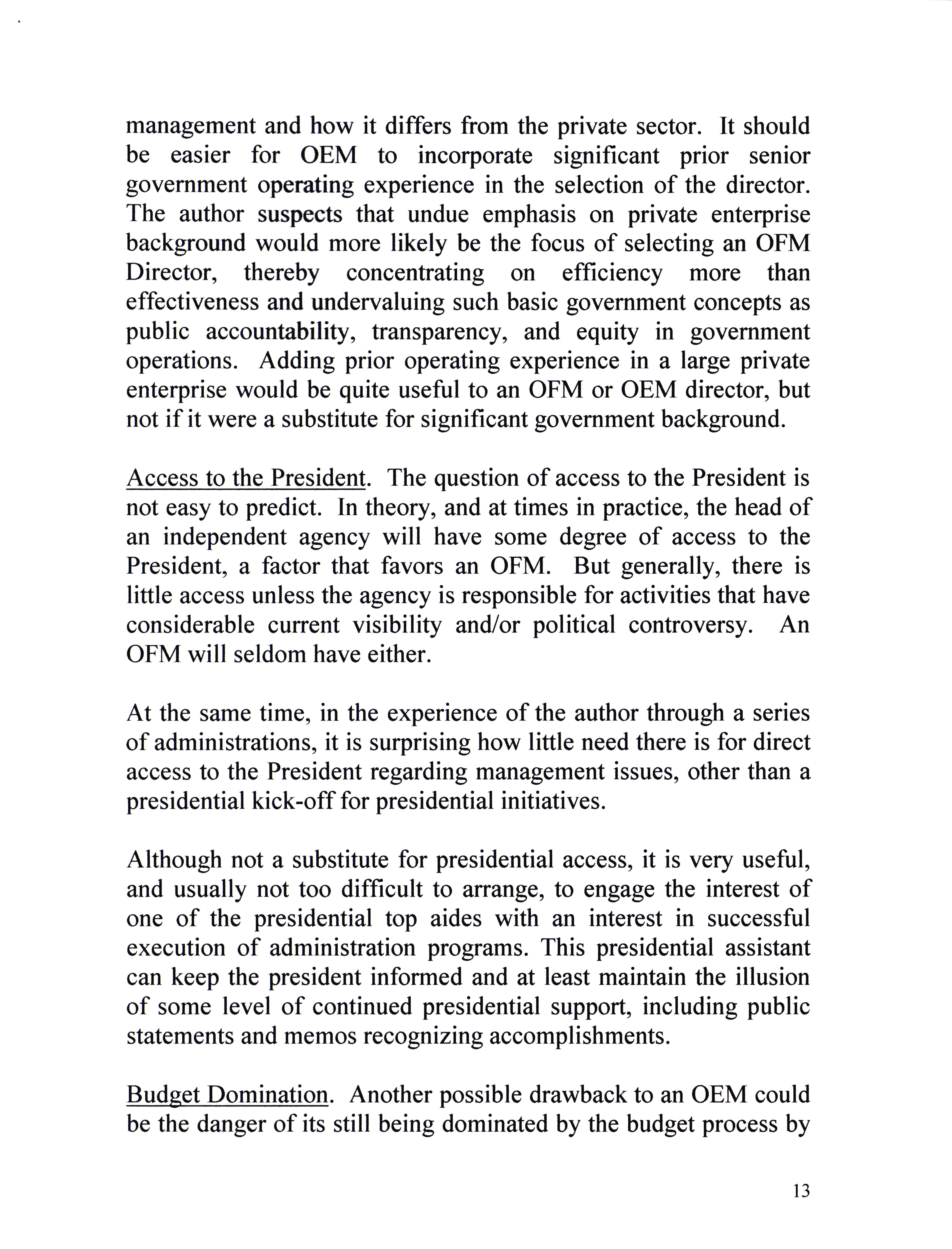 A modernized office of executive management: an option for making the M in OMB a reality Item Info