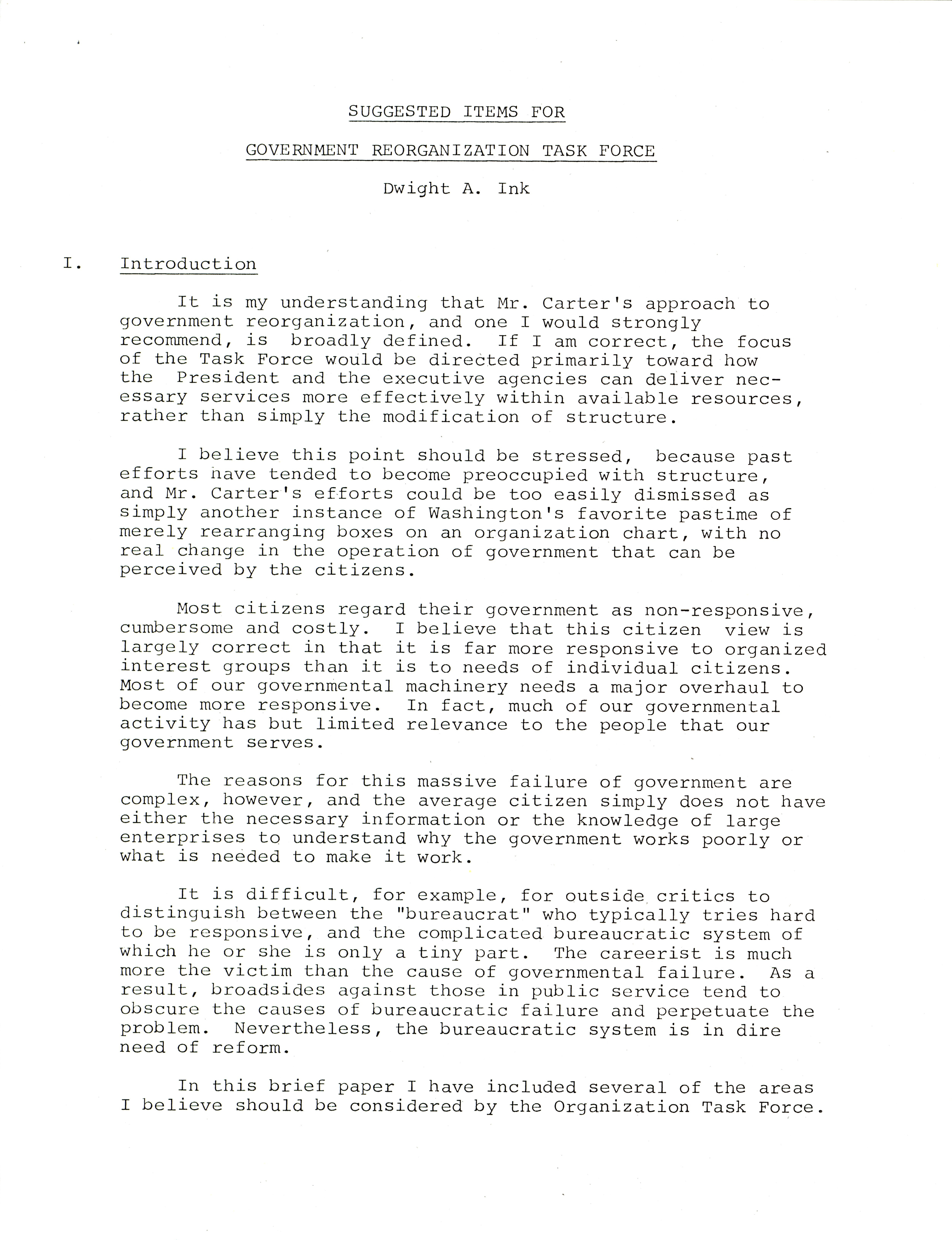 - Writings: Ink, Dwight. Government Reorganization Task Force, 1976