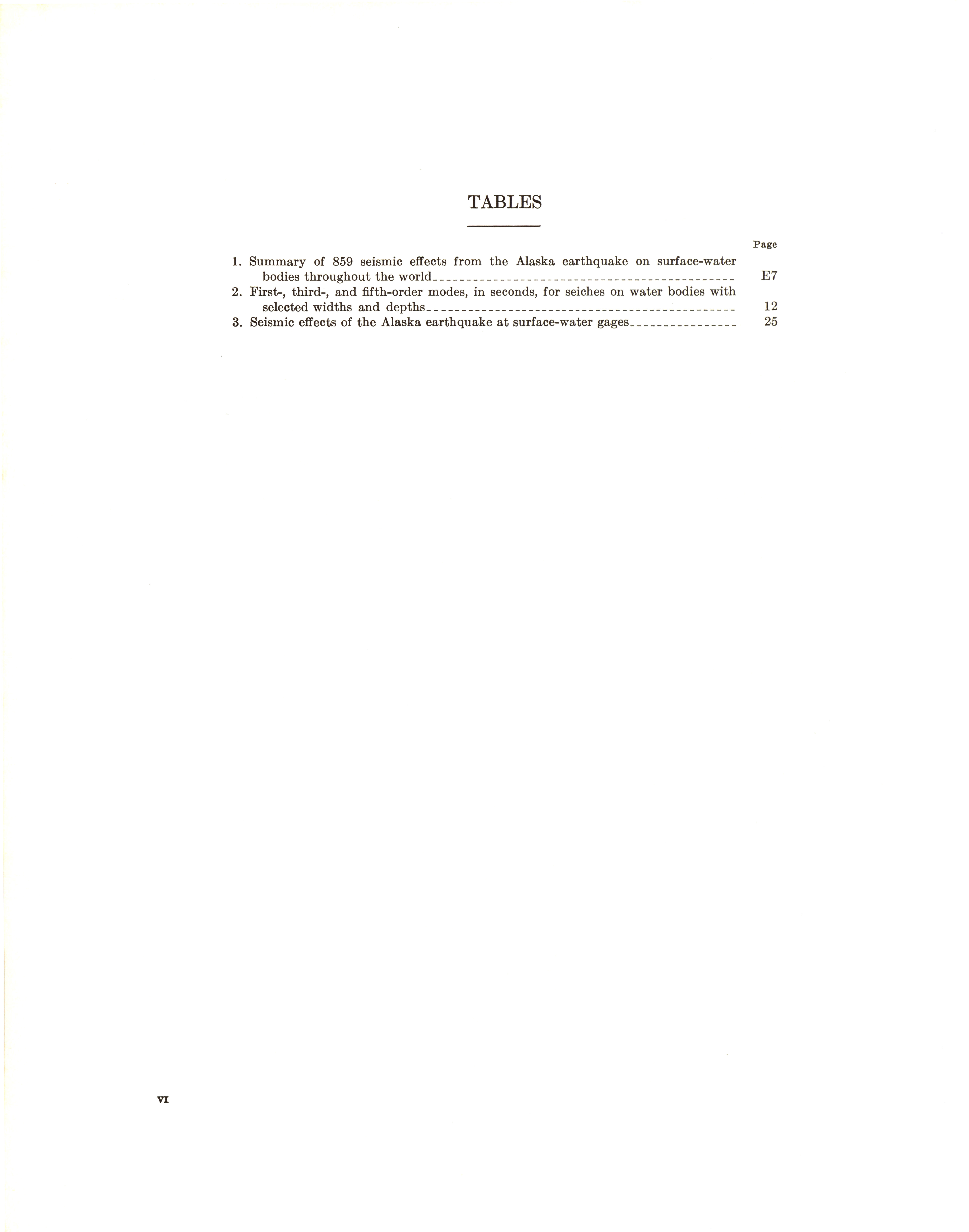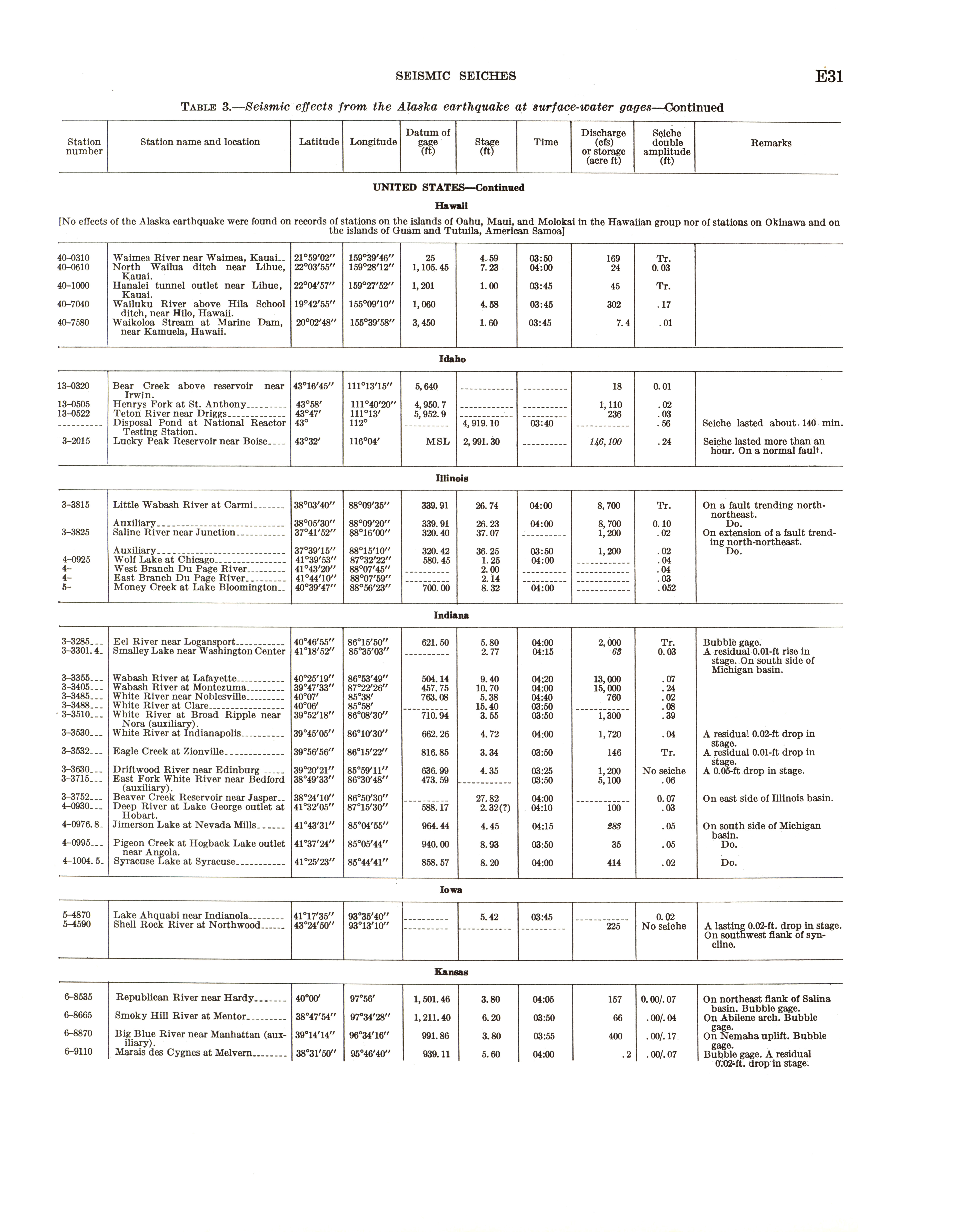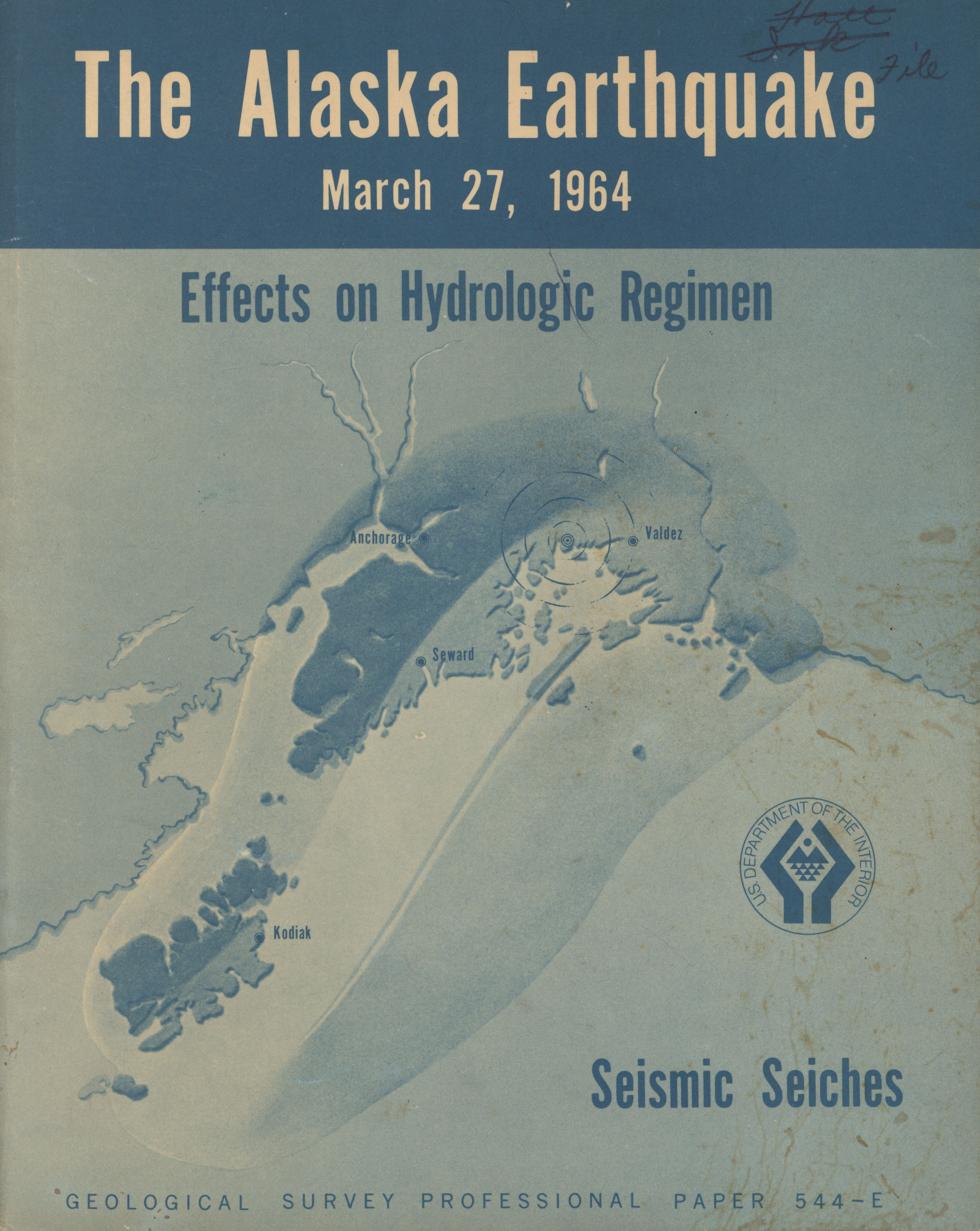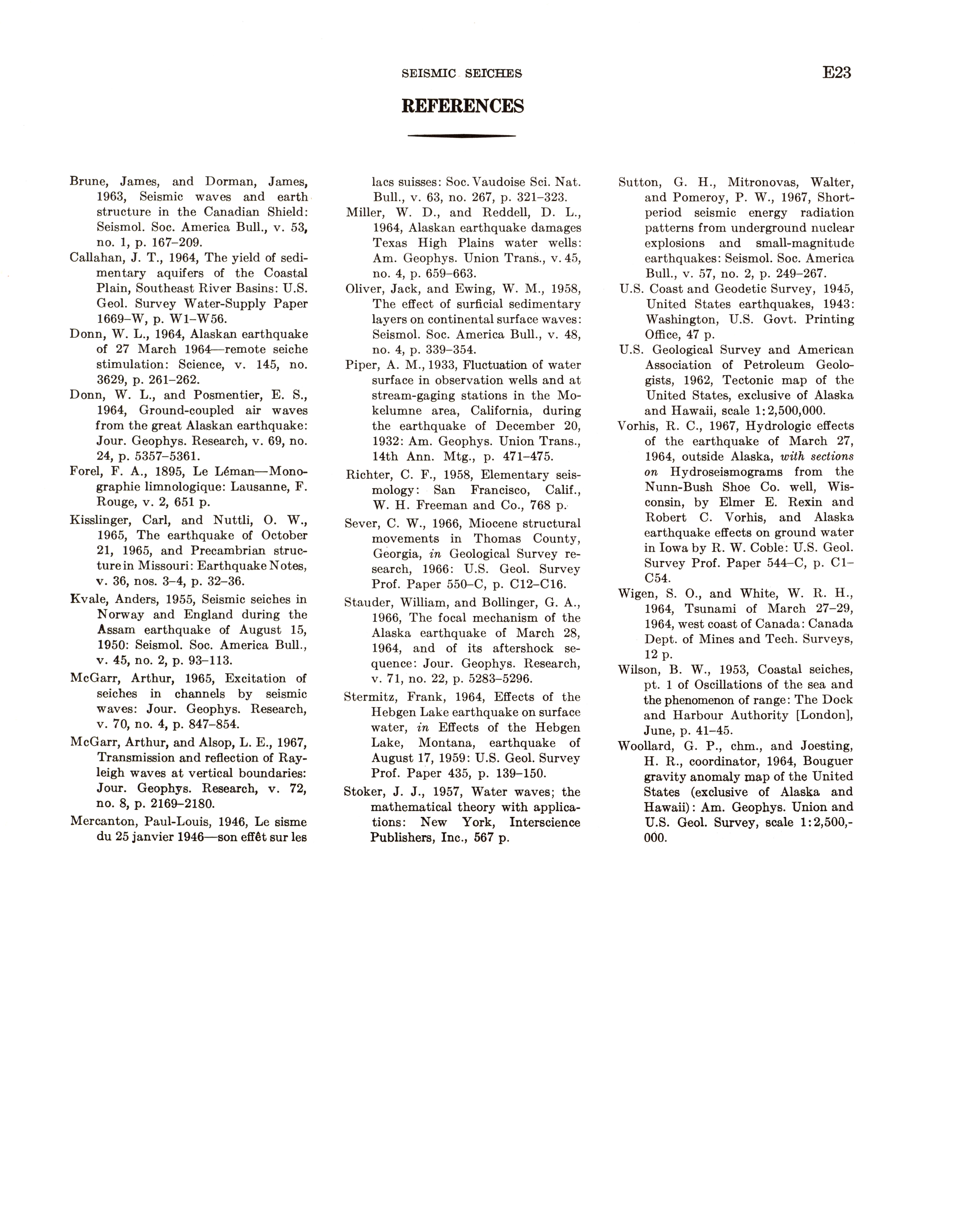 - "The Alaska earthquake, March 27, 1964: effects on hydrologic regimen. Seismic seiches", Dwight Ink Collection, Iowa State University Library Digital Collections