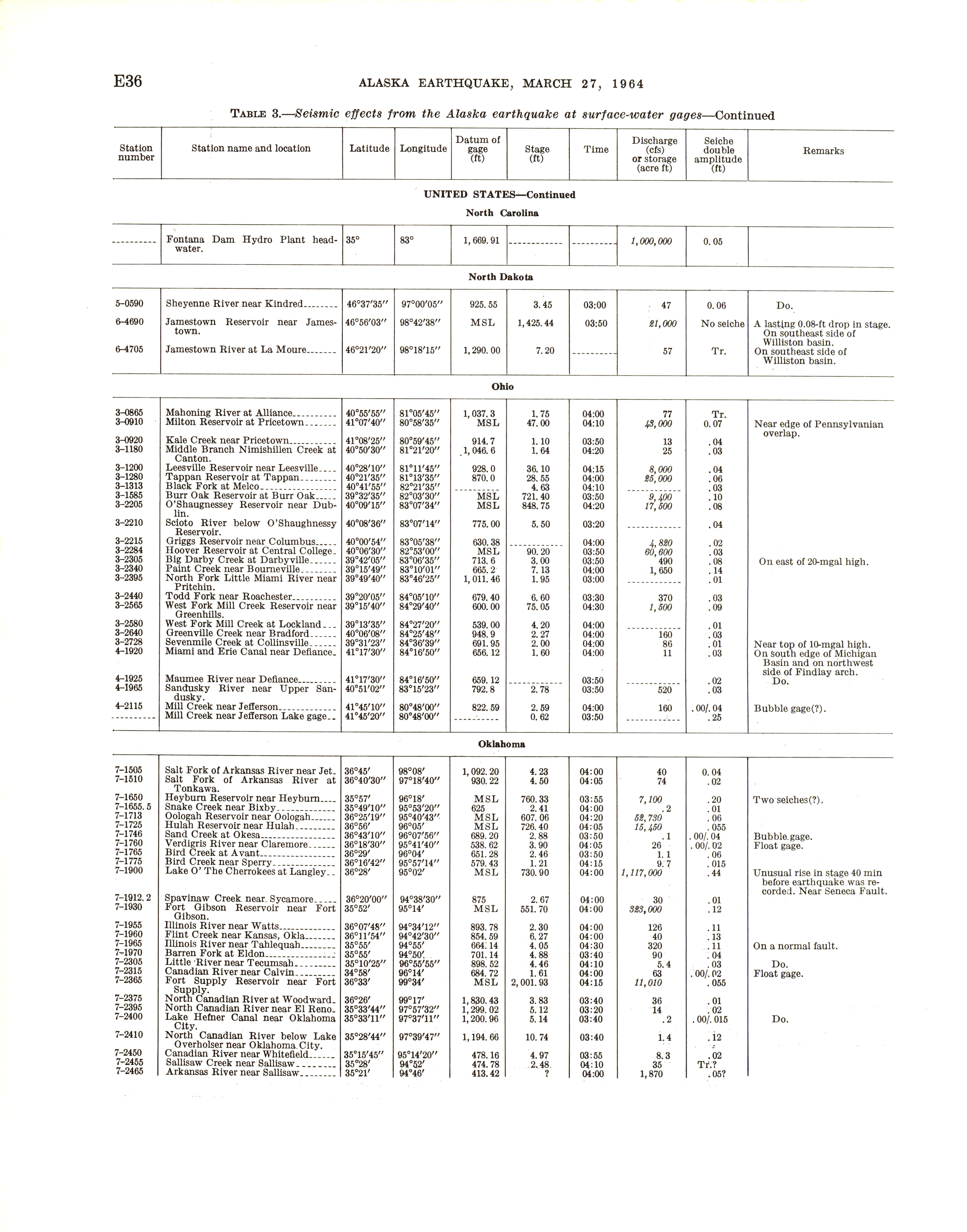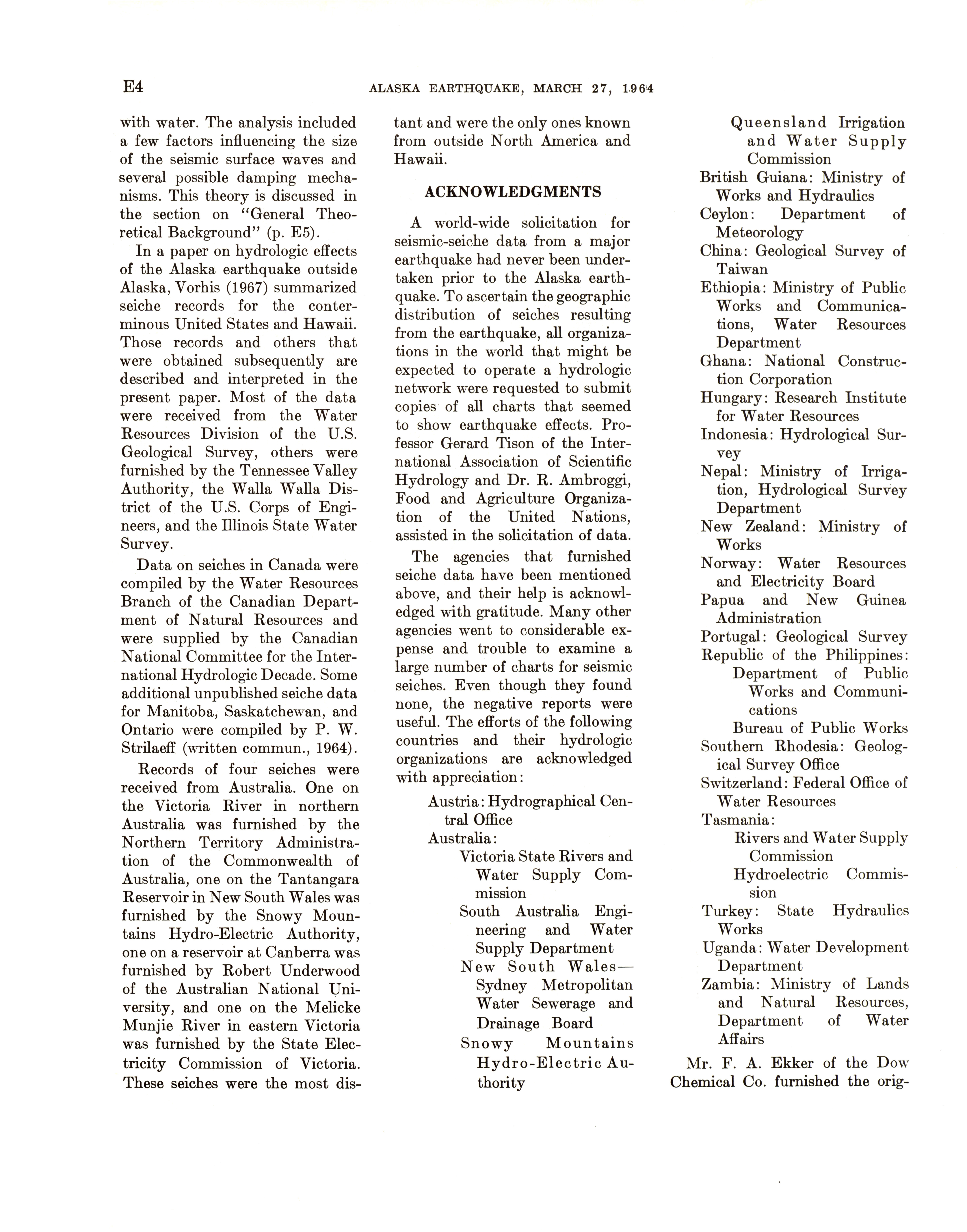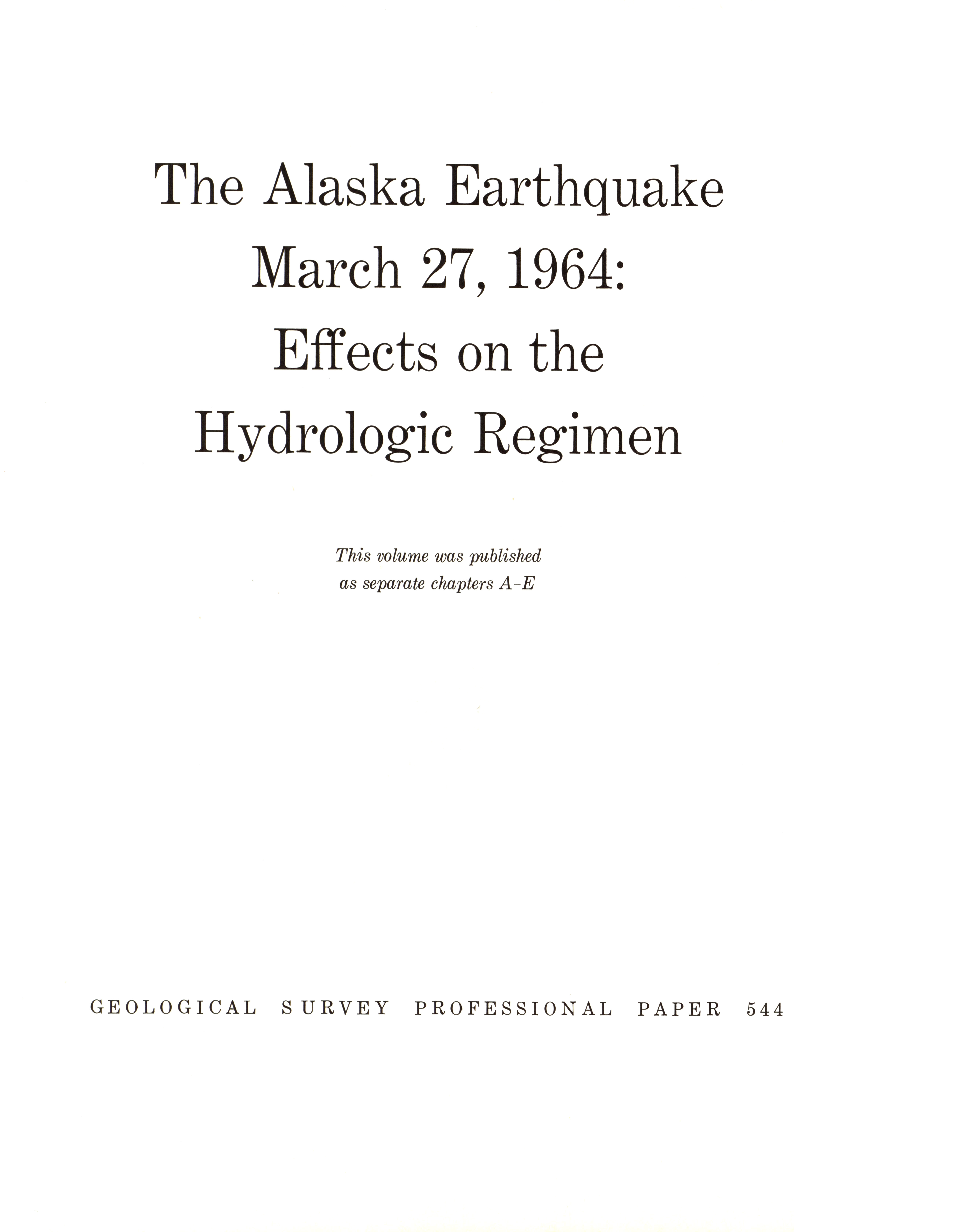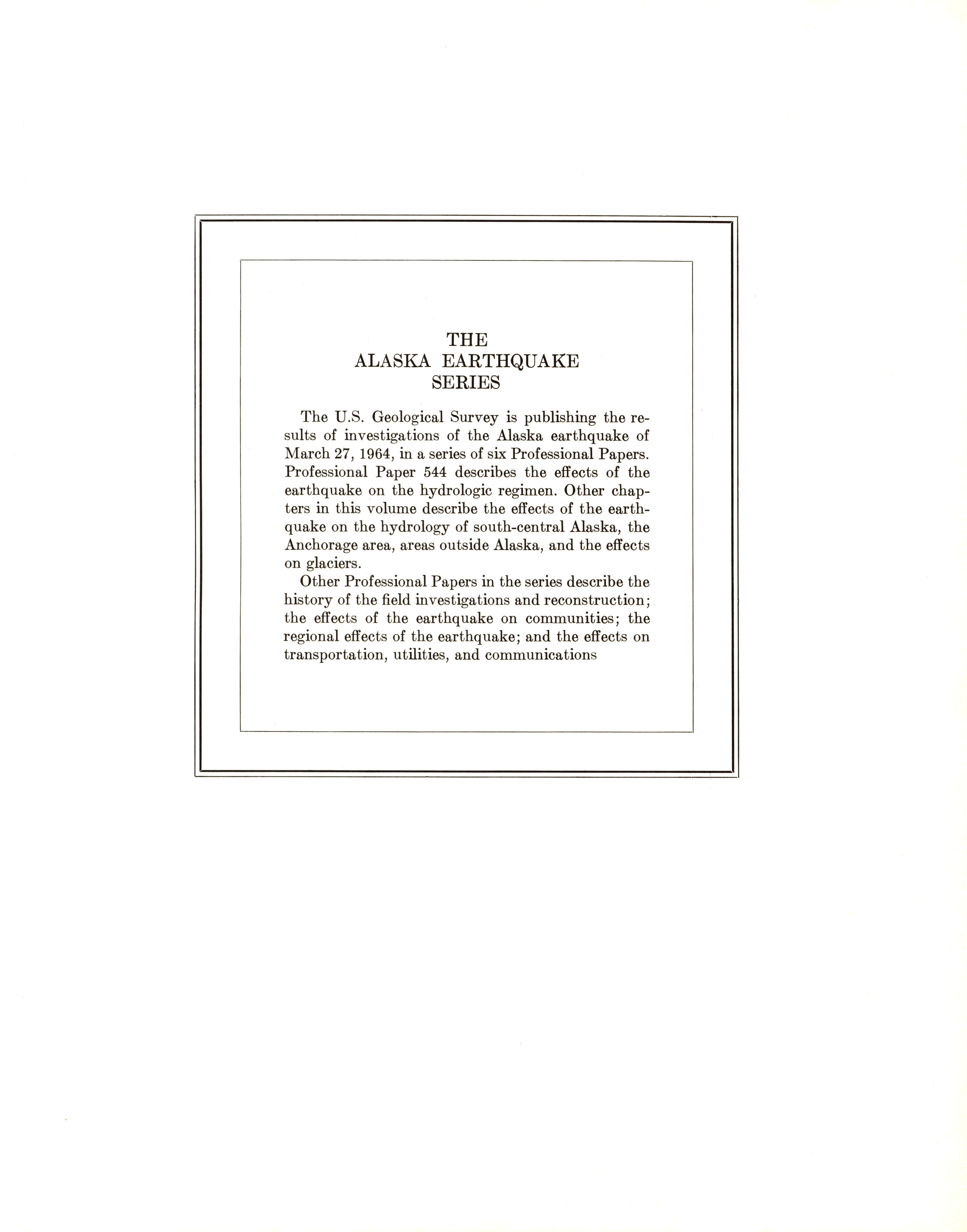 - "The Alaska earthquake, March 27, 1964: effects on hydrologic regimen. Seismic seiches", Dwight Ink Collection, Iowa State University Library Digital Collections