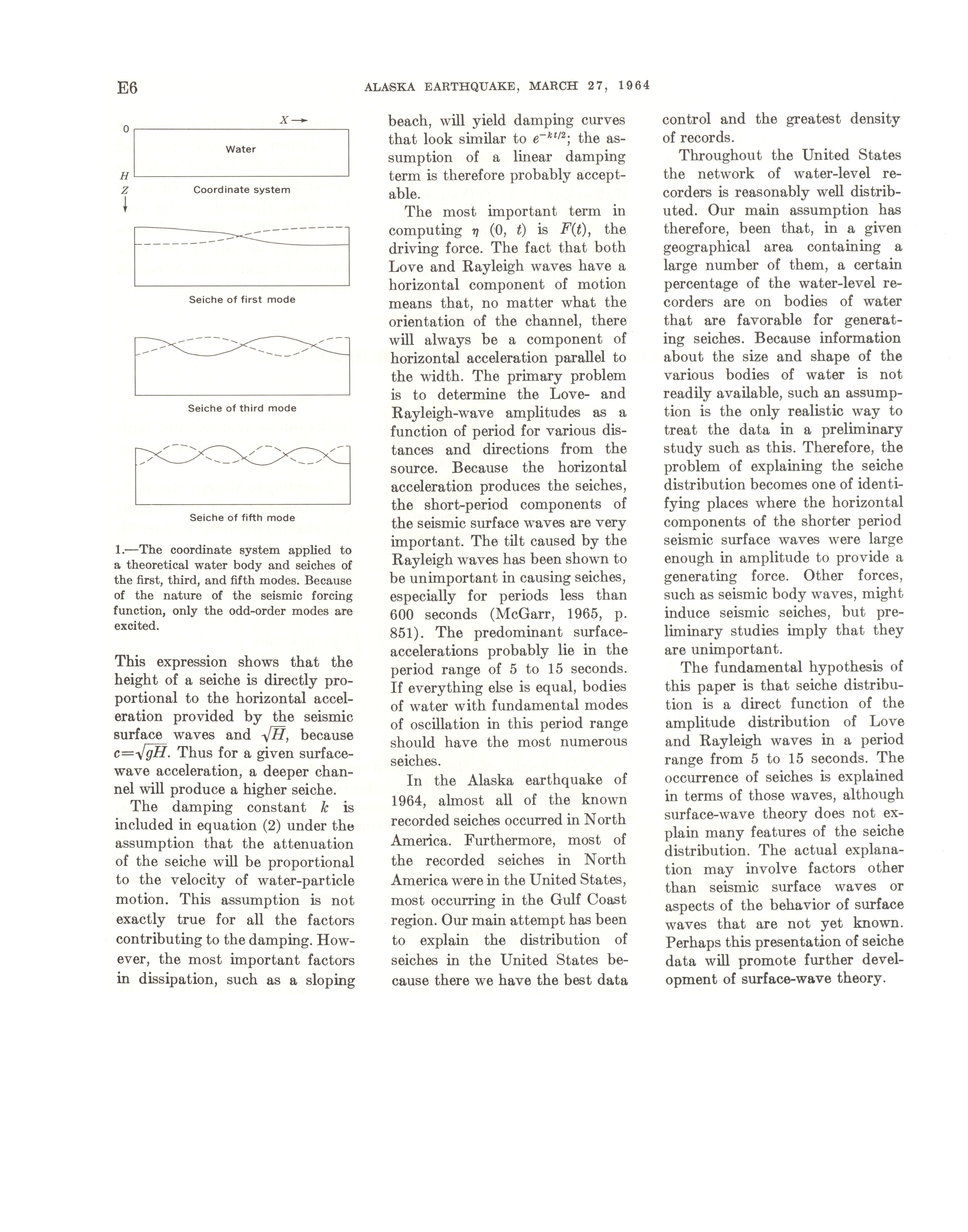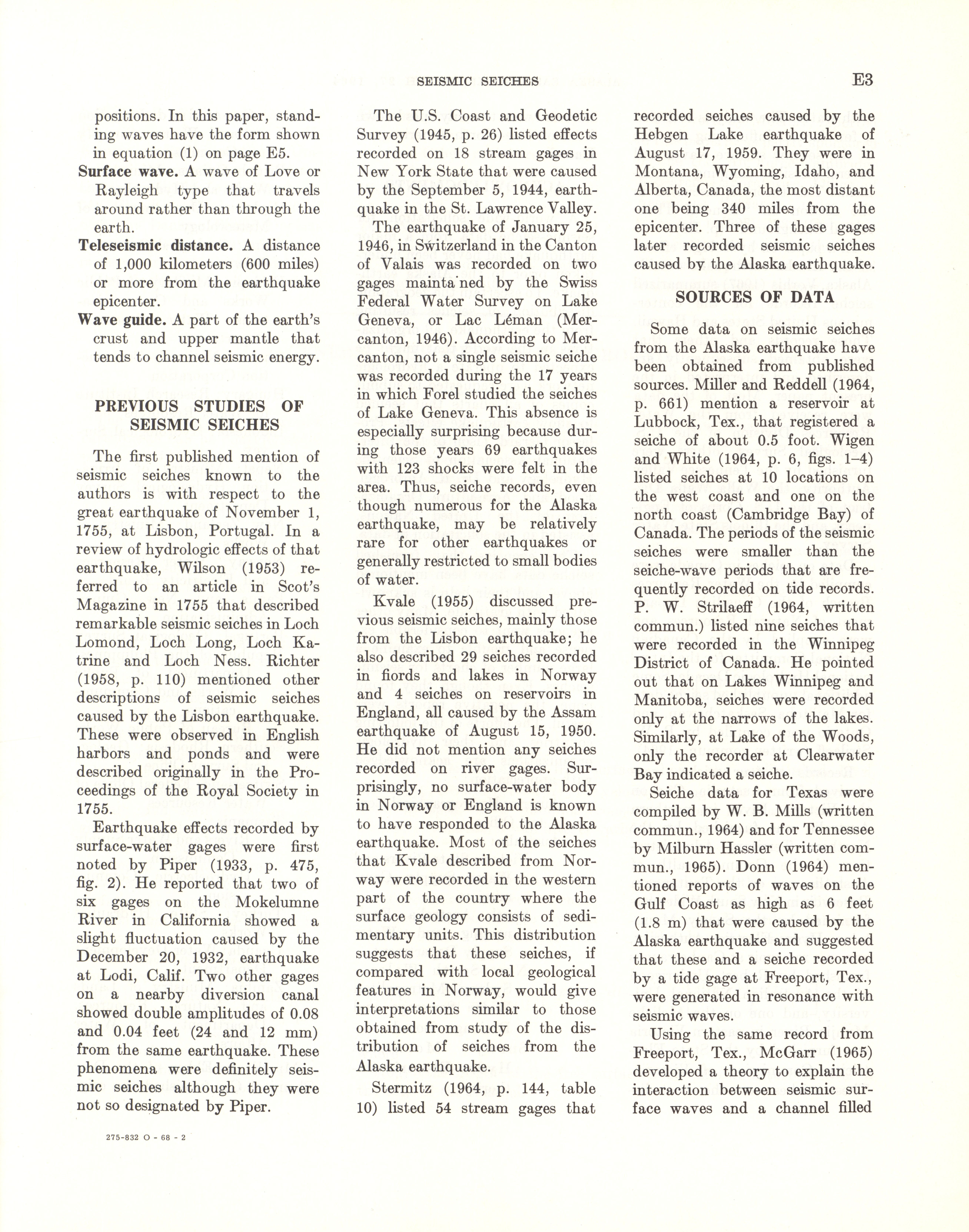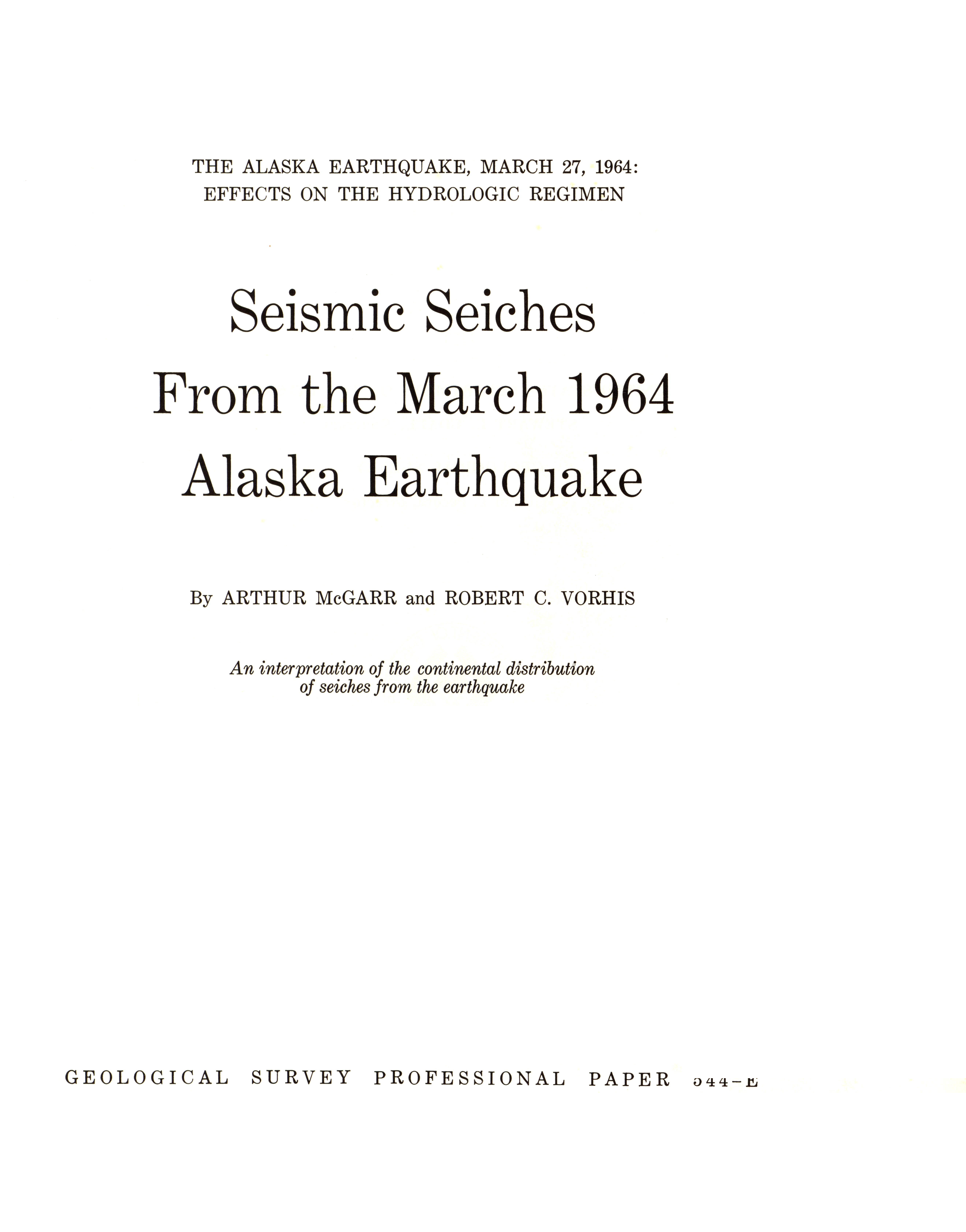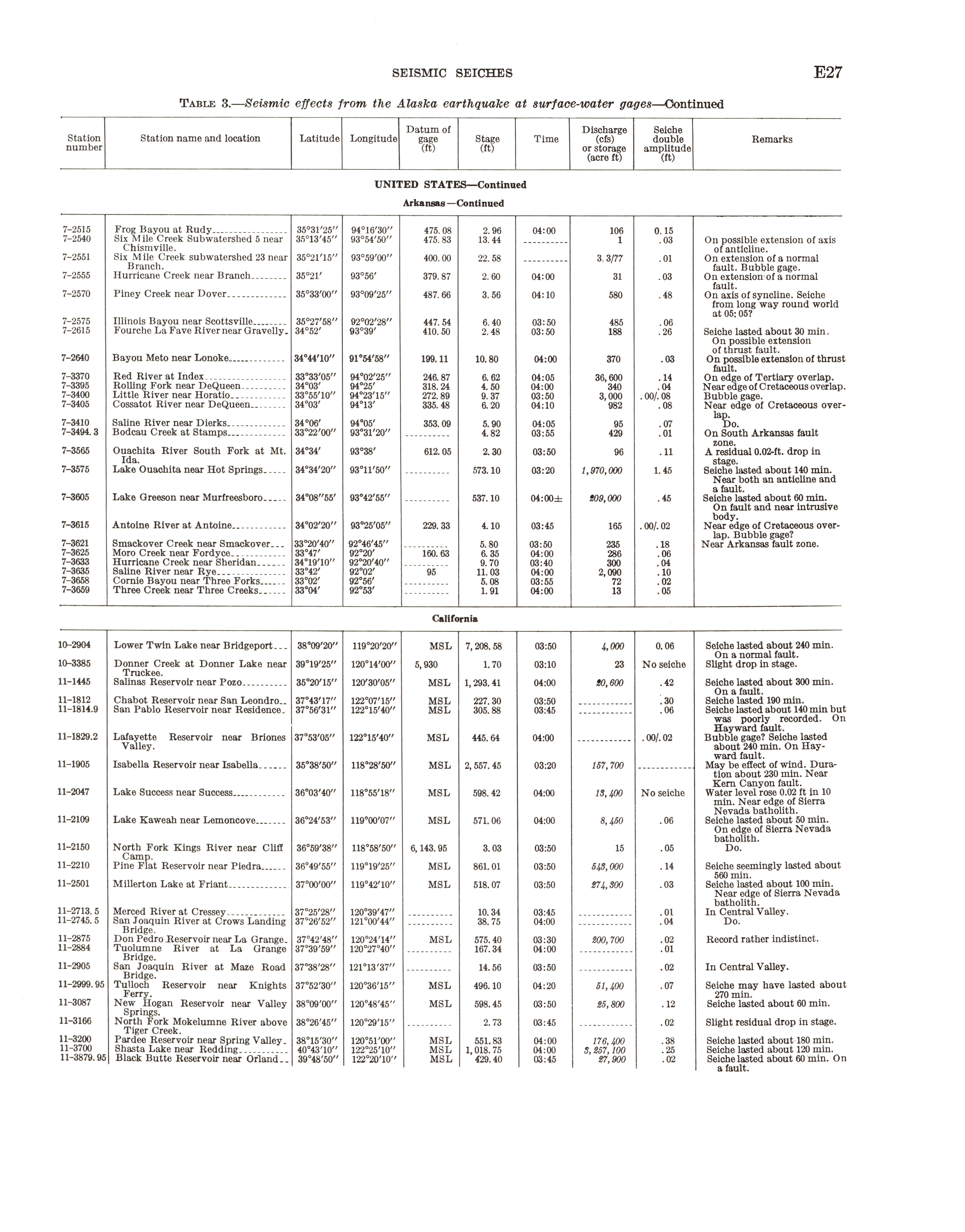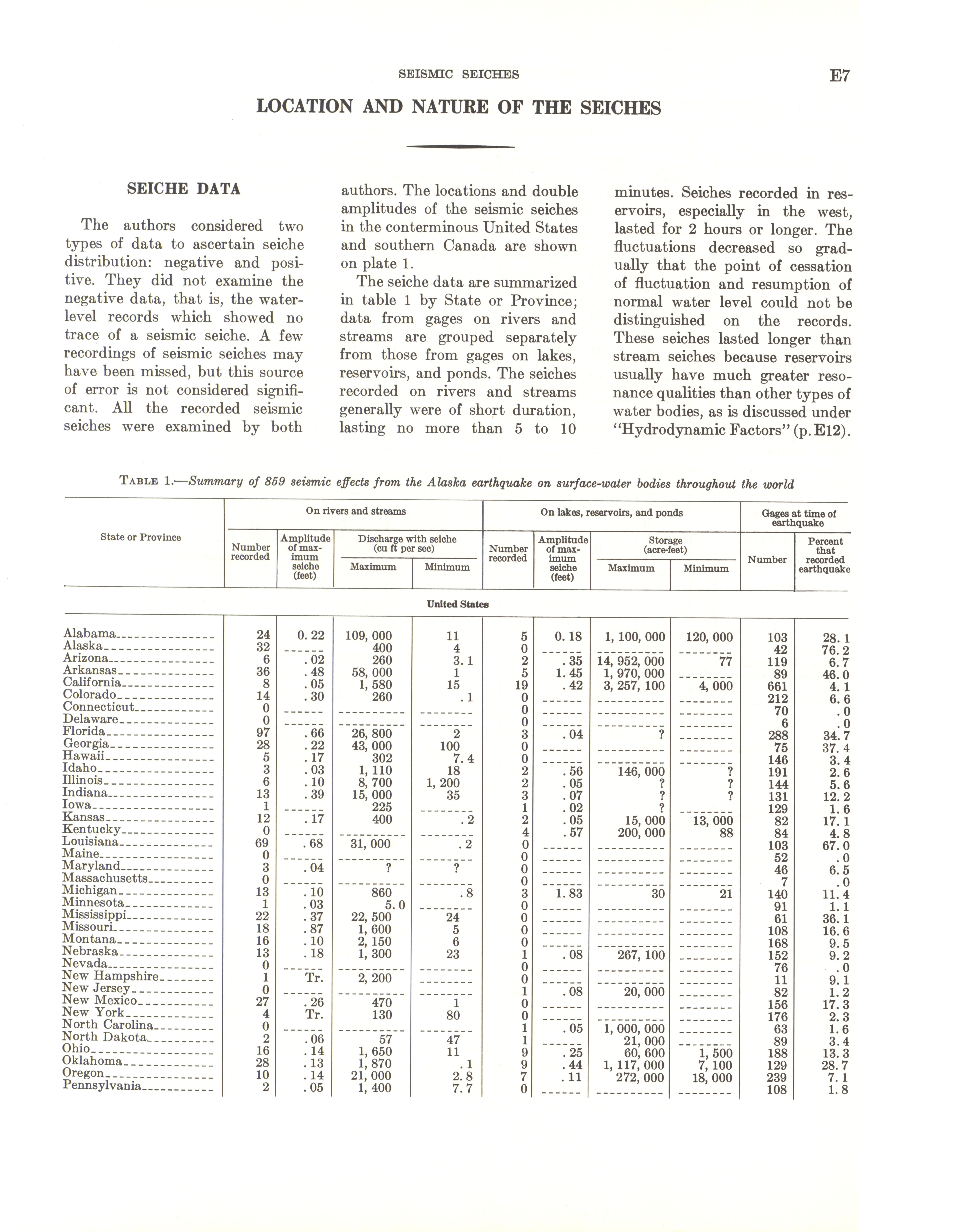 - Geological Survey professional paper 544E: effects on hydrologic regimen, seismic seiches, 1968