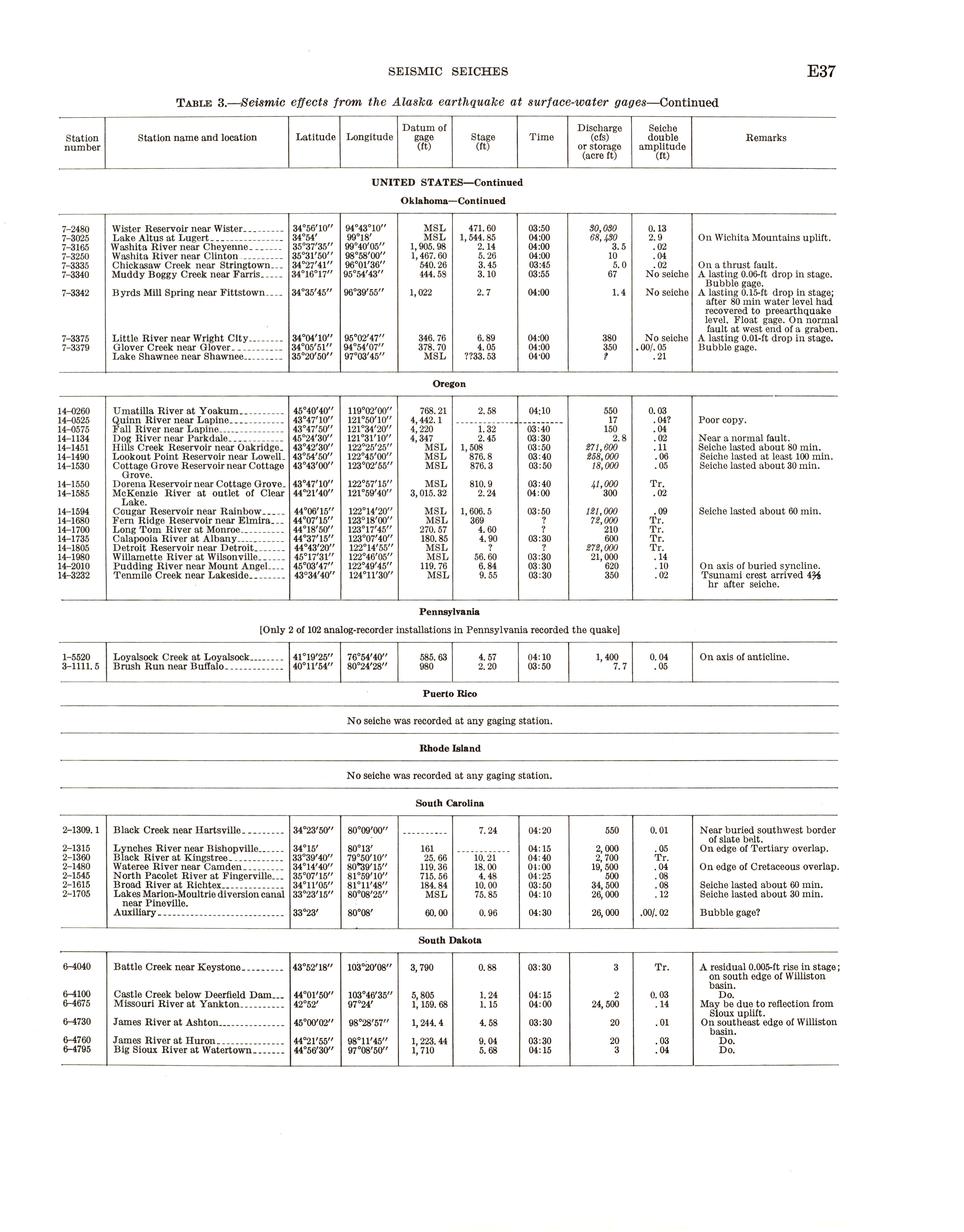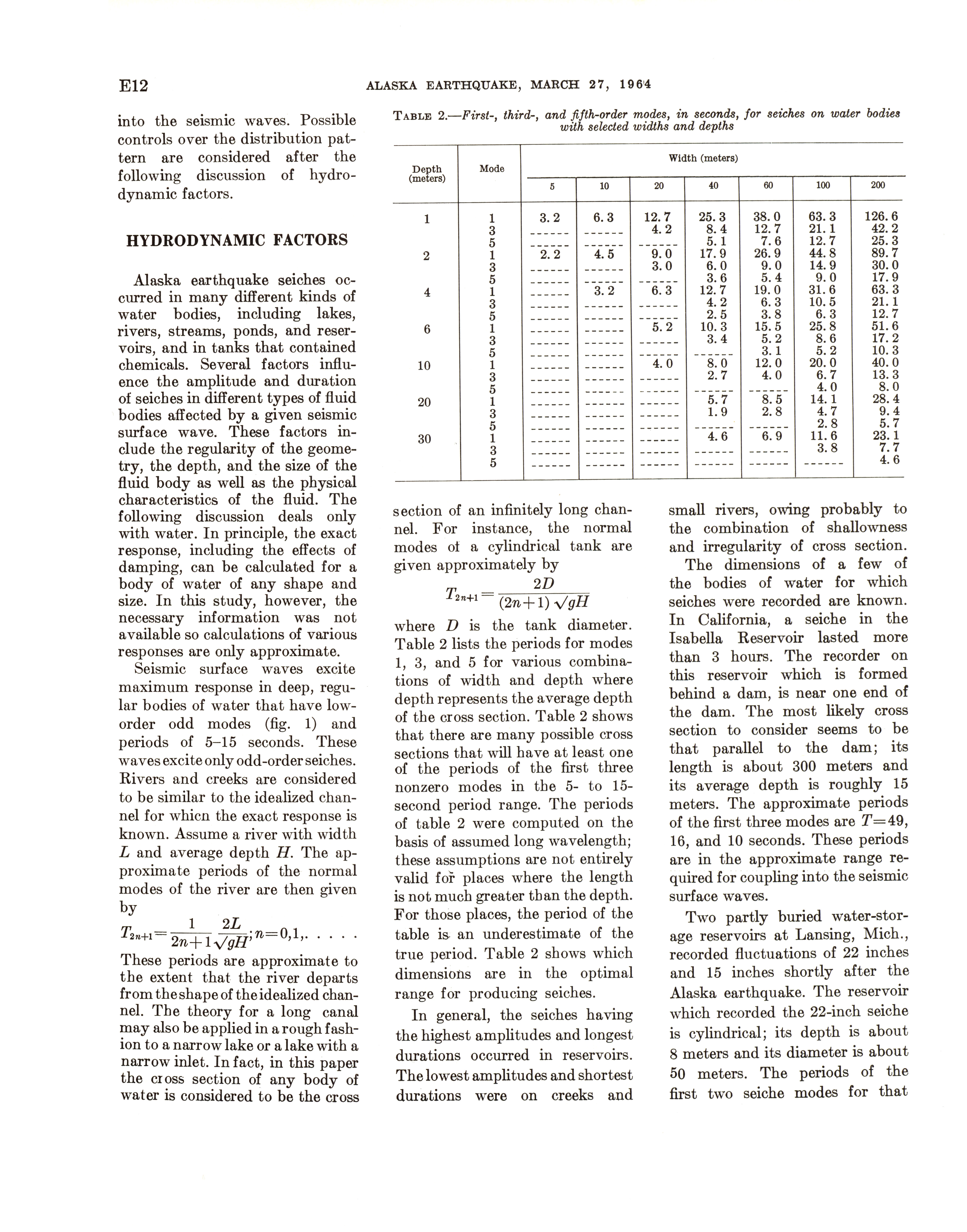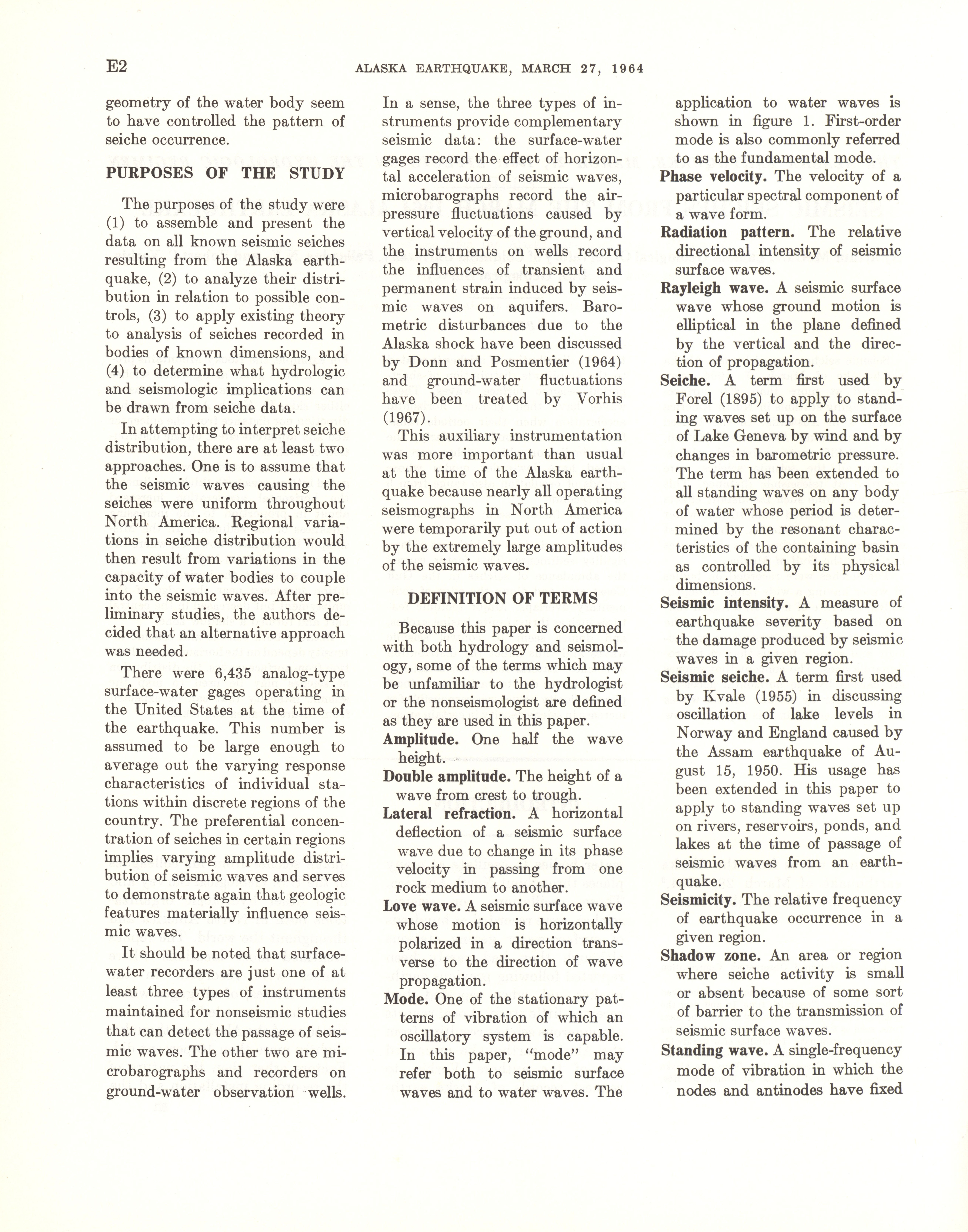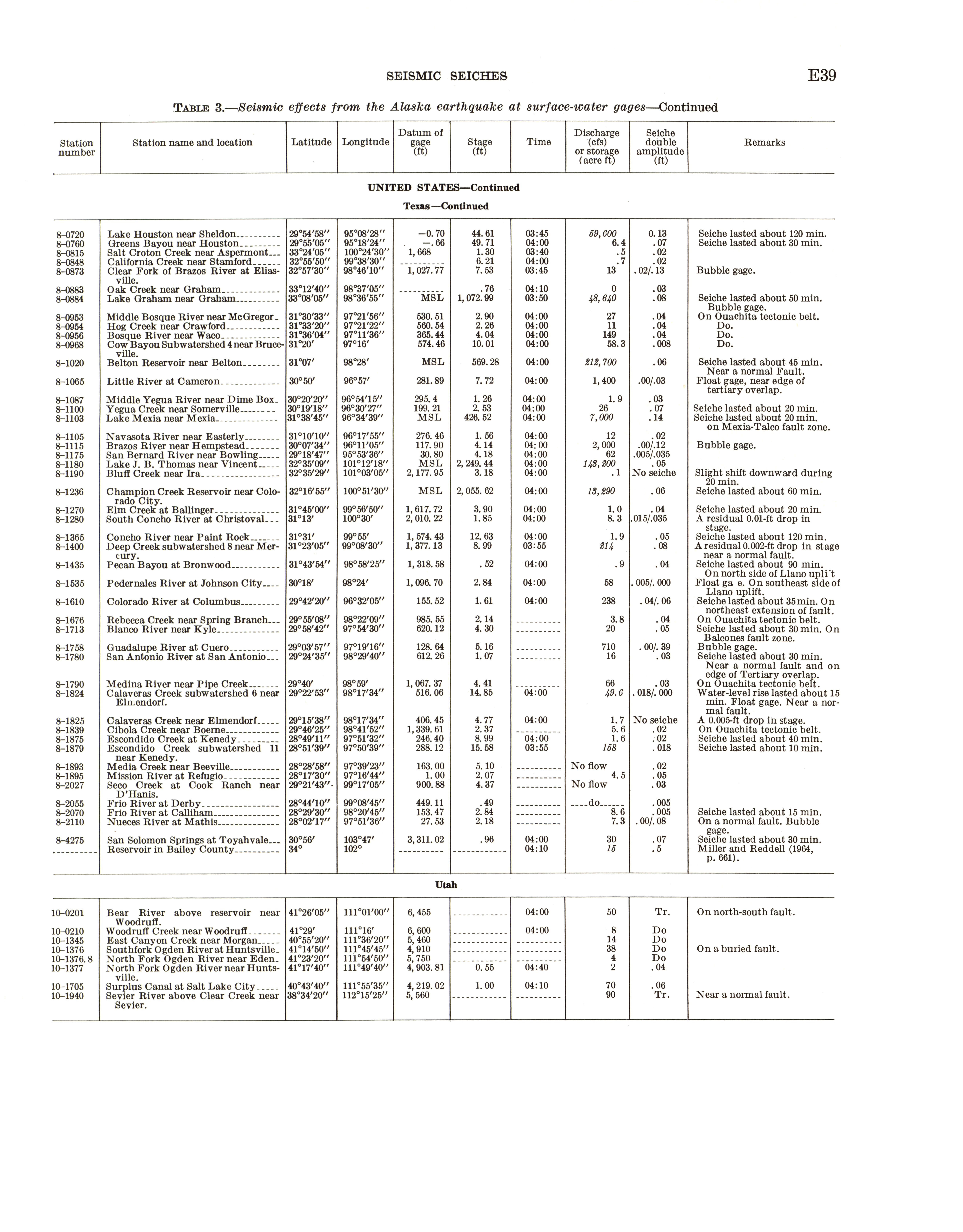 - Geological Survey professional paper 544E: effects on hydrologic regimen, seismic seiches, 1968