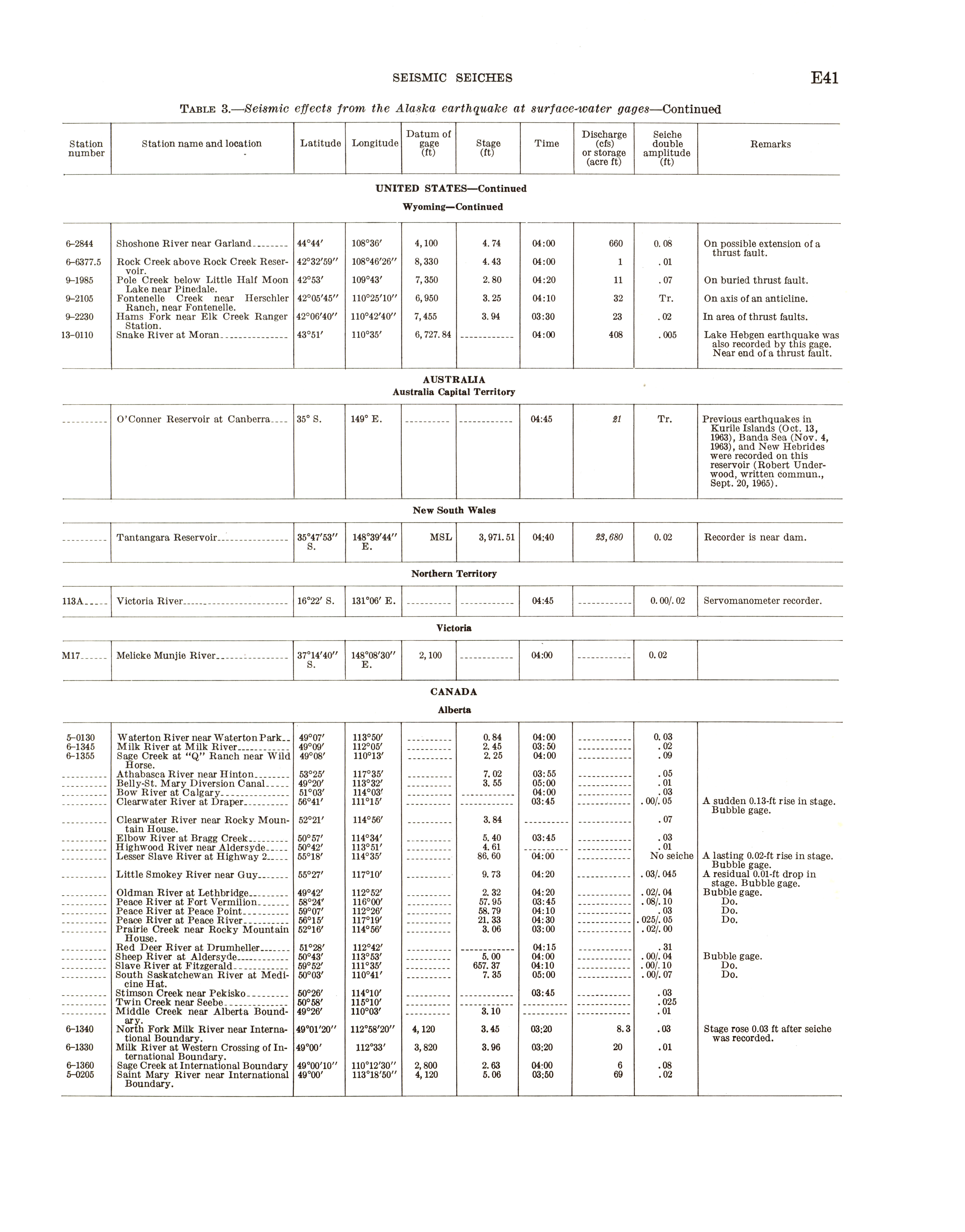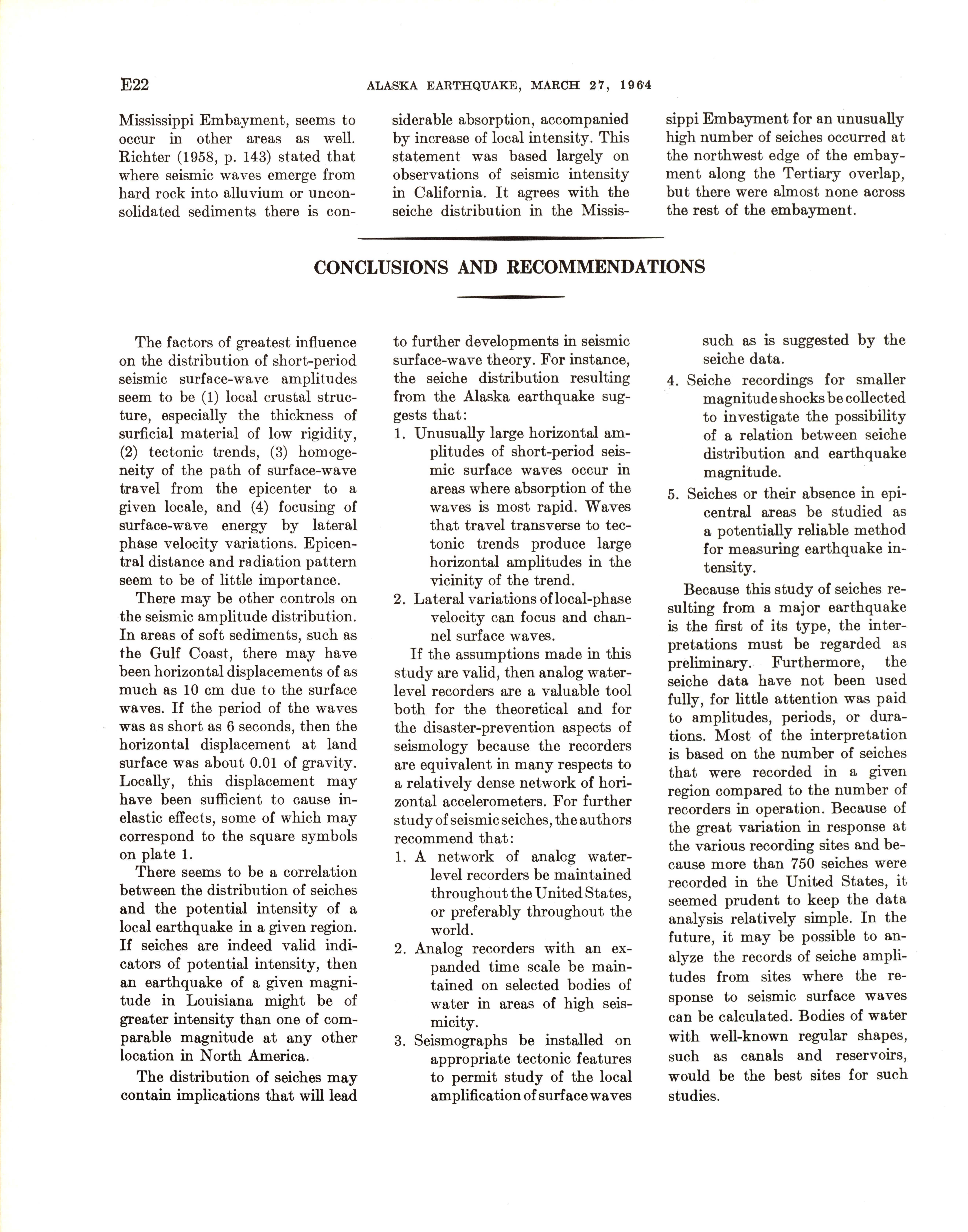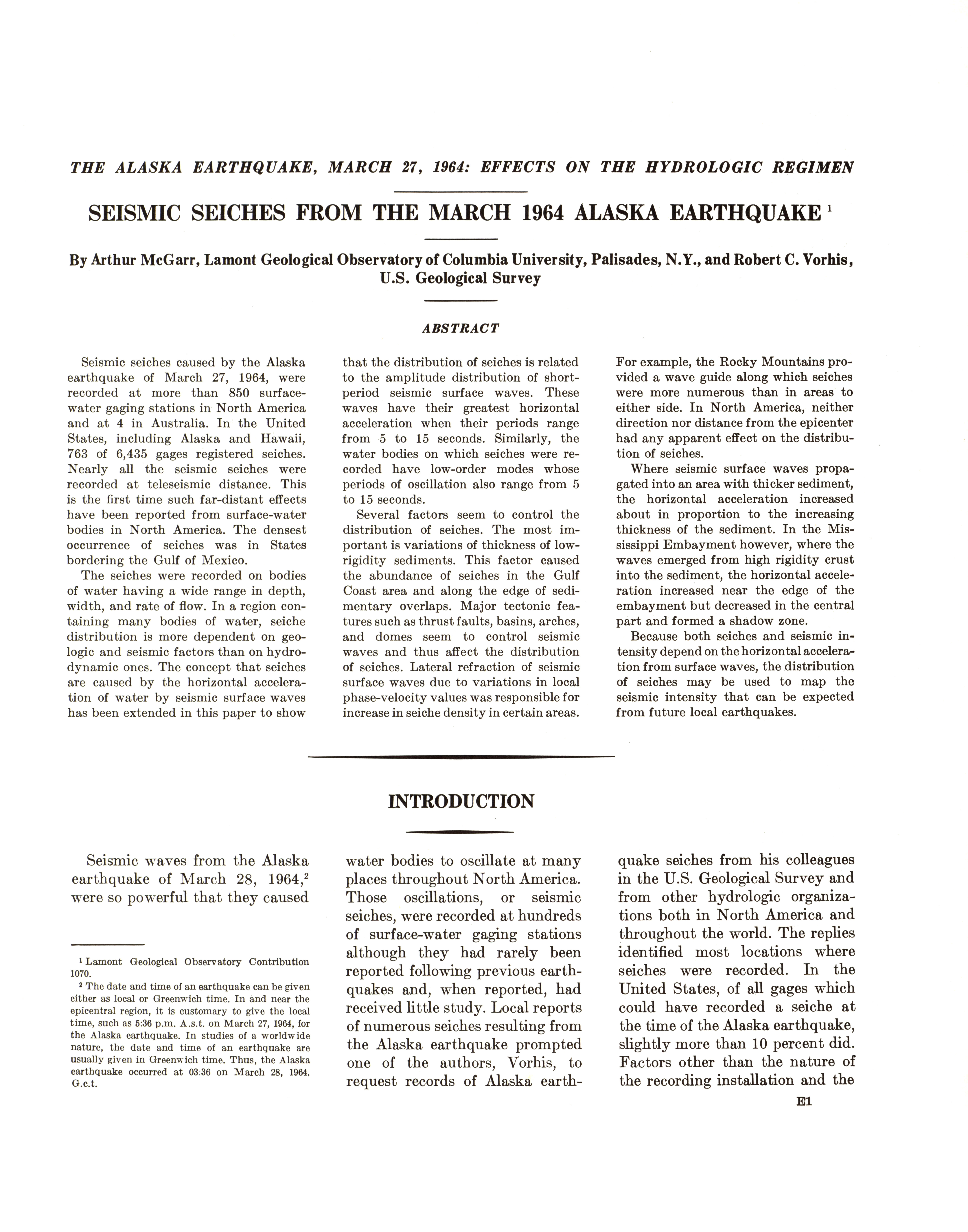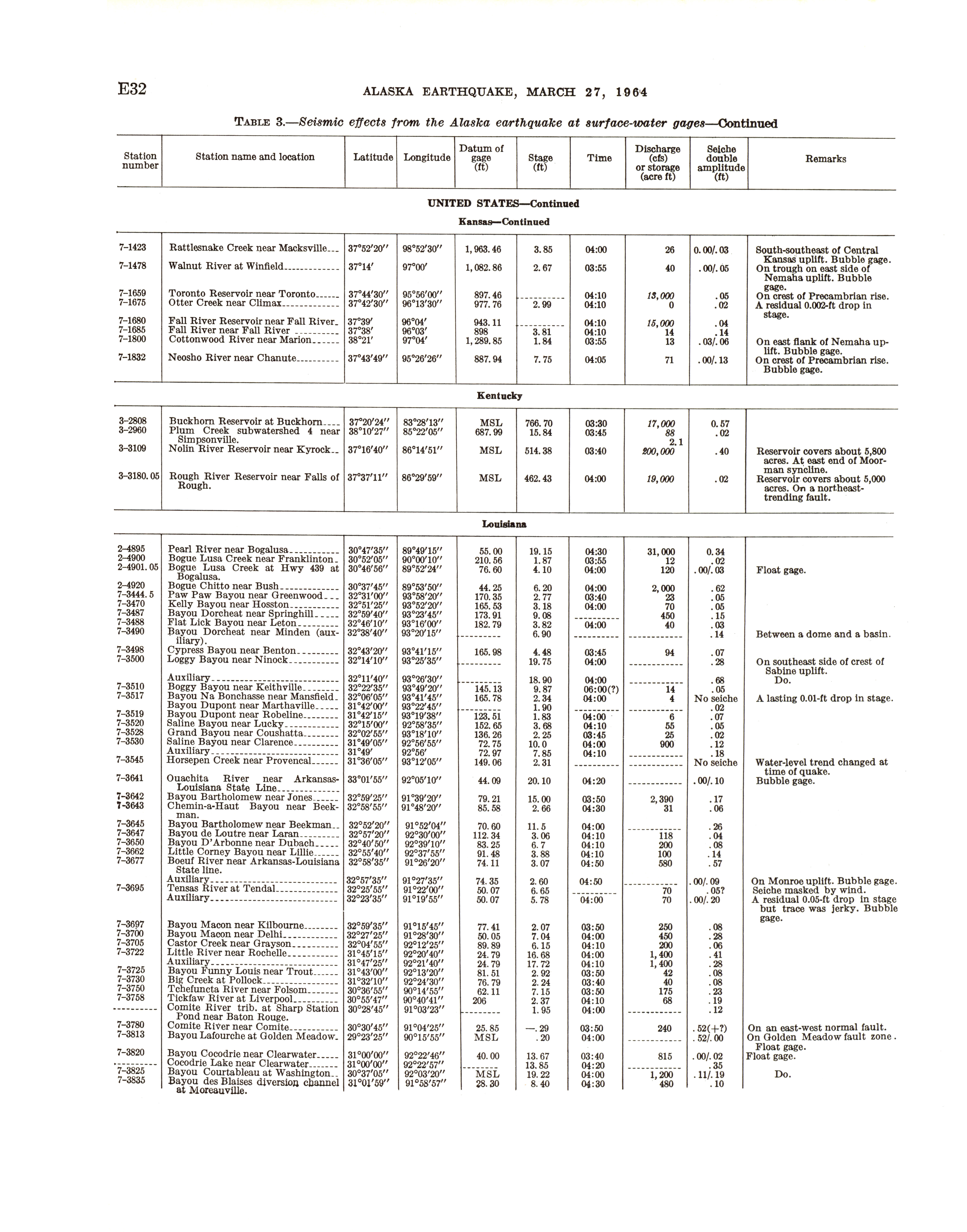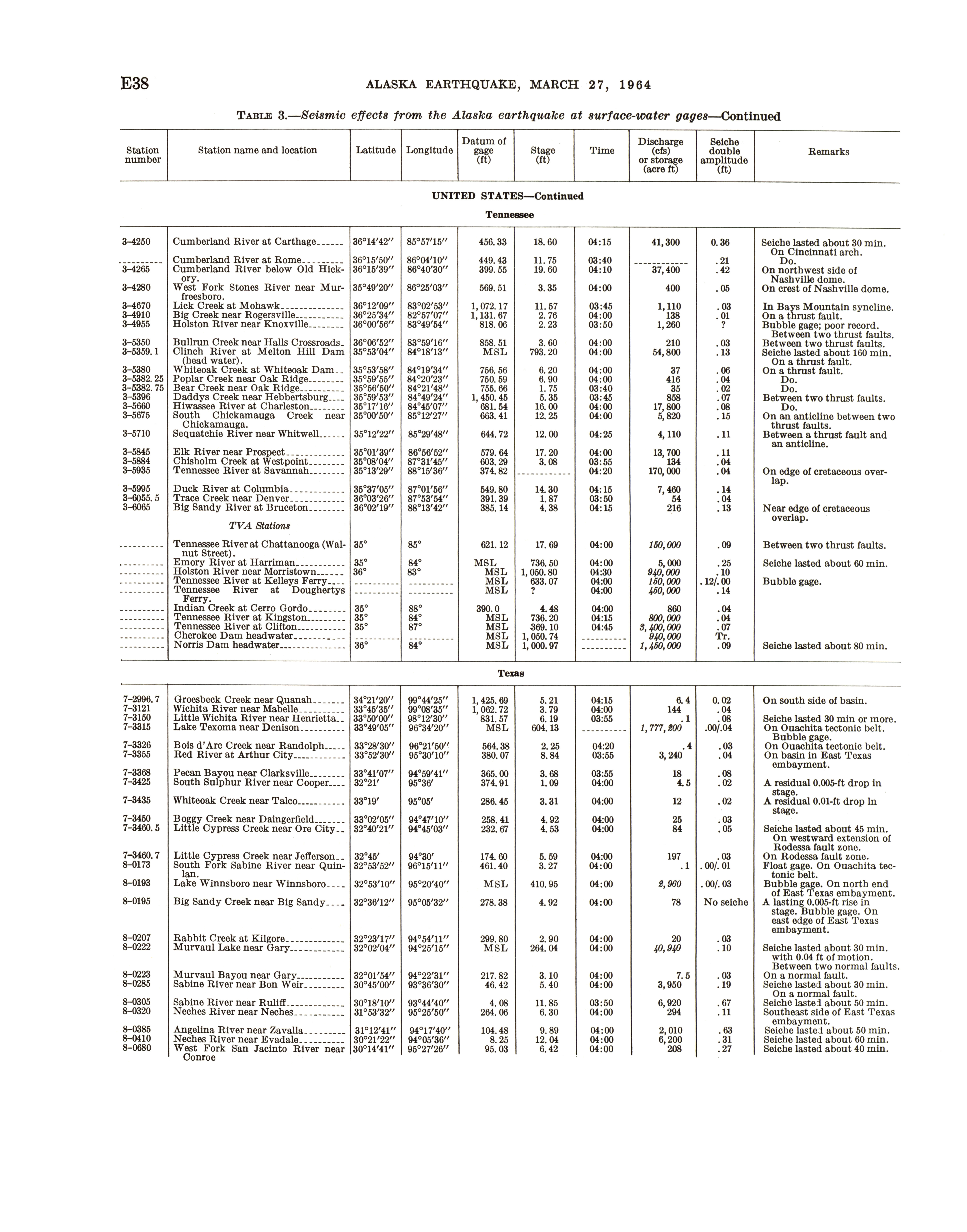 - Geological Survey professional paper 544E: effects on hydrologic regimen, seismic seiches, 1968