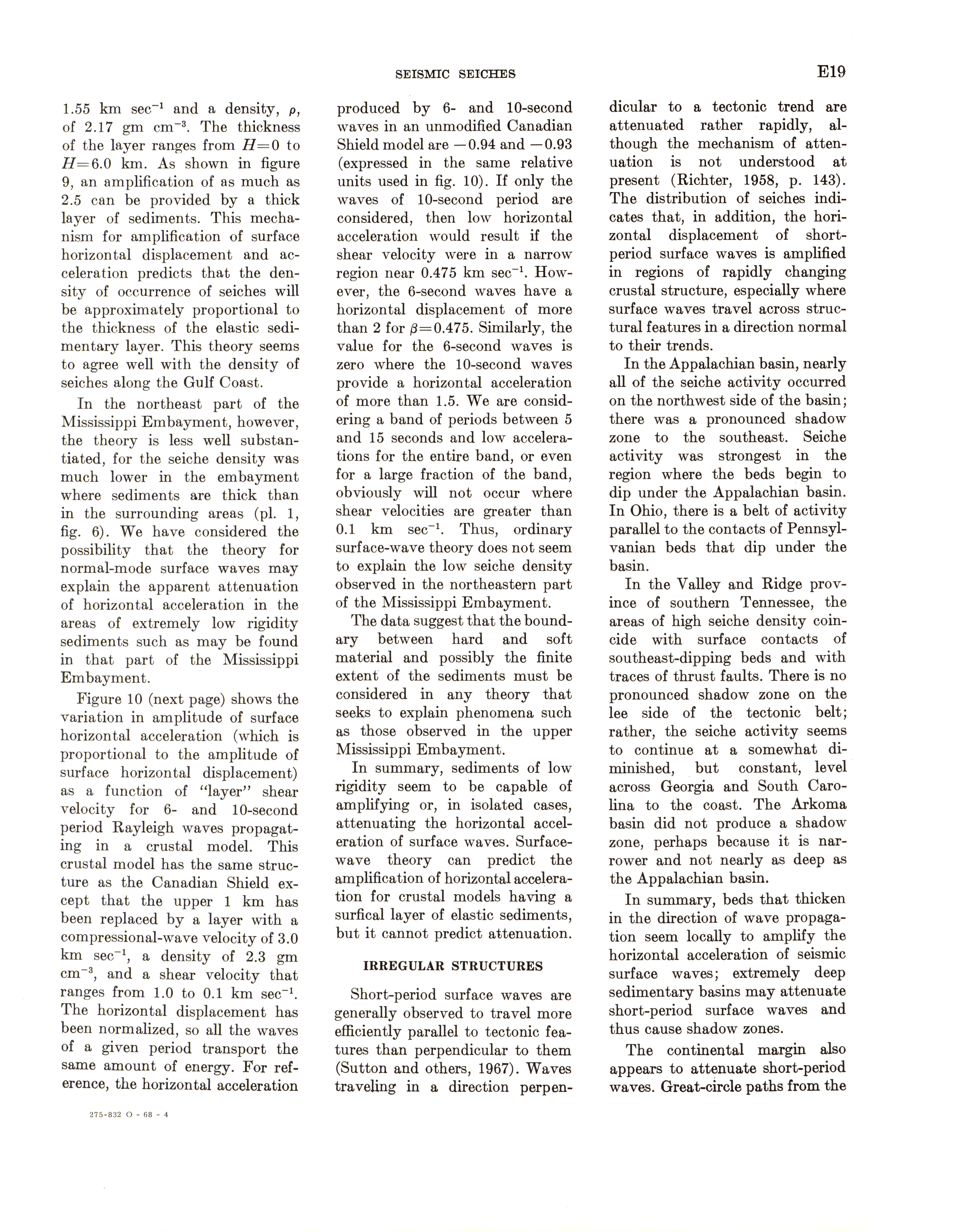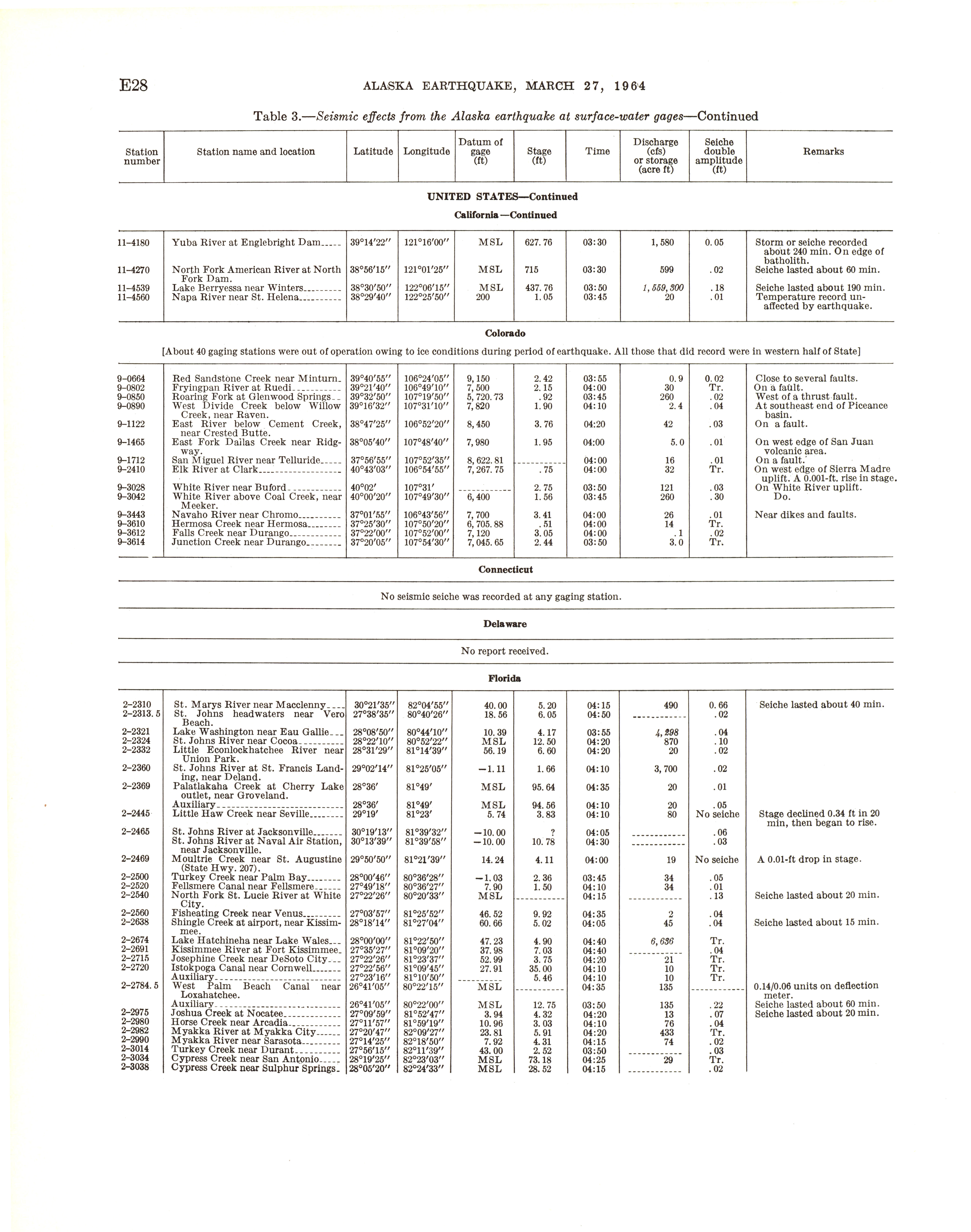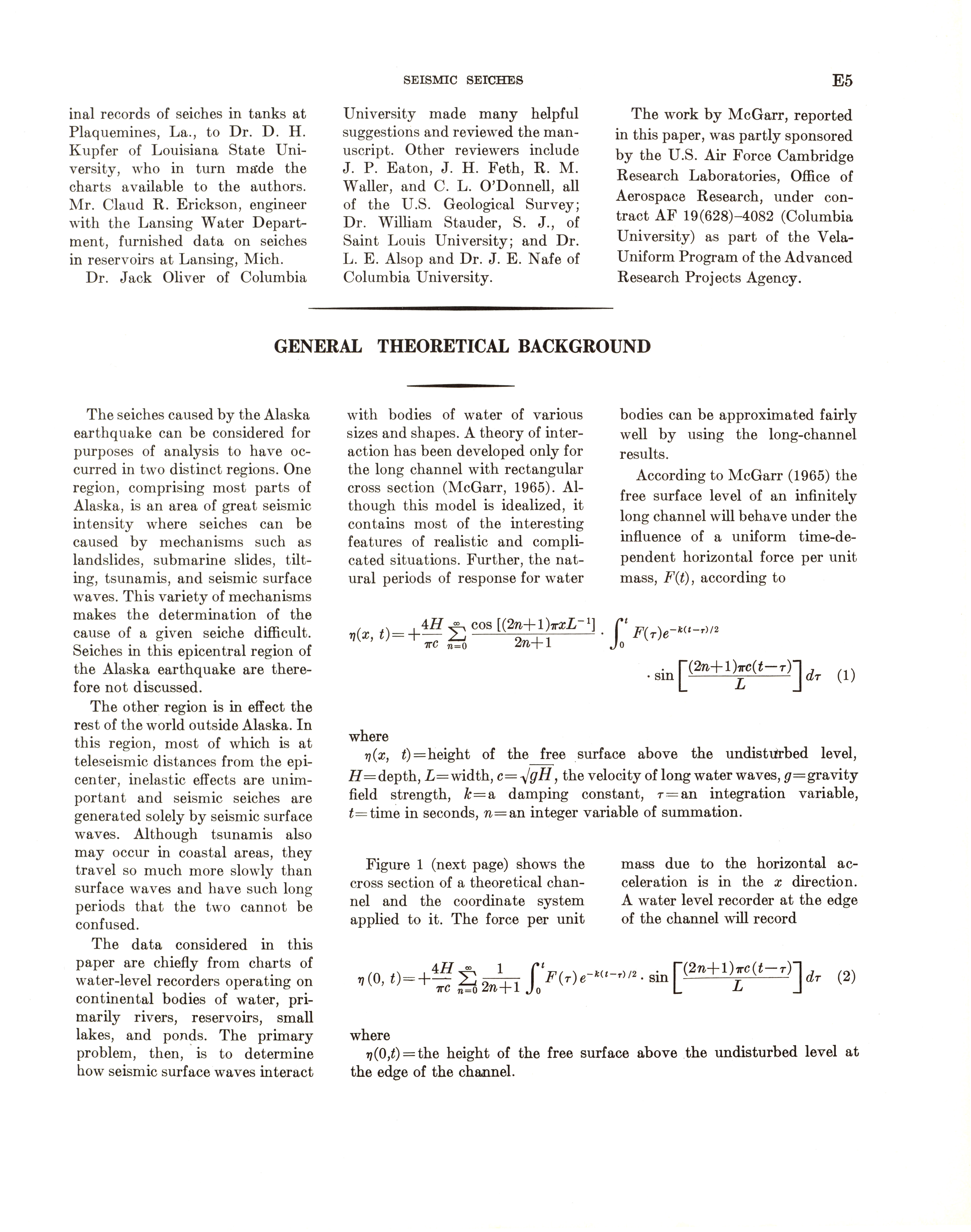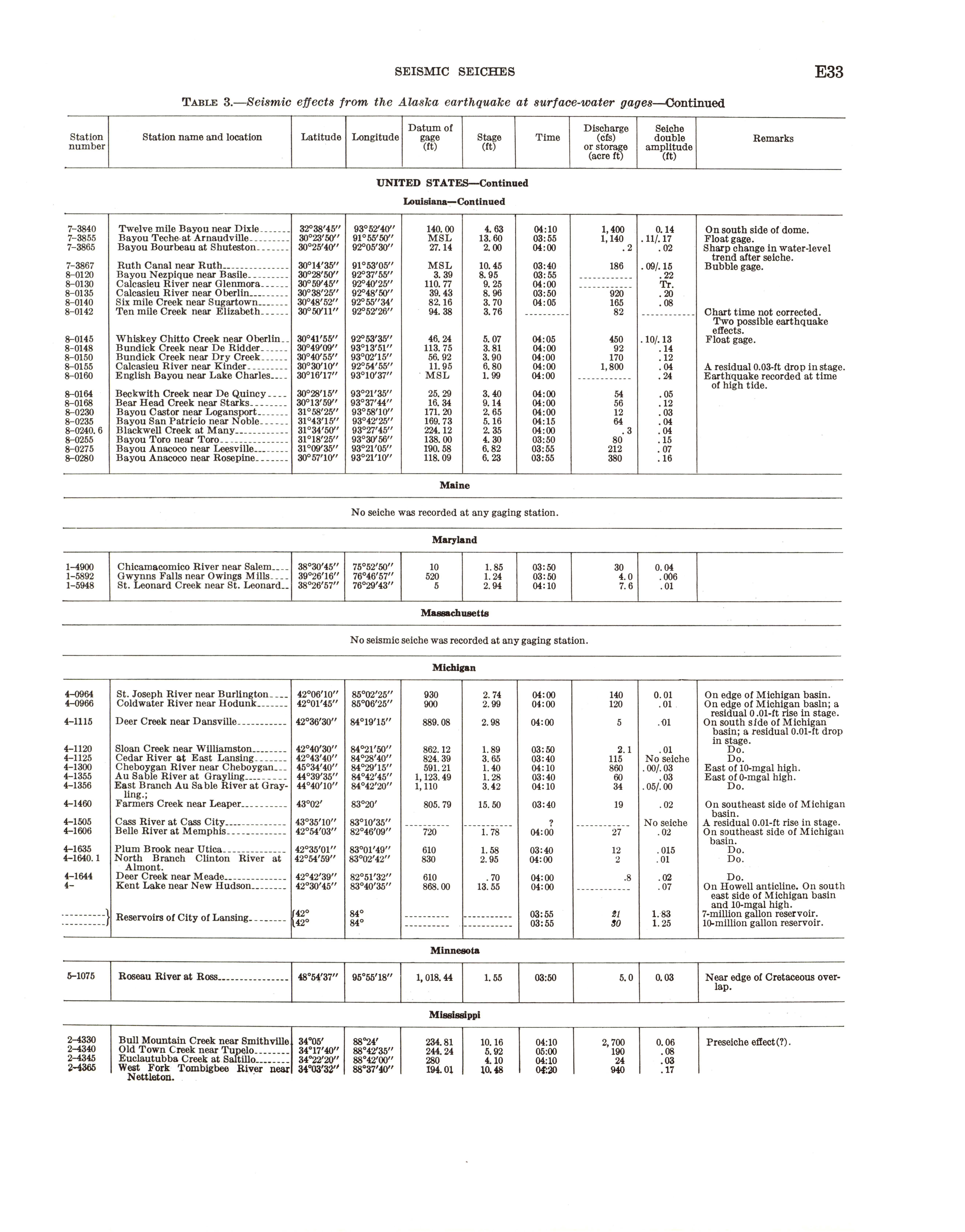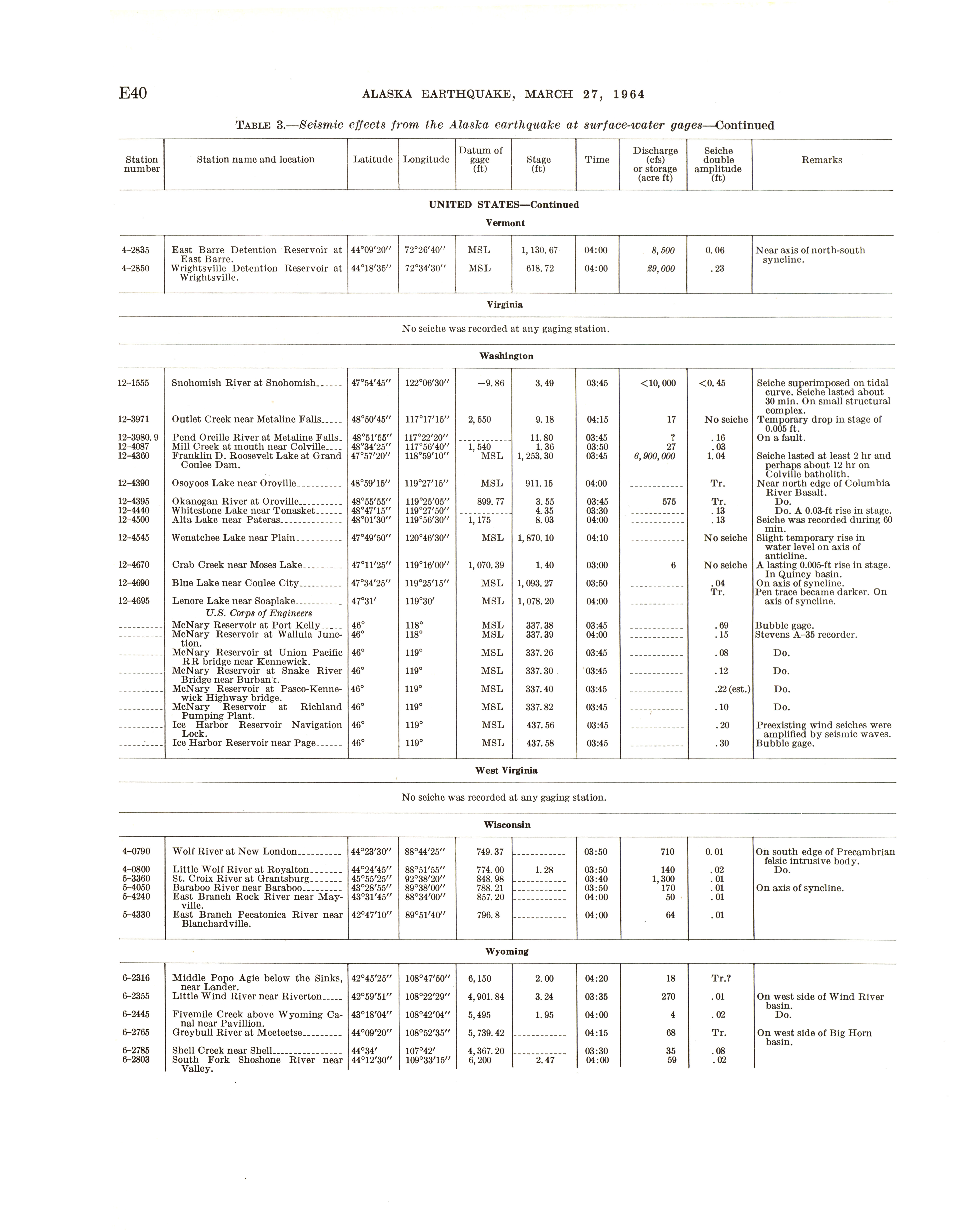 - Geological Survey professional paper 544E: effects on hydrologic regimen, seismic seiches, 1968