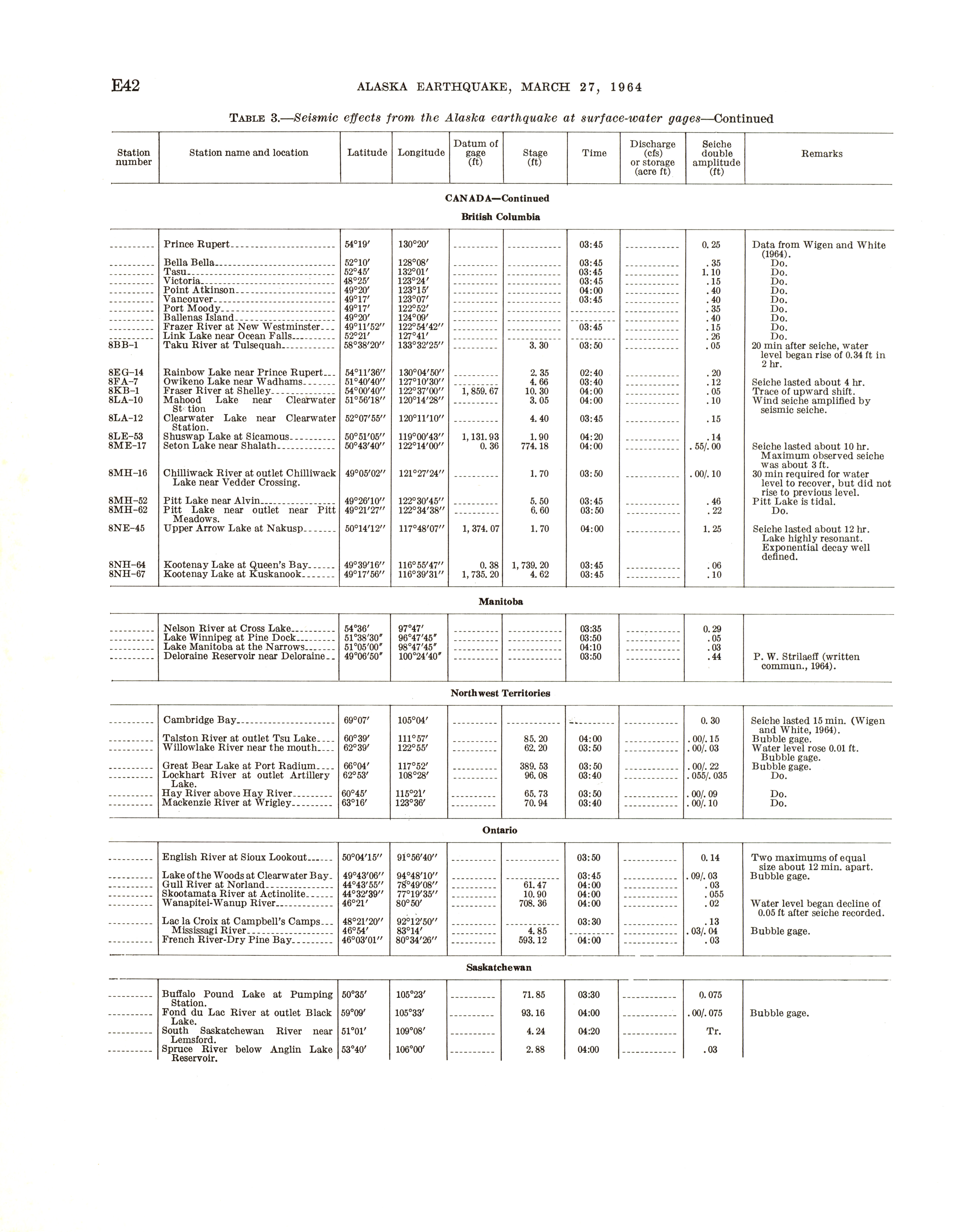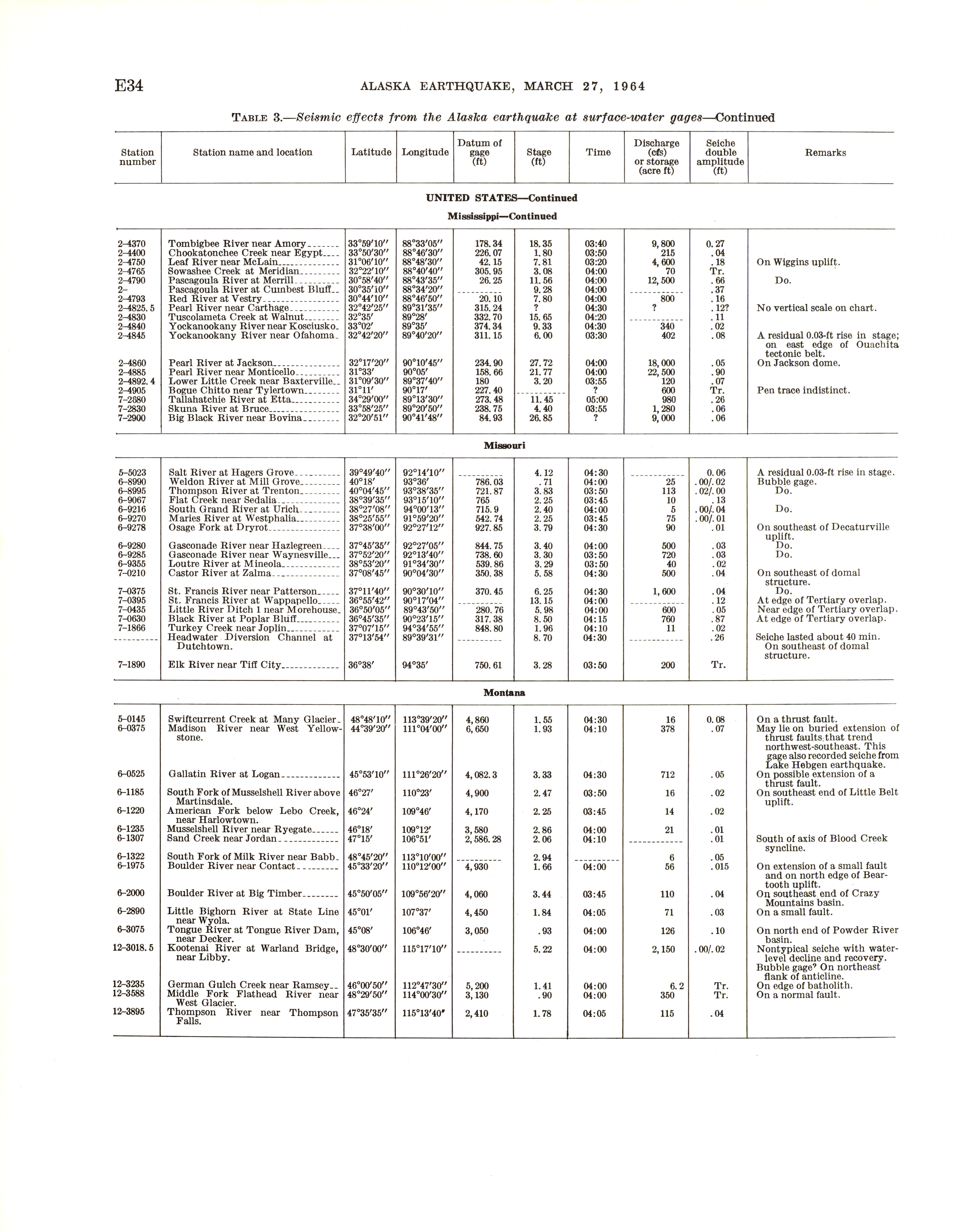 - The Alaska earthquake, March 27, 1964: effects on hydrologic regimen. Seismic seiches