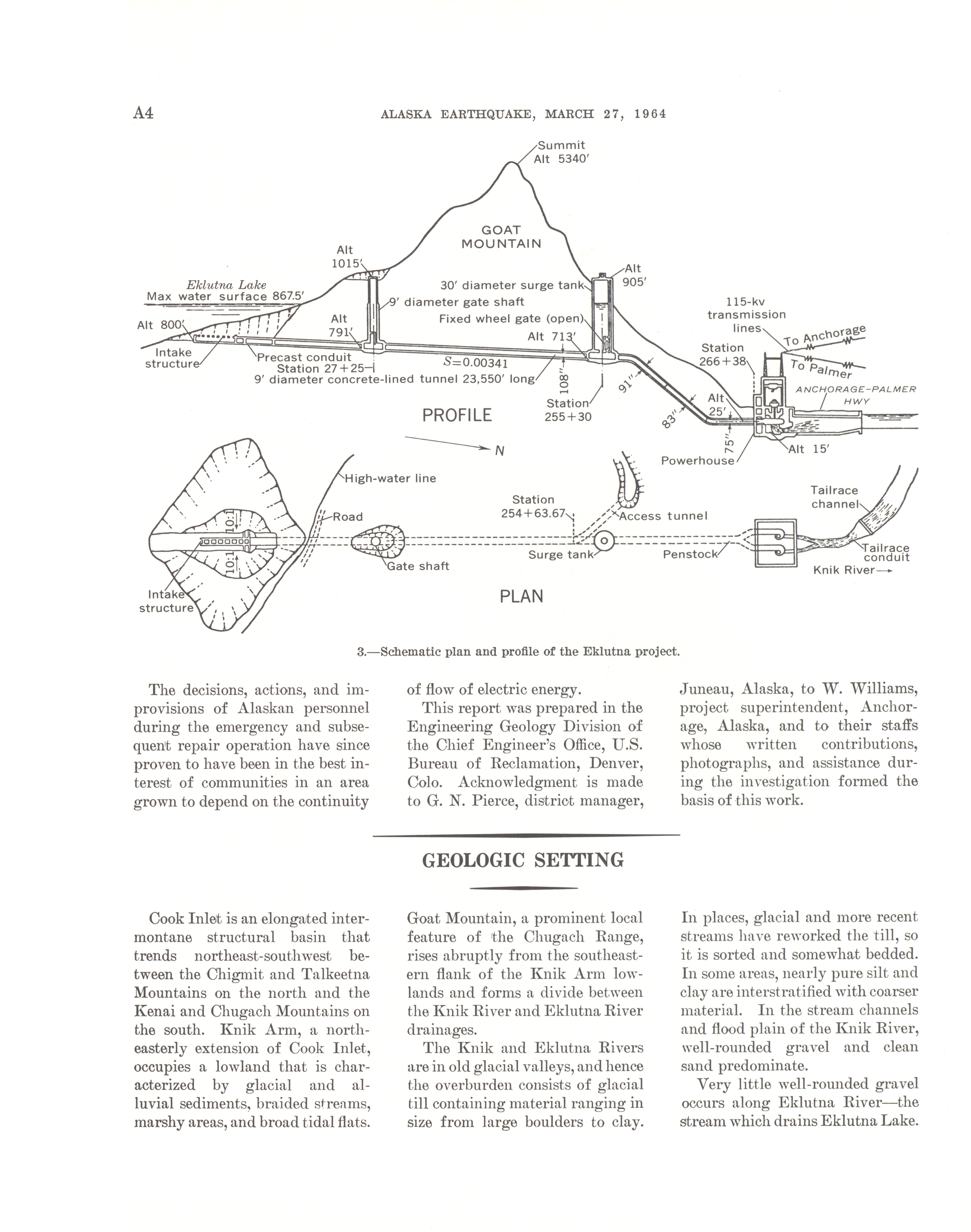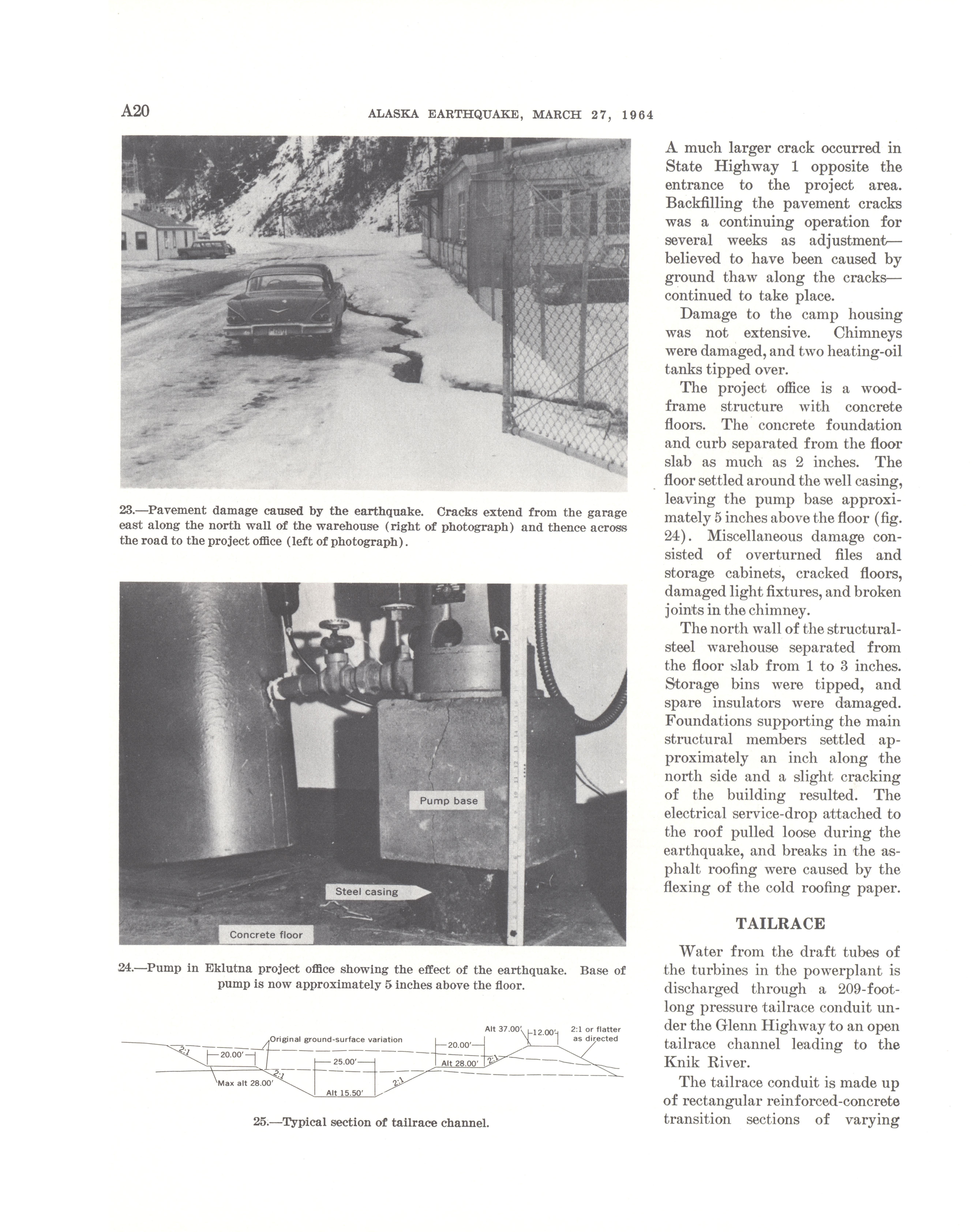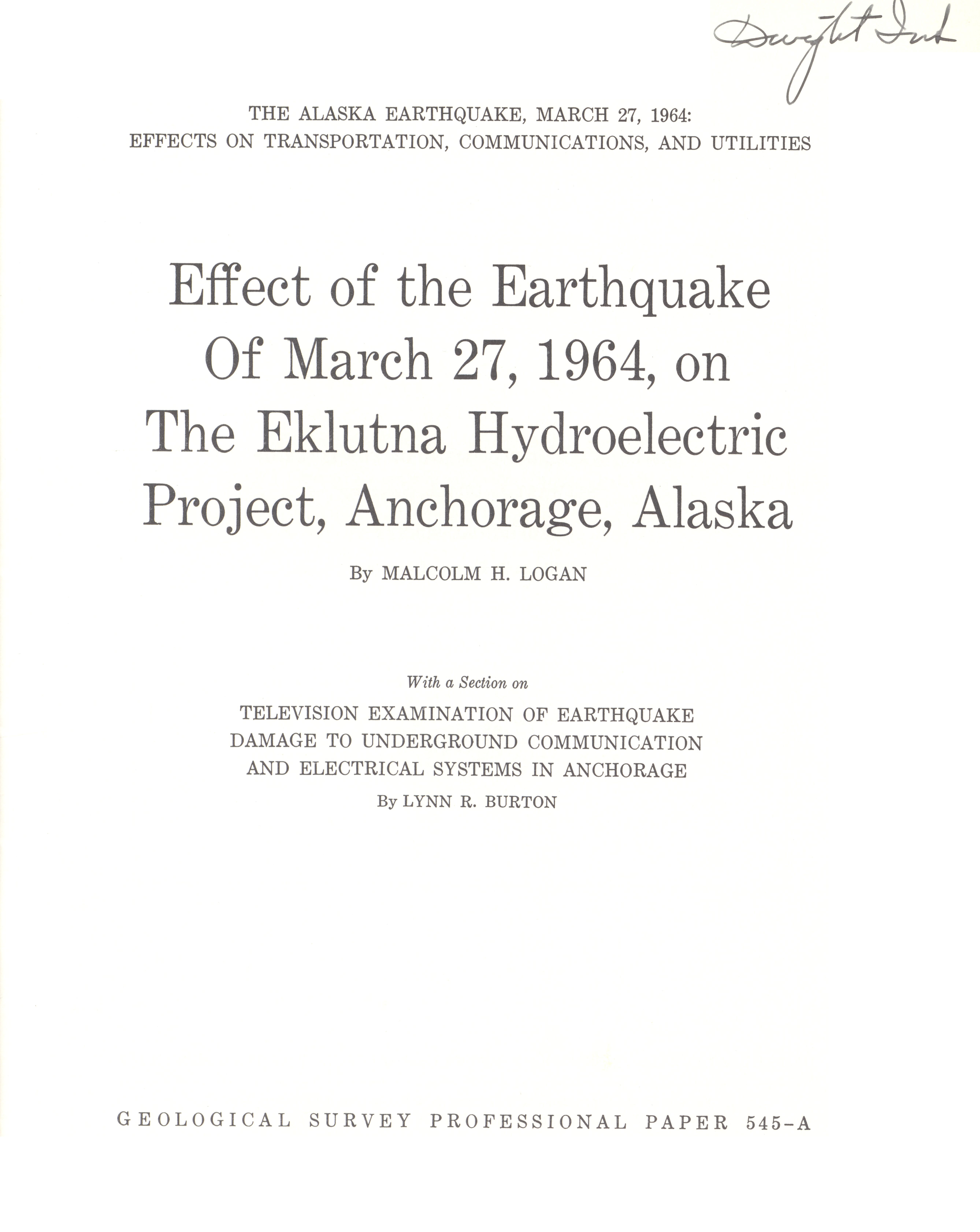 - "The Alaska earthquake, March 27, 1964: effects on transportation and utilities. Eklutna power project", Dwight Ink Collection, Iowa State University Library Digital Collections