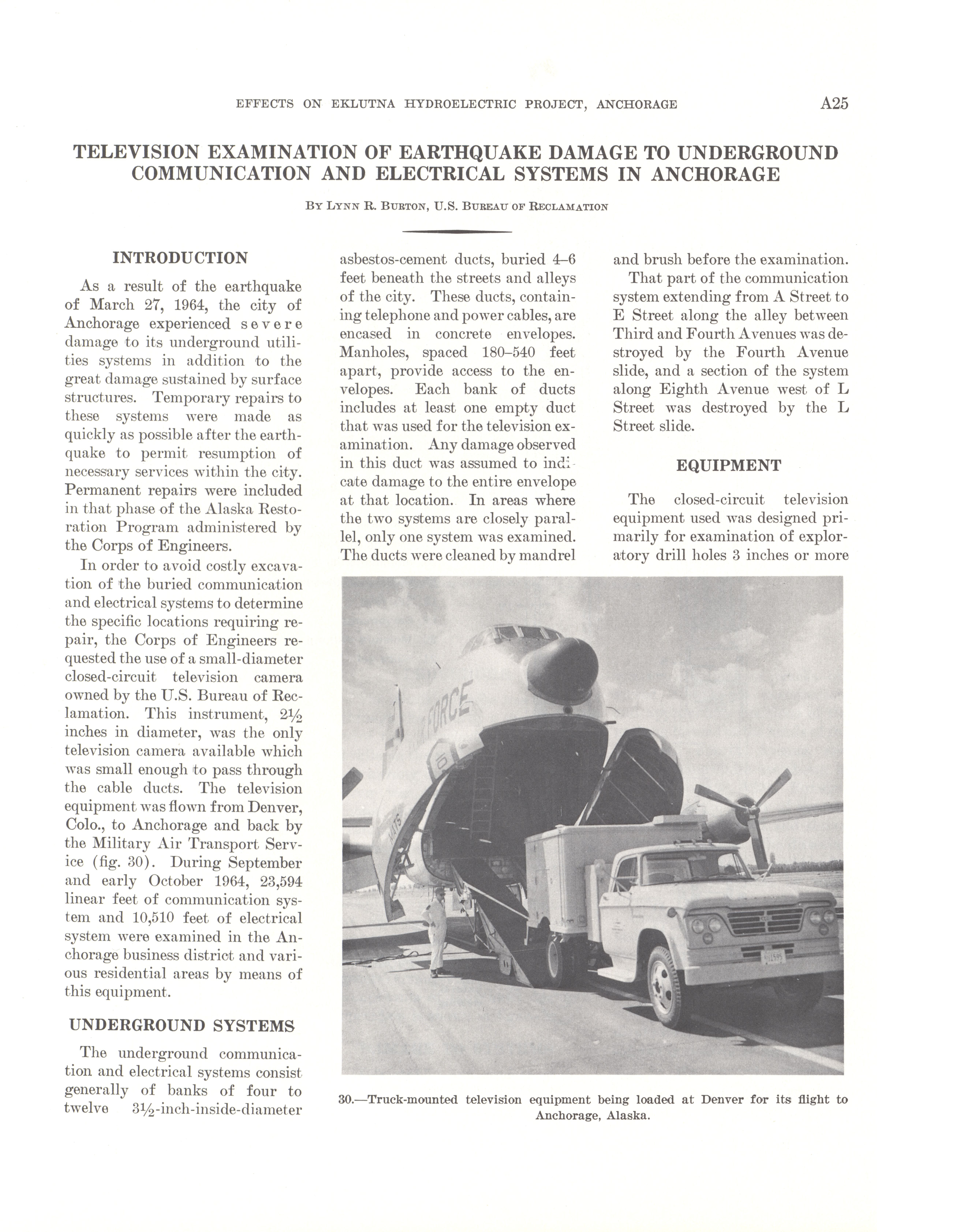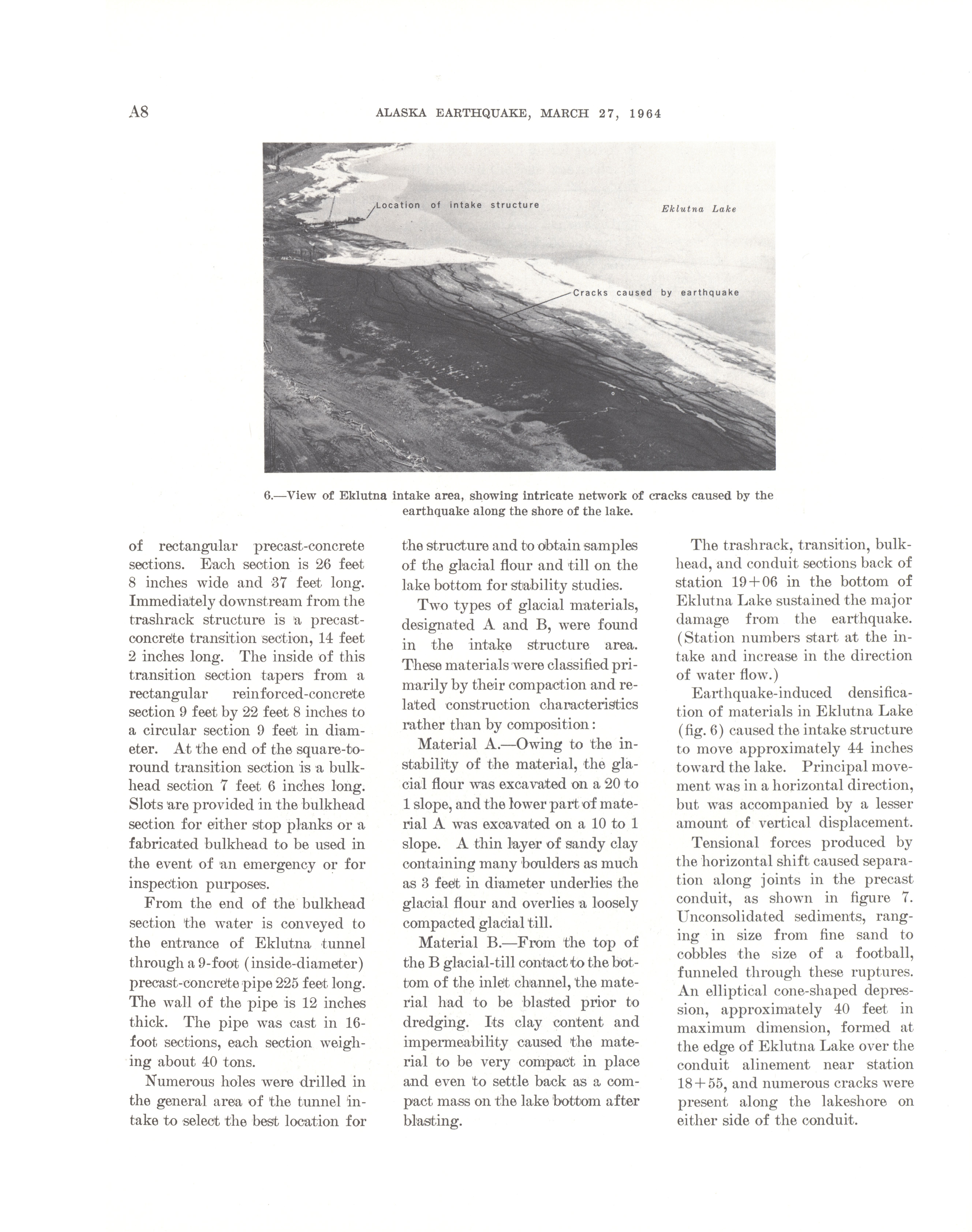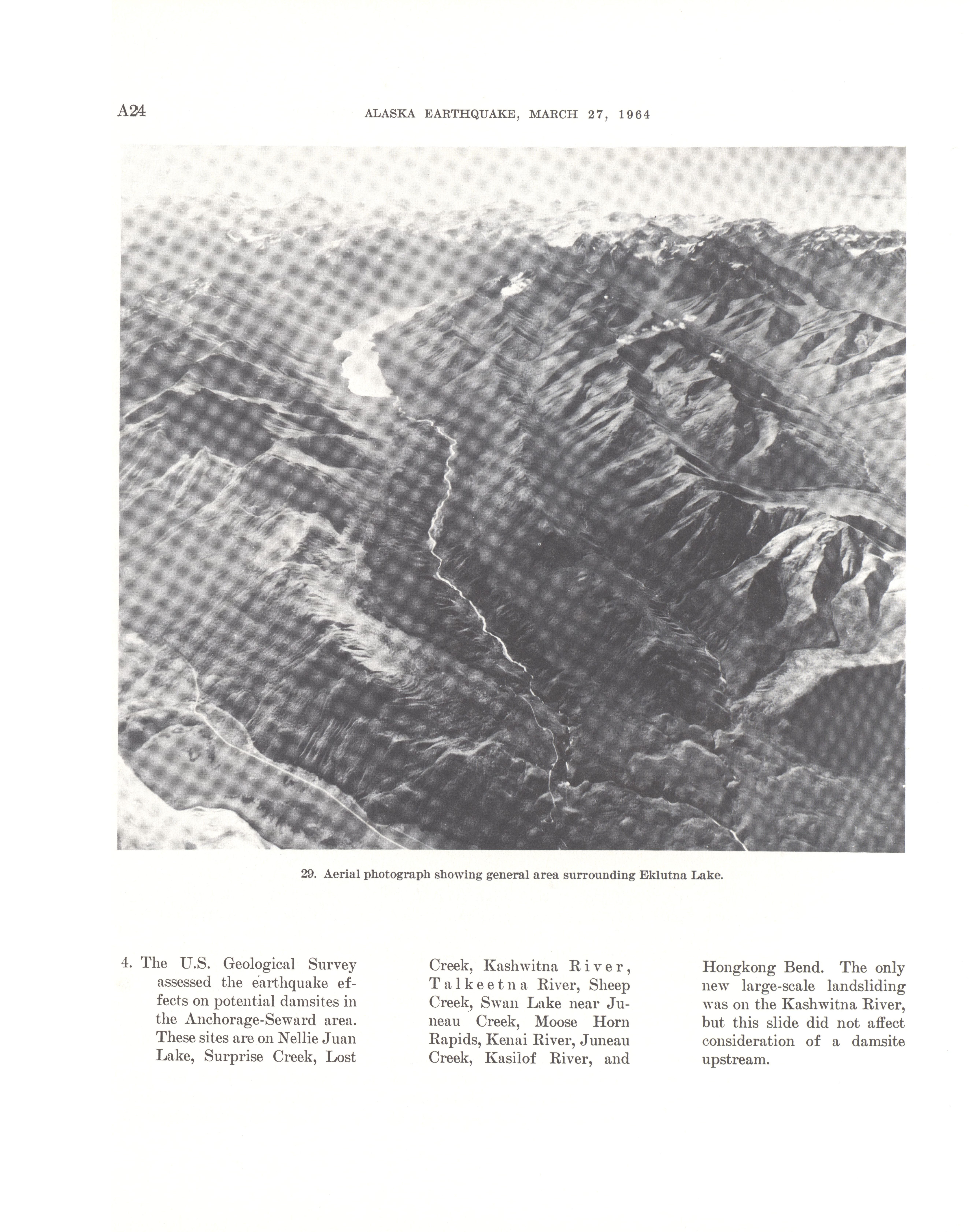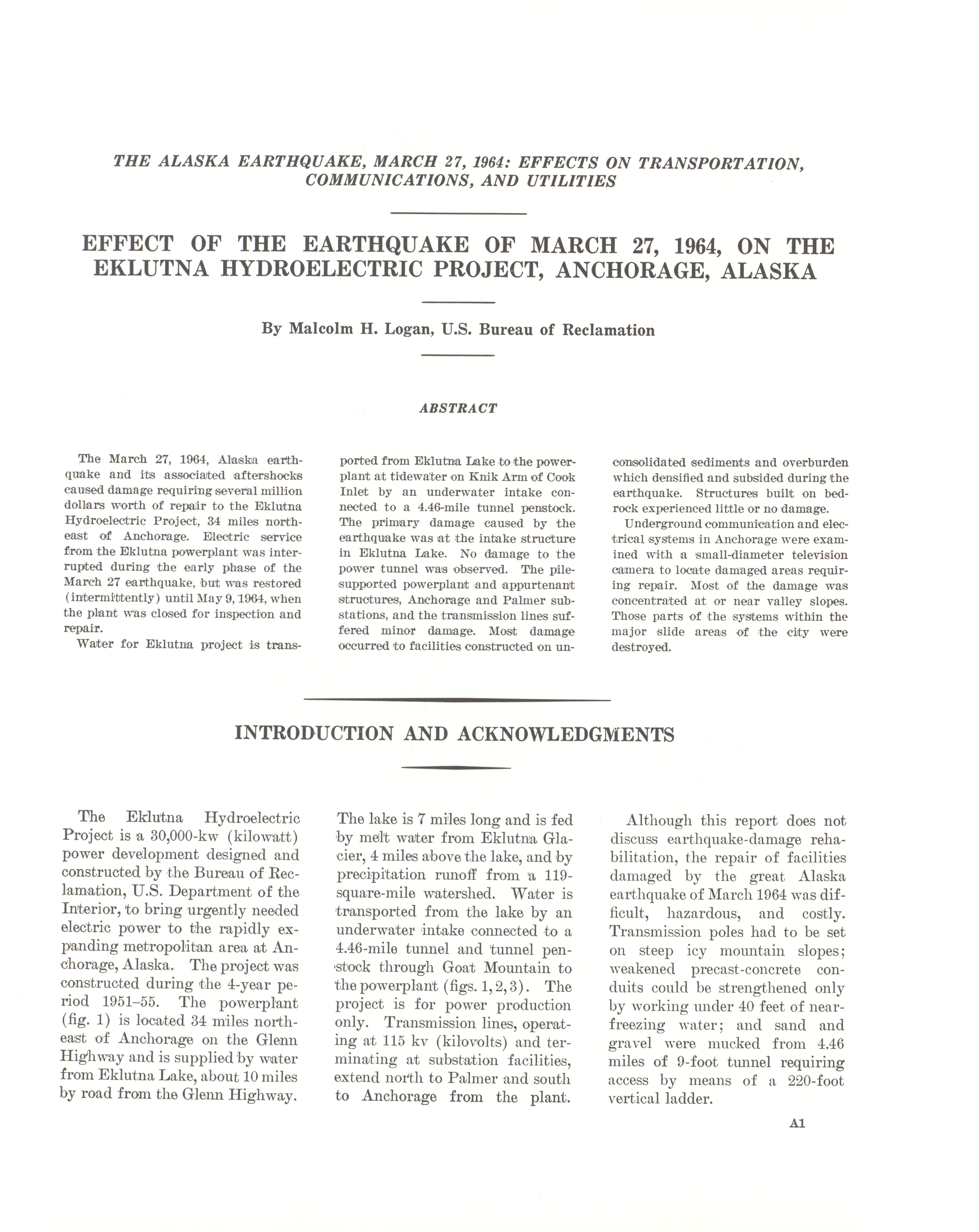 - "The Alaska earthquake, March 27, 1964: effects on transportation and utilities. Eklutna power project", Dwight Ink Collection, Iowa State University Library Digital Collections