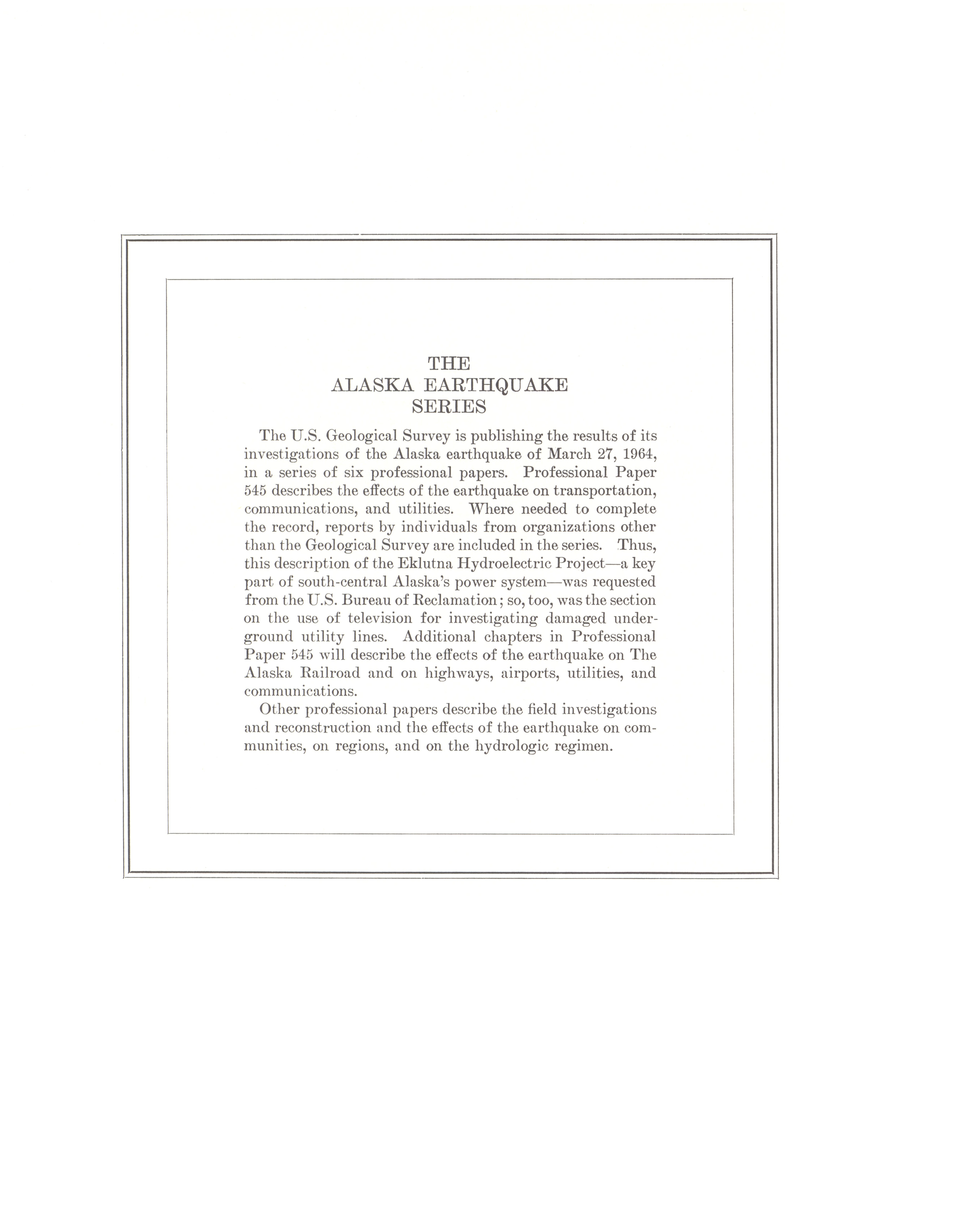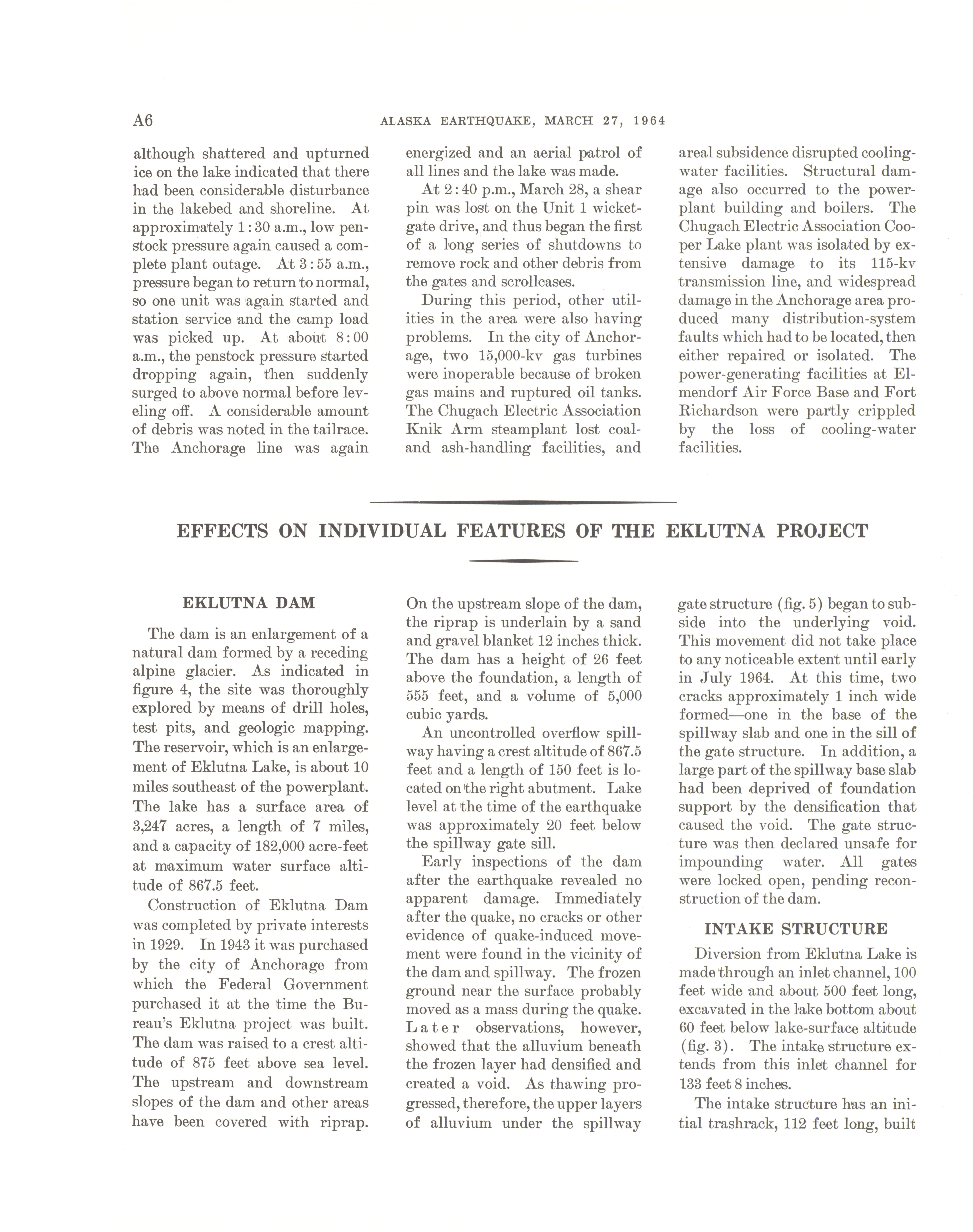 - The Alaska earthquake, March 27, 1964: effects on transportation and utilities. Eklutna power project