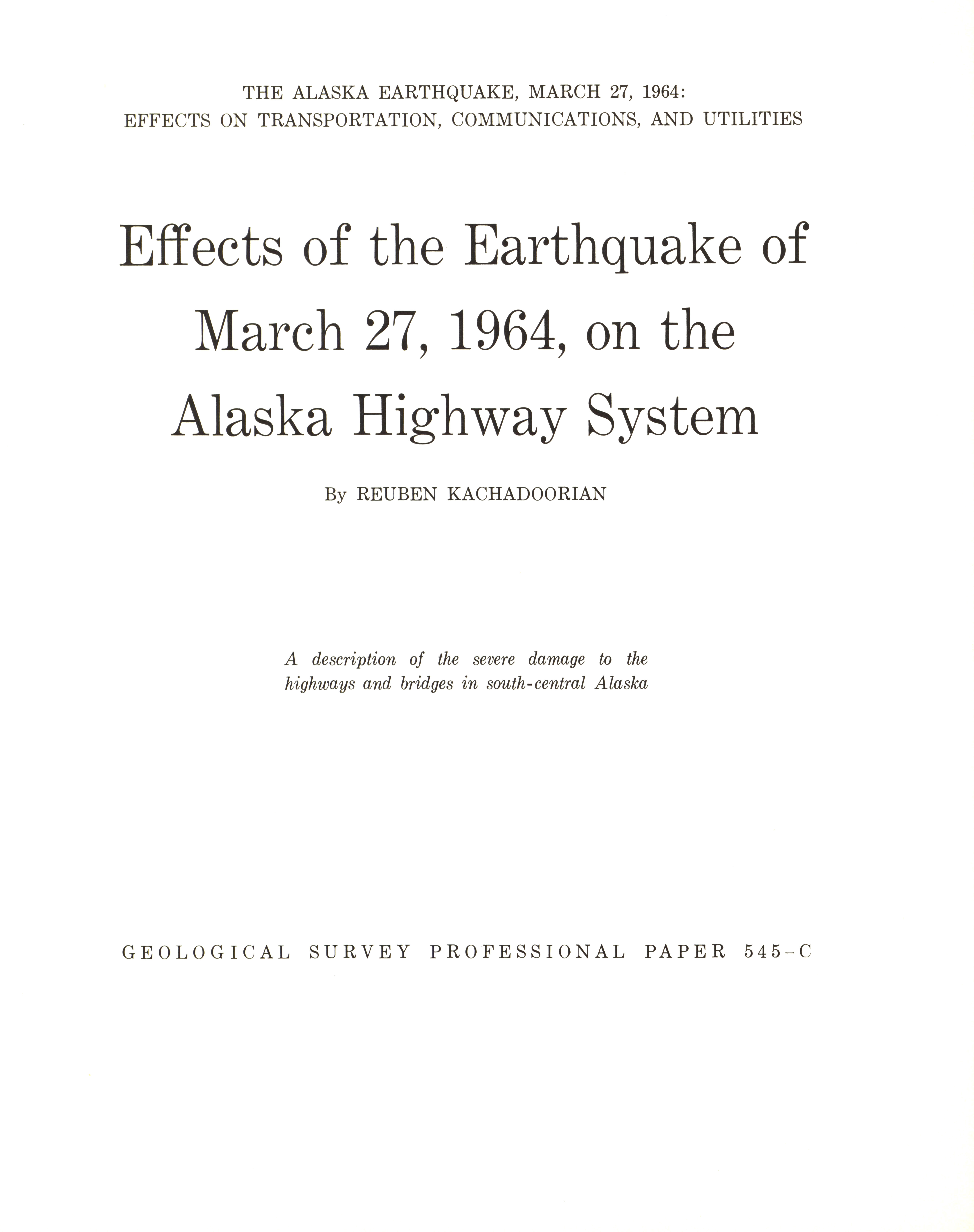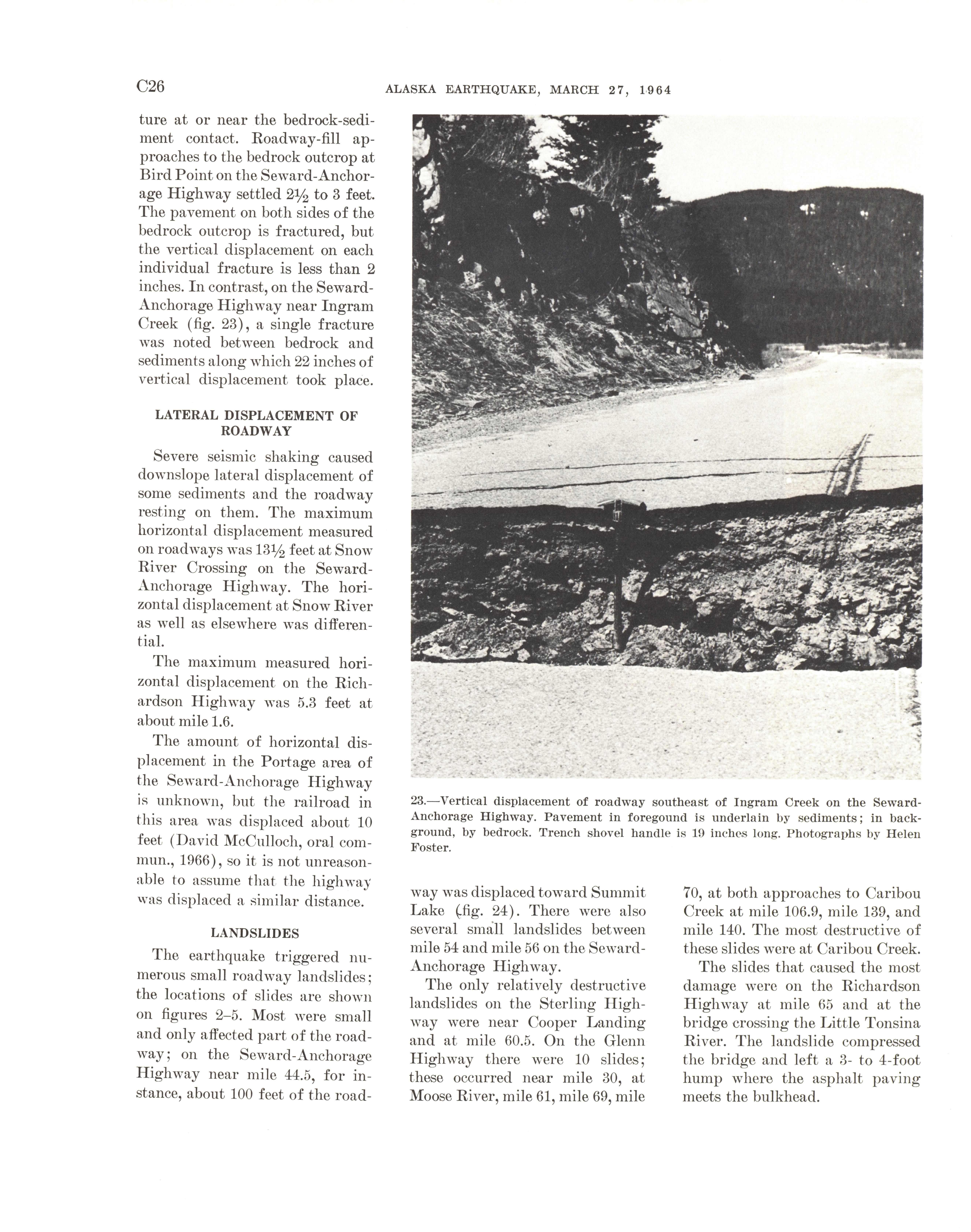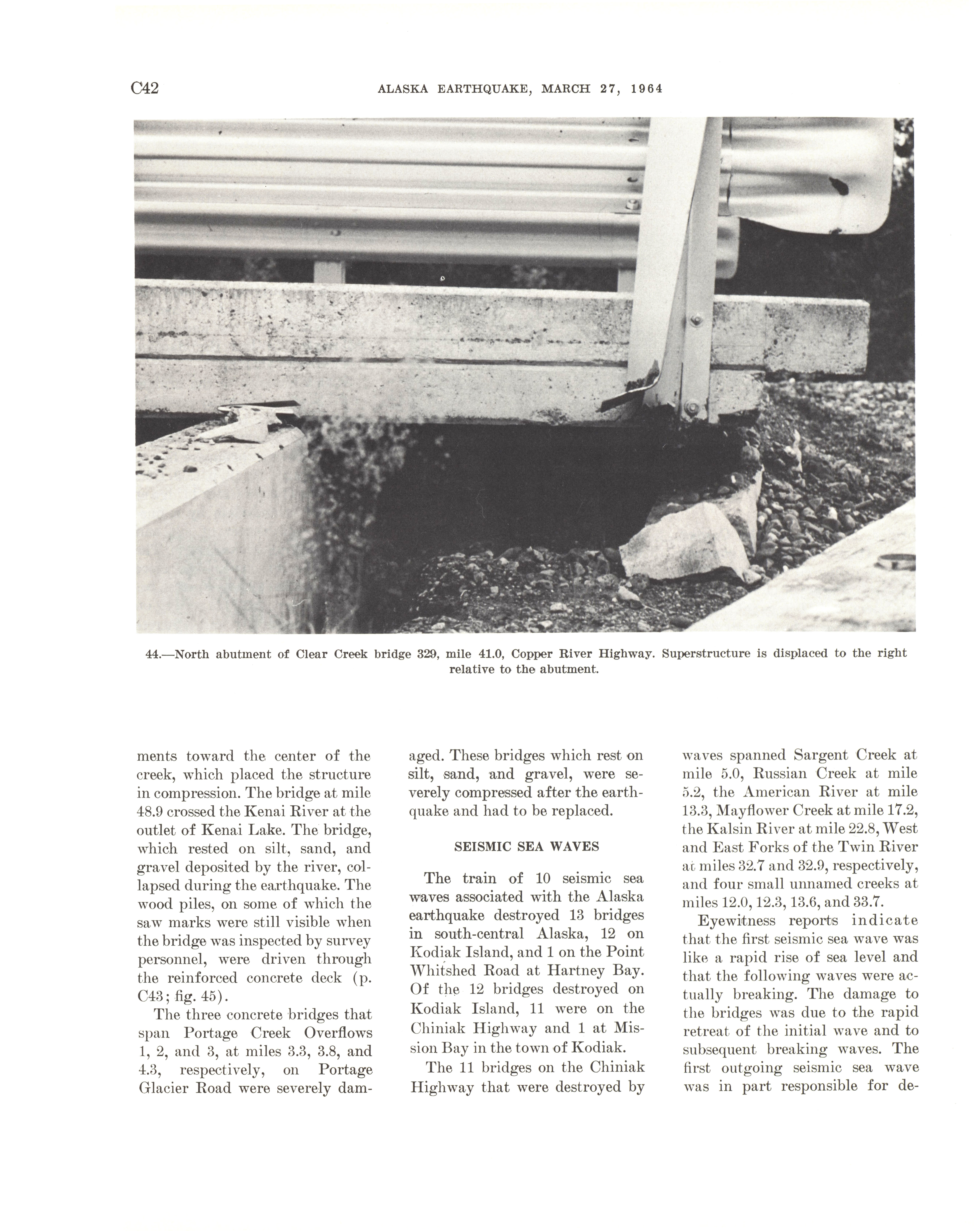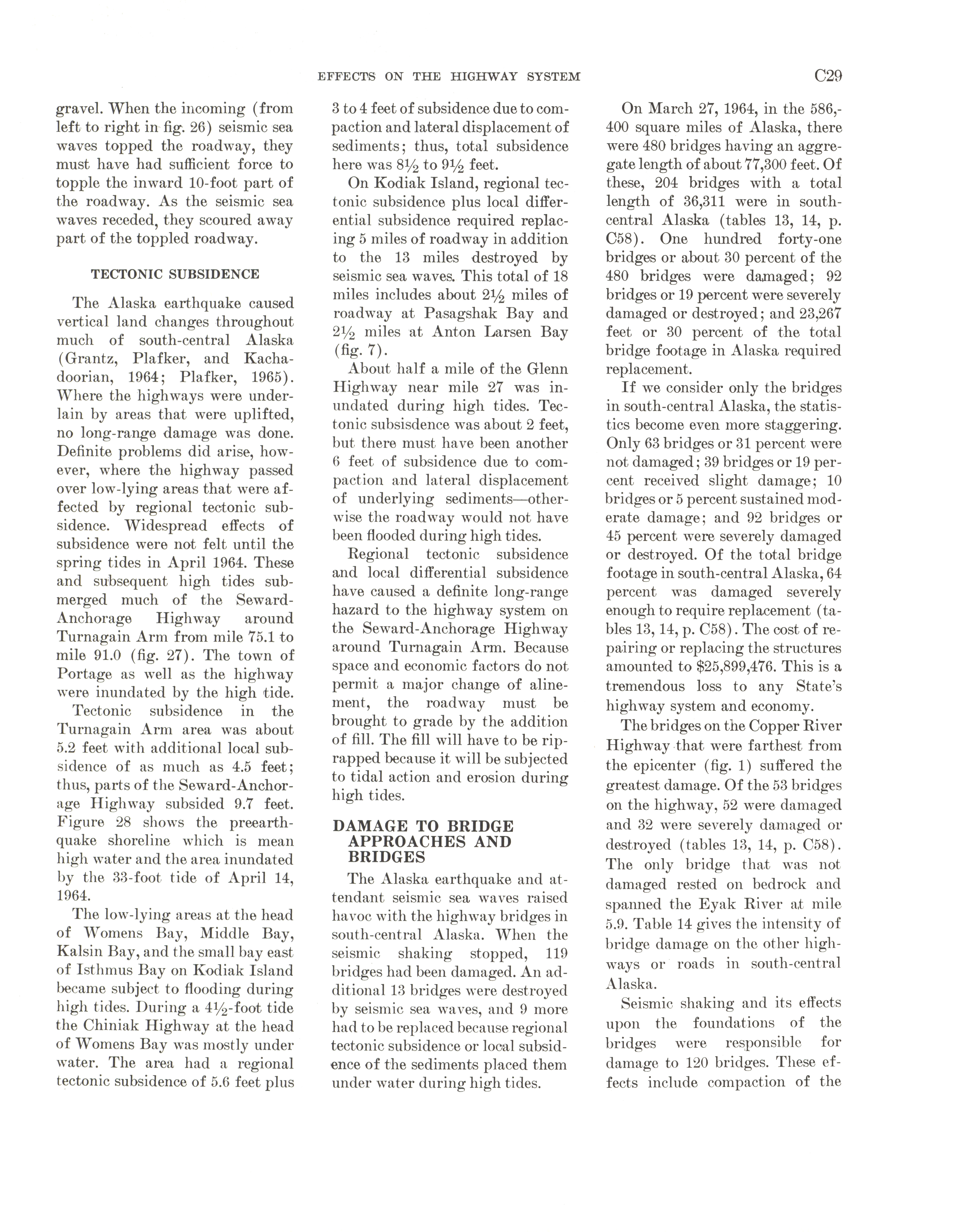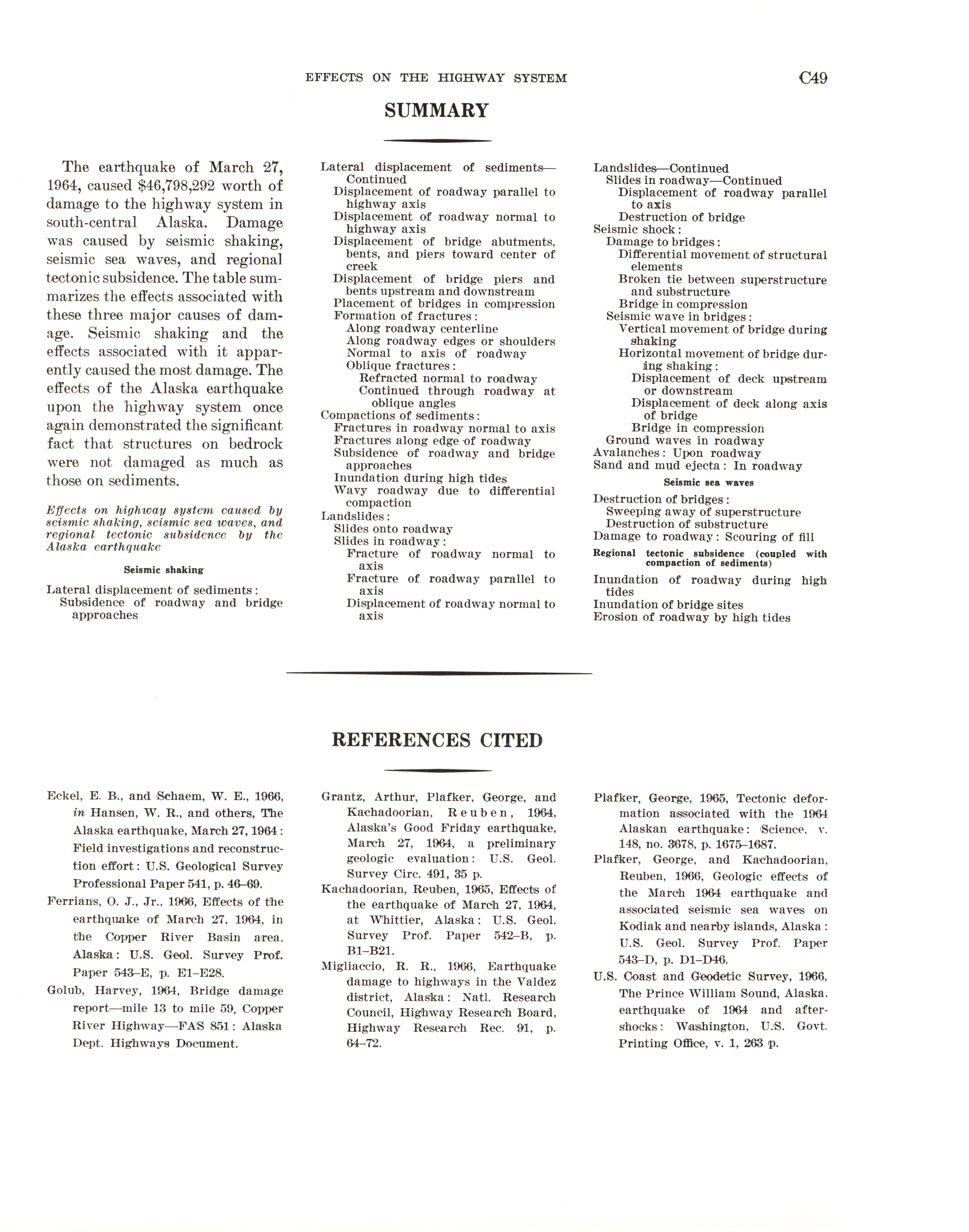 - "The Alaska earthquake, March 27, 1964: effects on transportation and utilities. The highway system", Dwight Ink Collection, Iowa State University Library Digital Collections