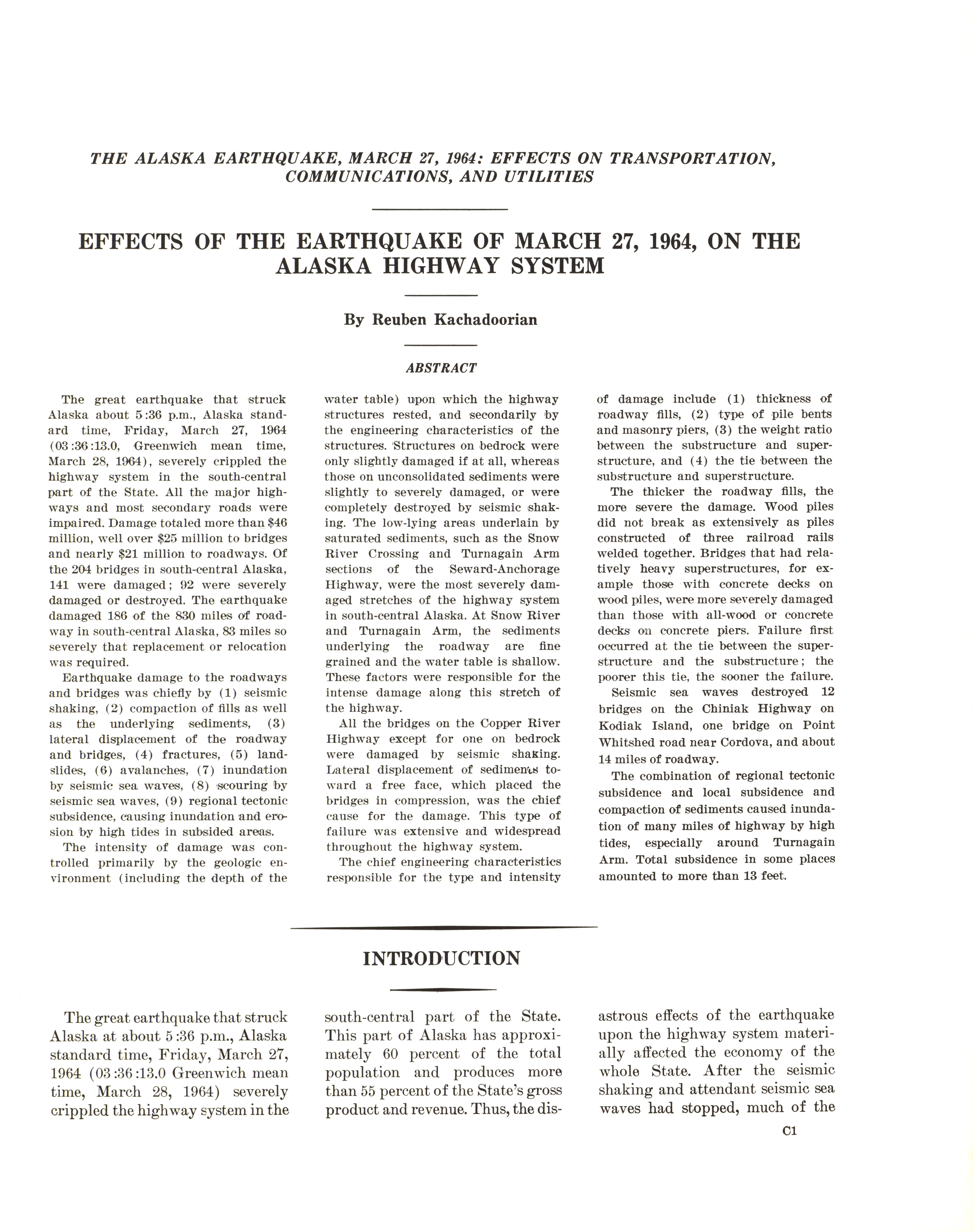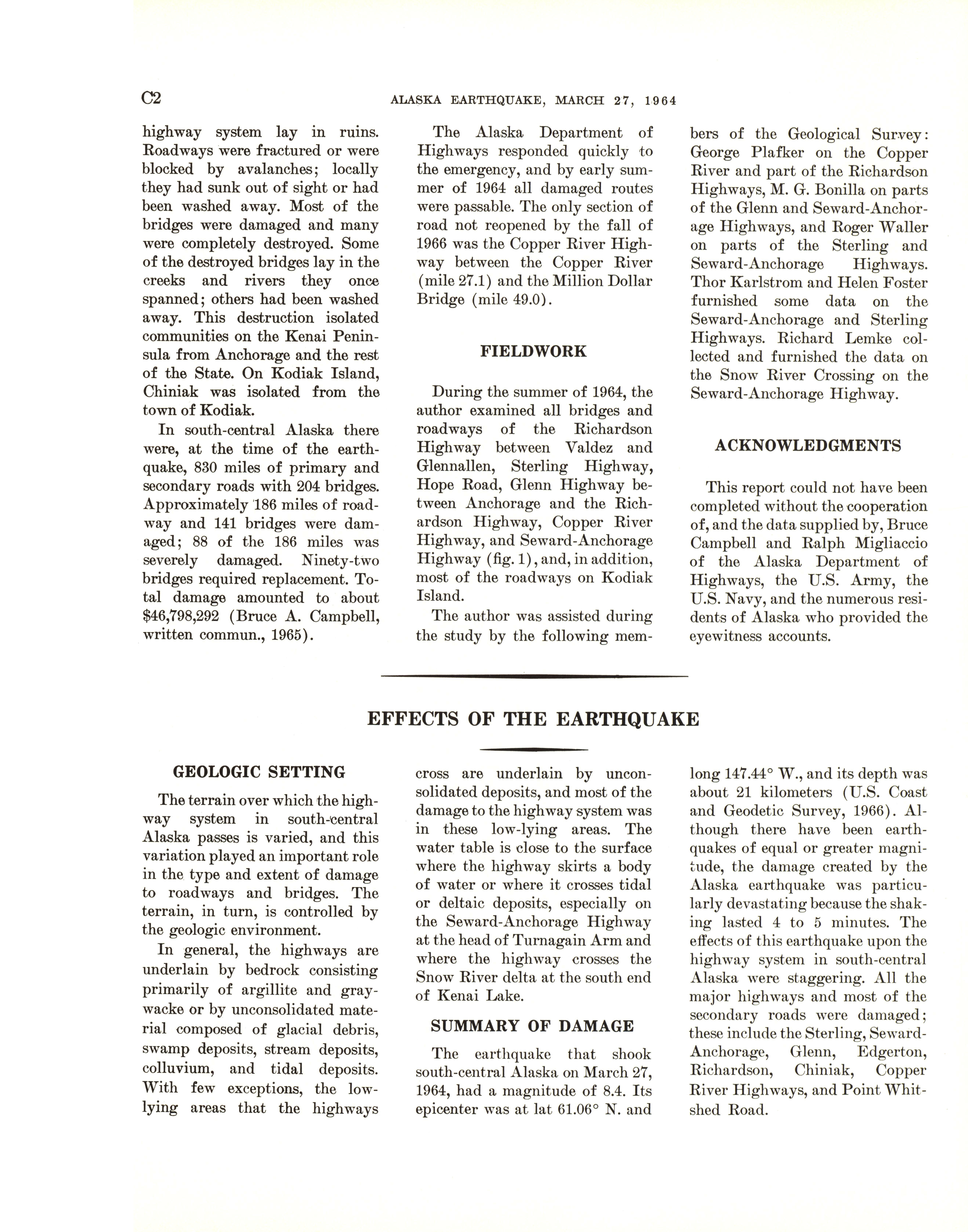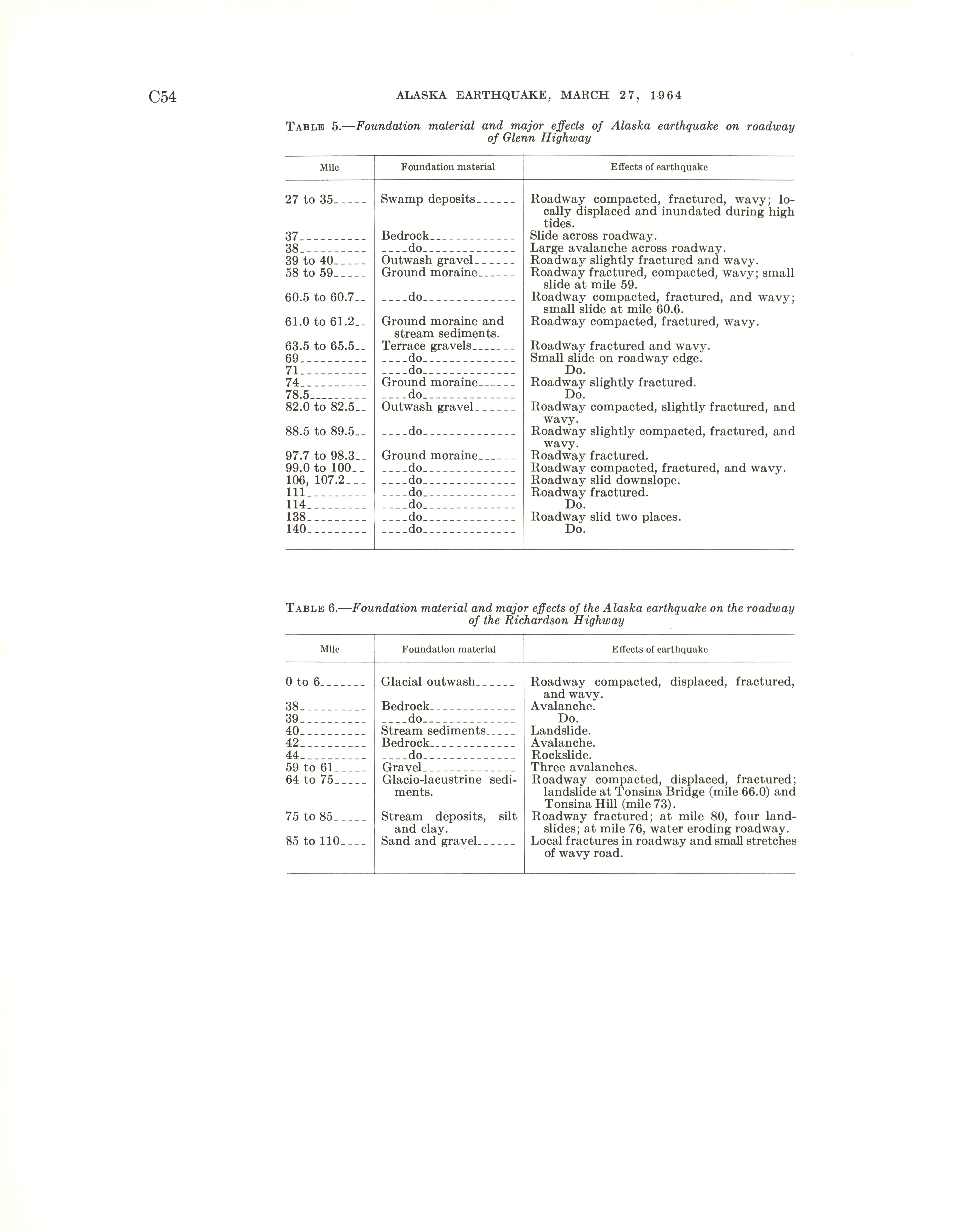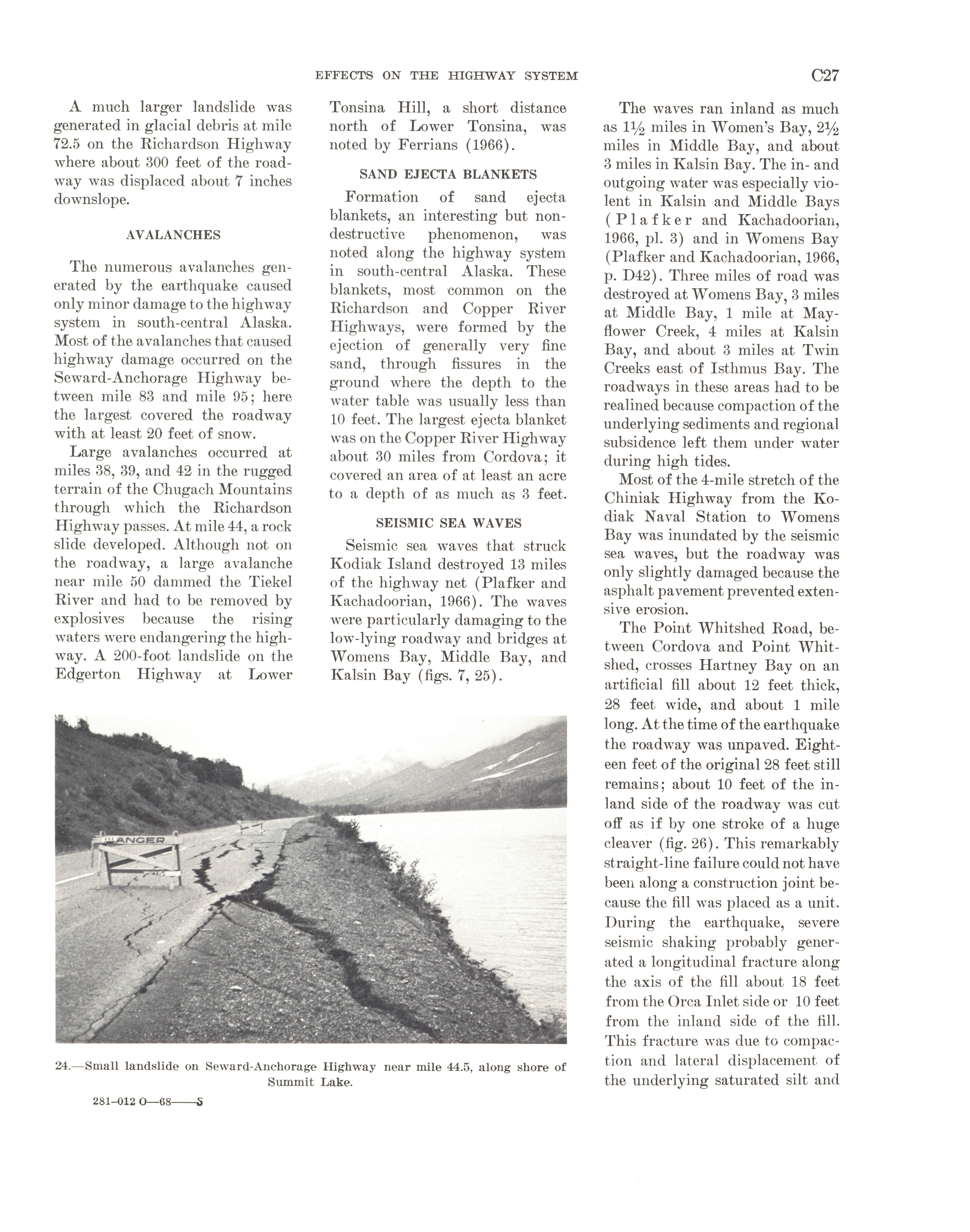 - "The Alaska earthquake, March 27, 1964: effects on transportation and utilities. The highway system", Dwight Ink Collection, Iowa State University Library Digital Collections