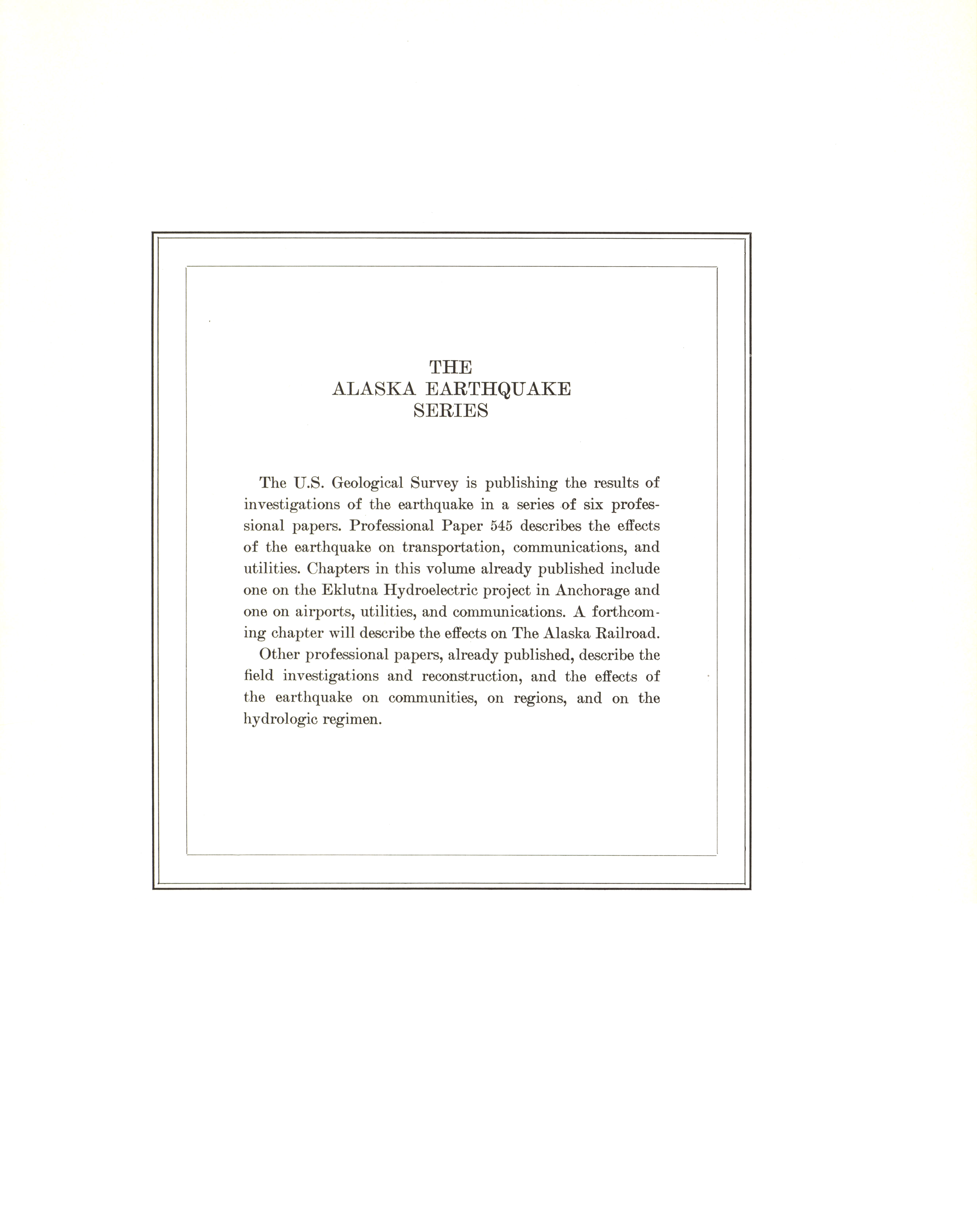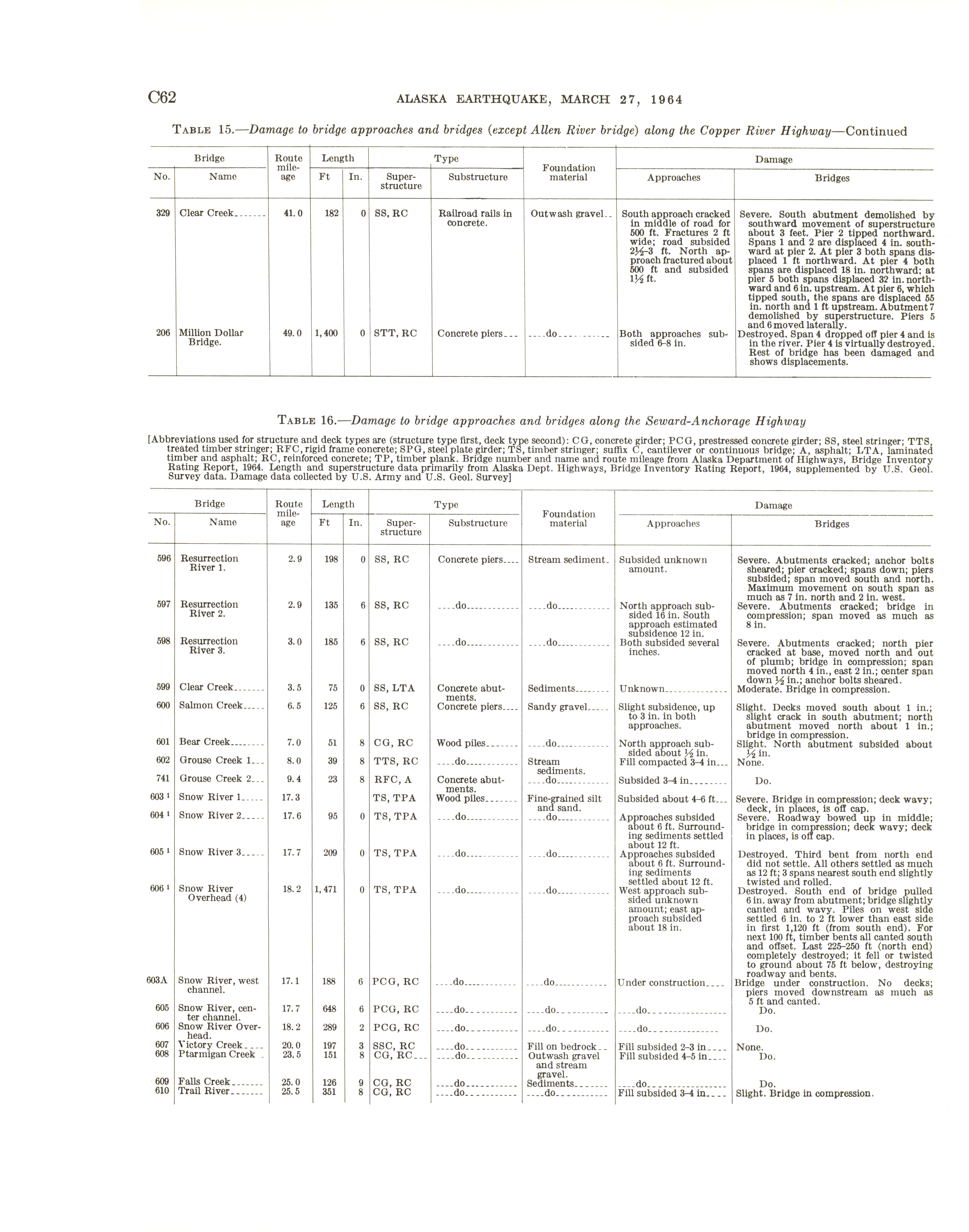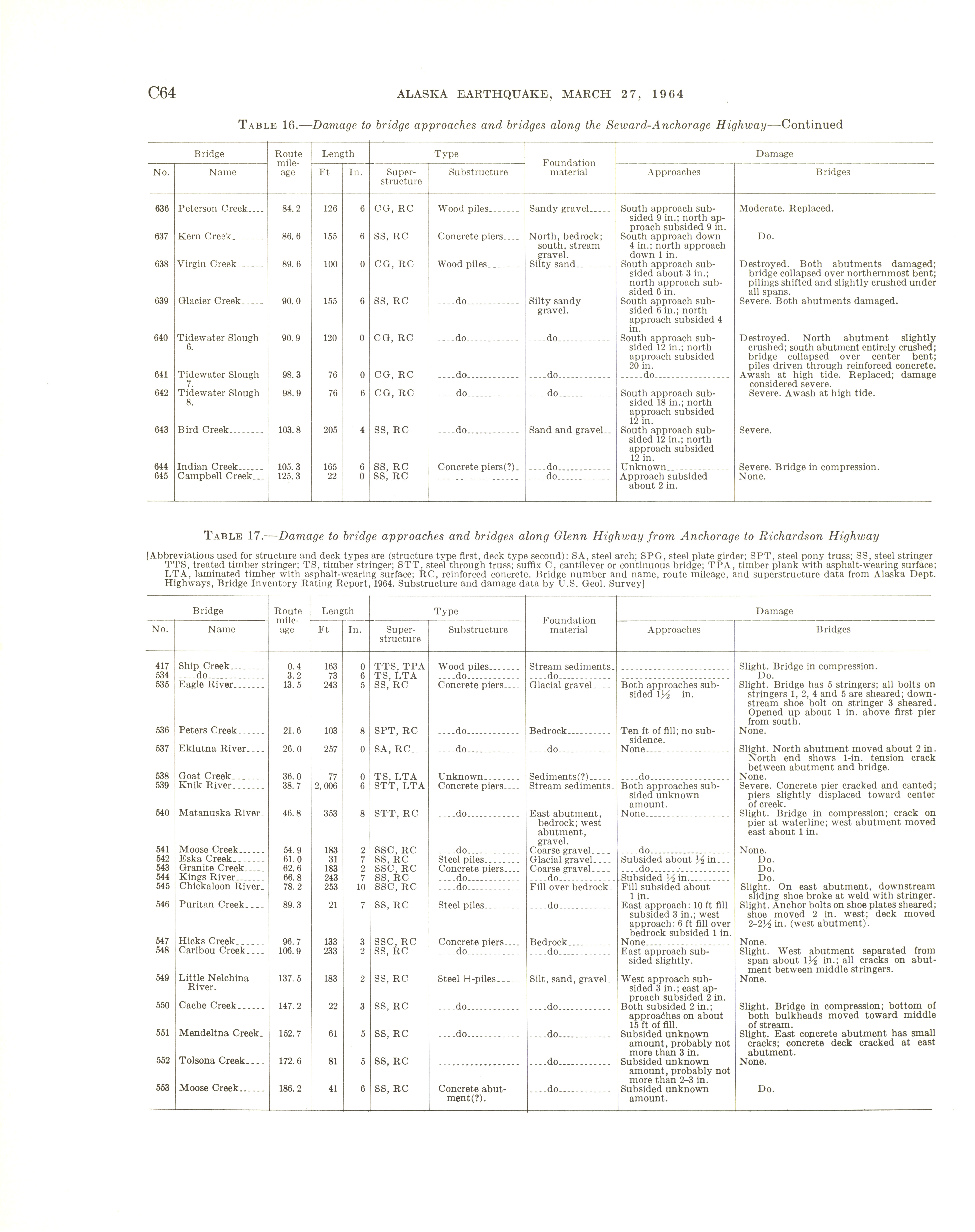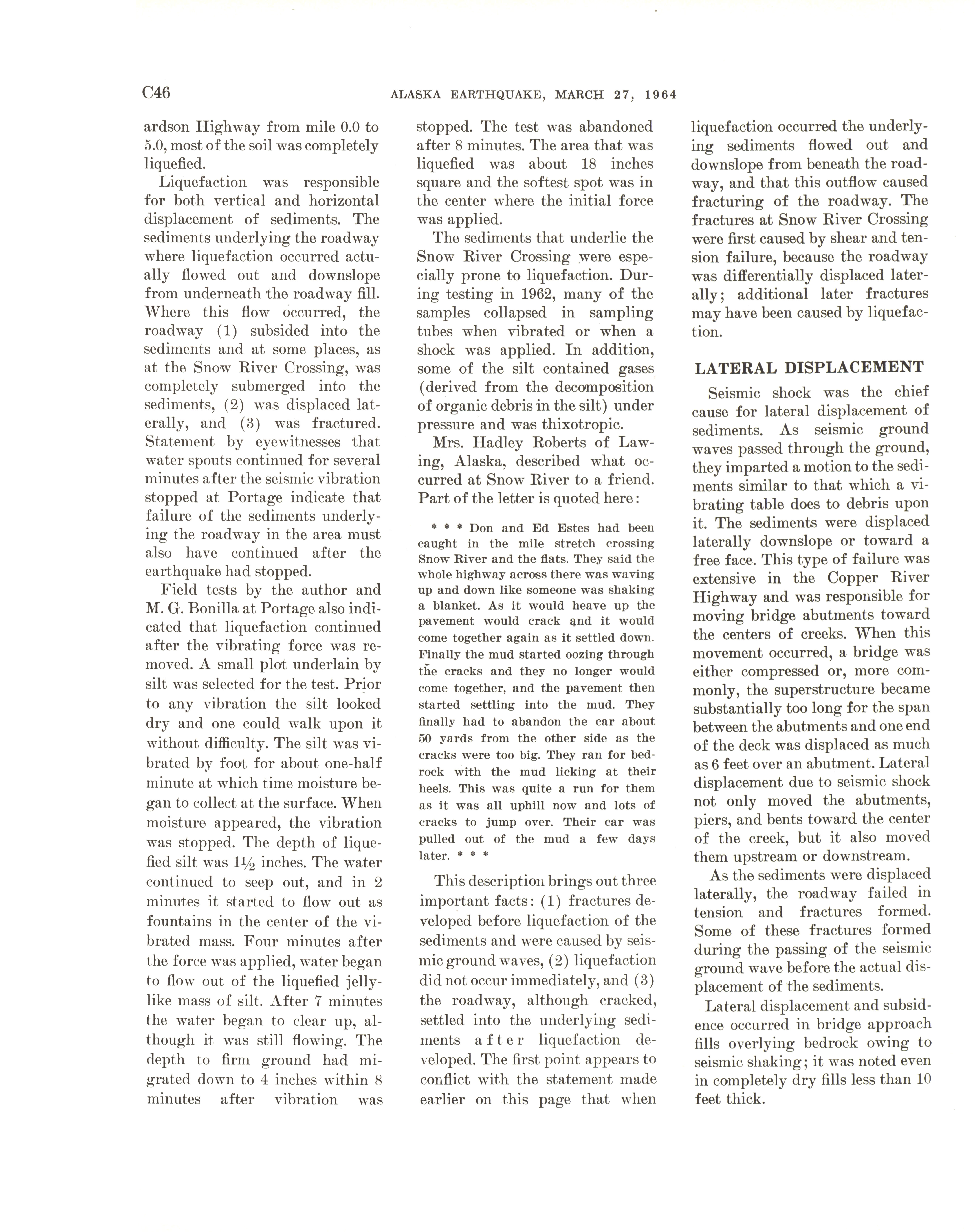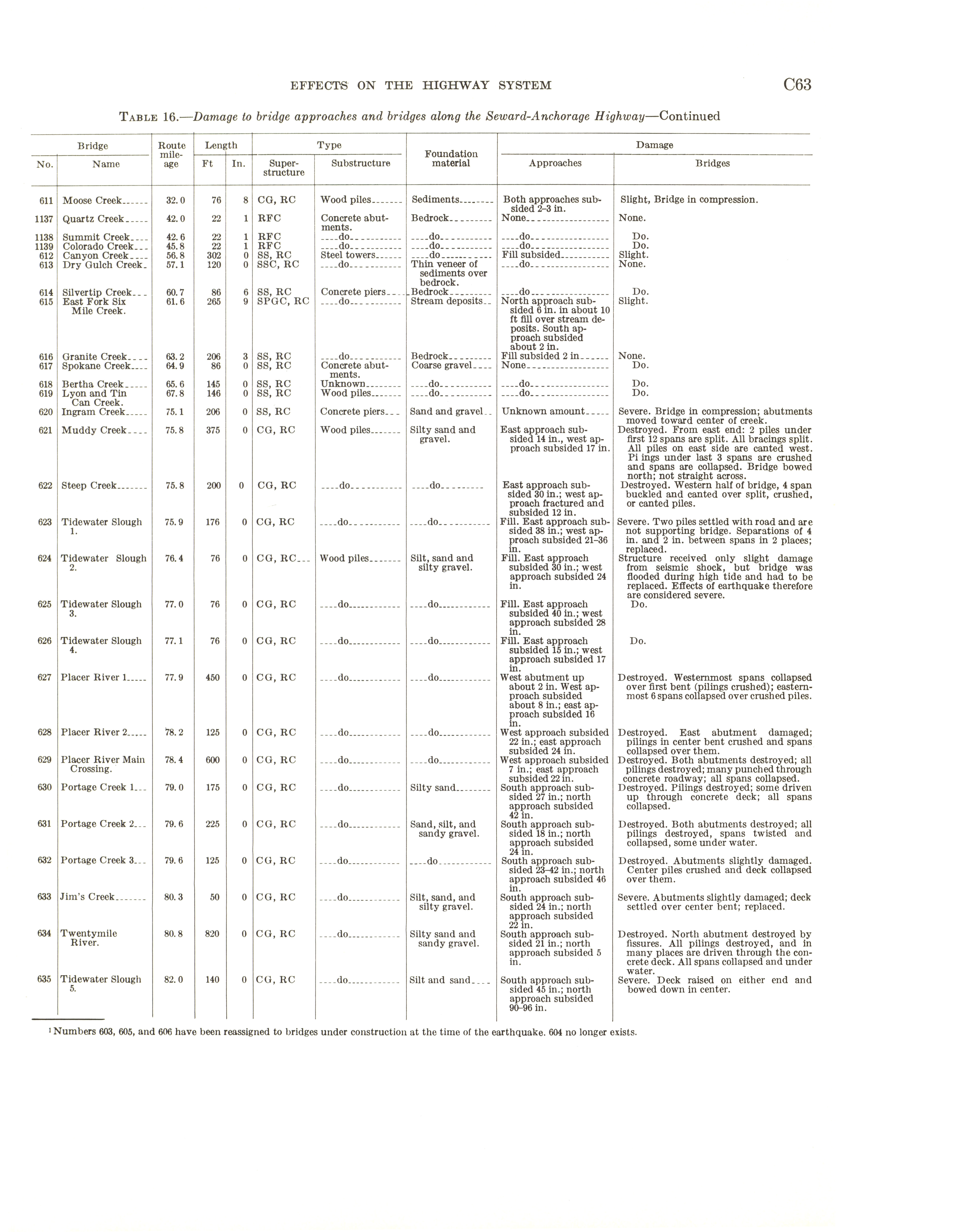- "The Alaska earthquake, March 27, 1964: effects on transportation and utilities. The highway system", Dwight Ink Collection, Iowa State University Library Digital Collections