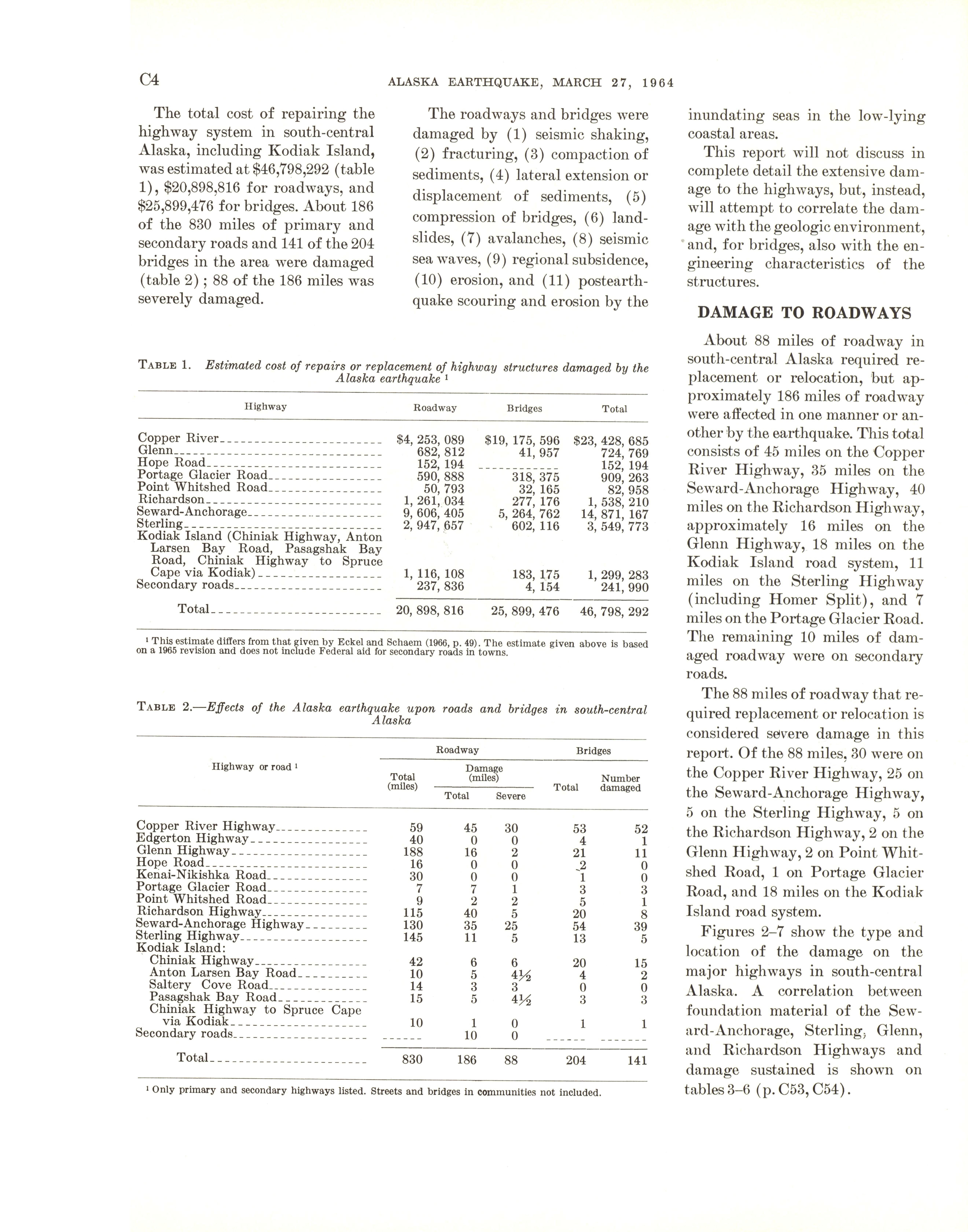 - The Alaska earthquake, March 27, 1964: effects on transportation and utilities. The highway system