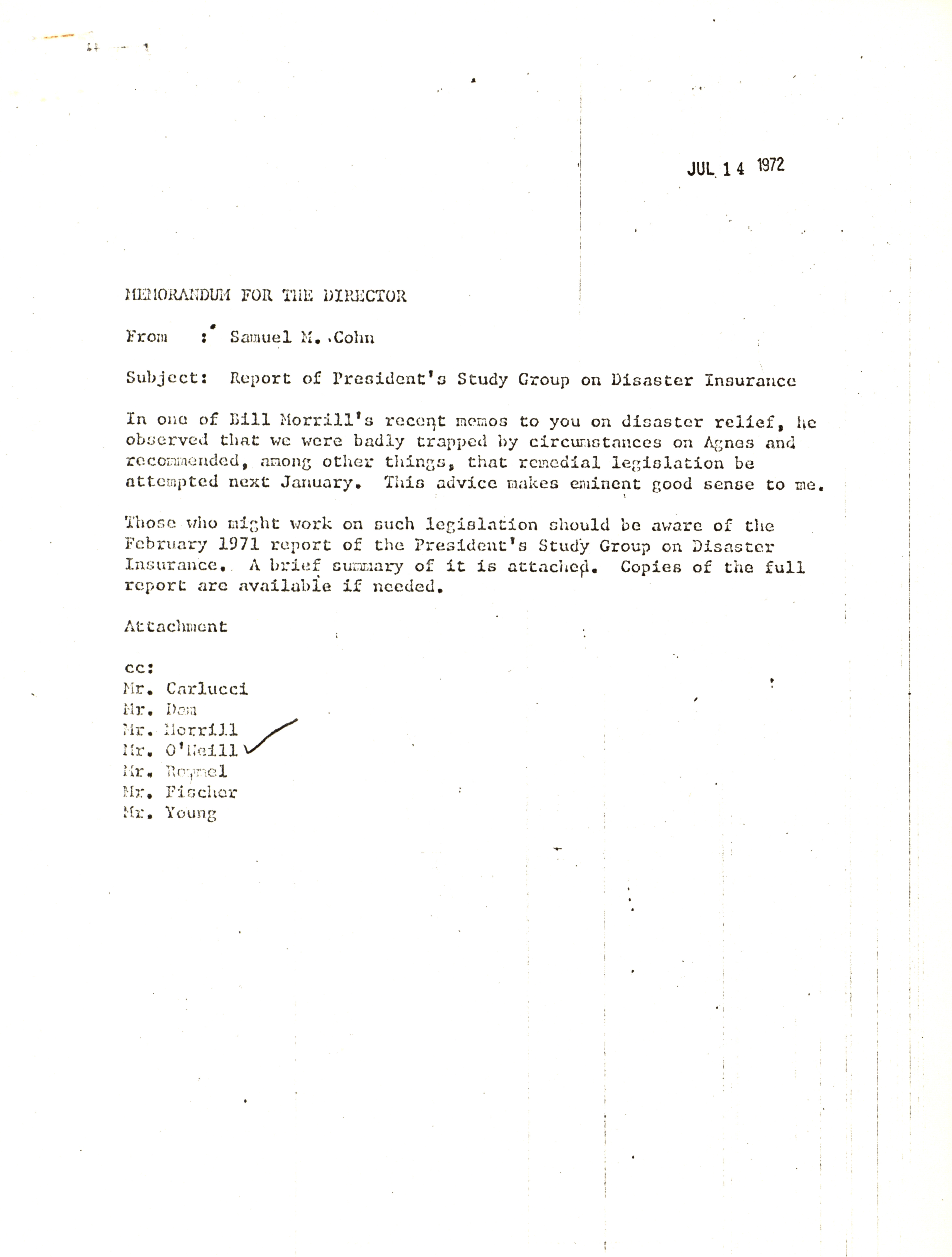 - Samuel M. Cohn memorandum for the Director, July 17, 1972