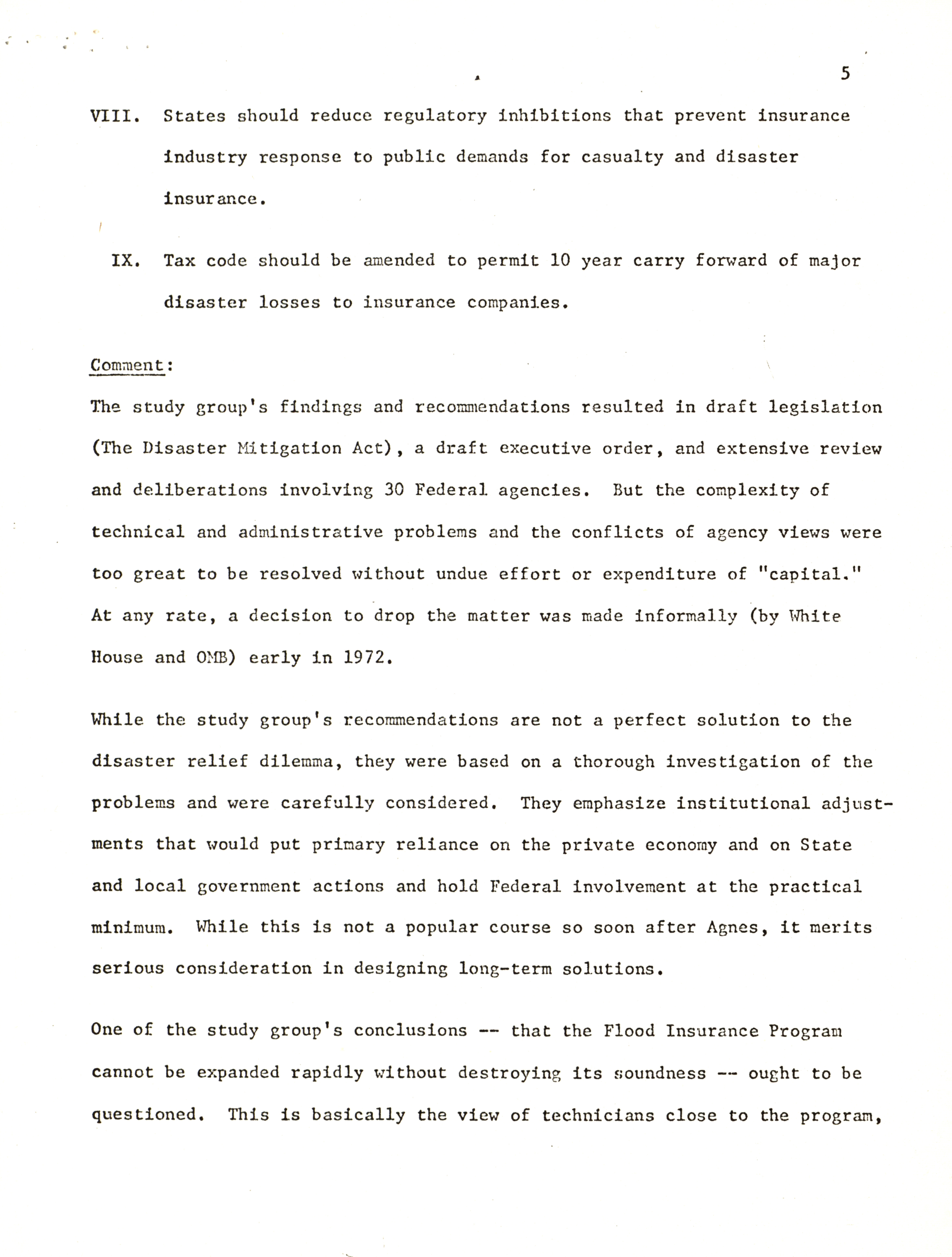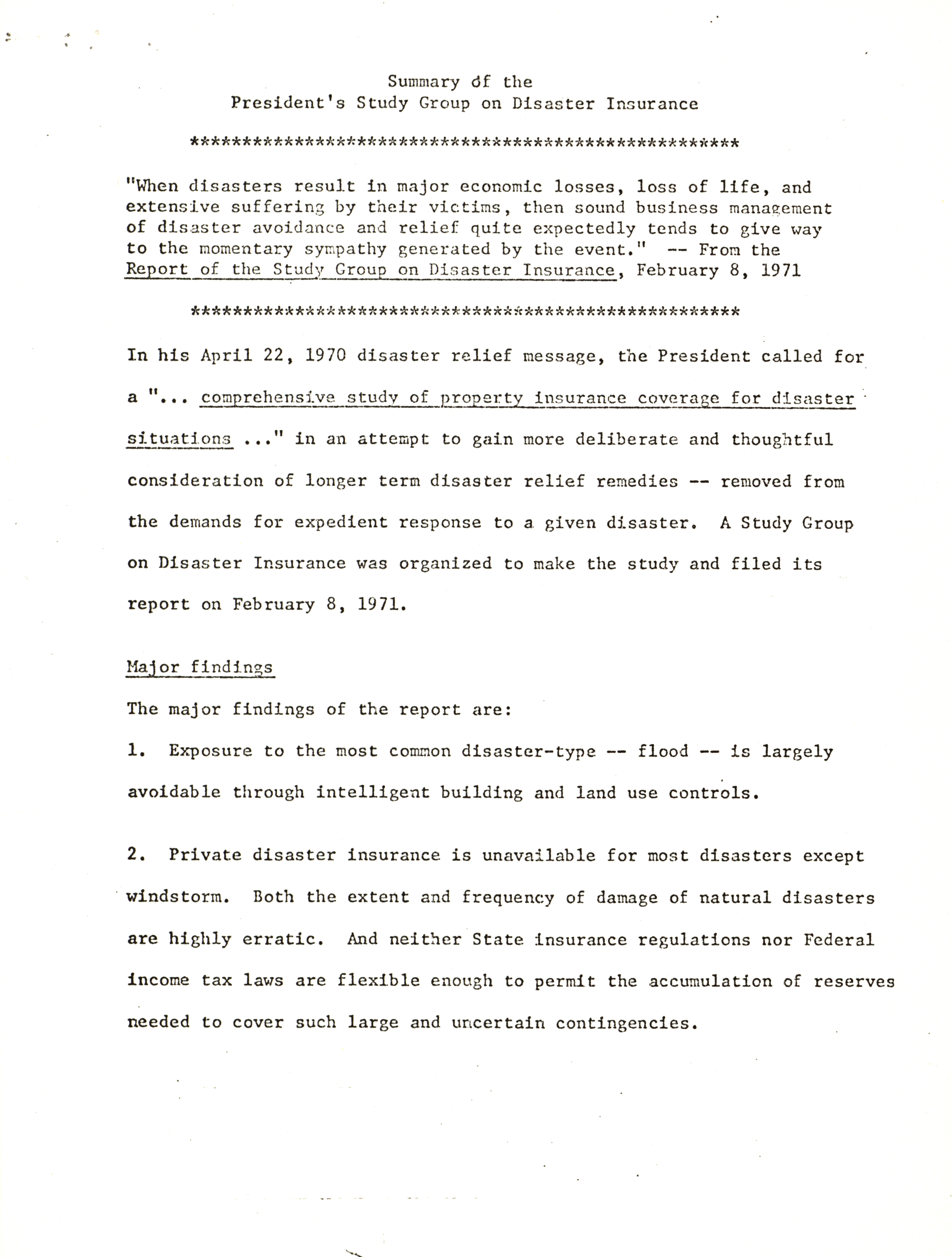 - President's Task Force for Industrial Recovery and Growth and Disaster Insurance memorandums and reports, 1970-1972