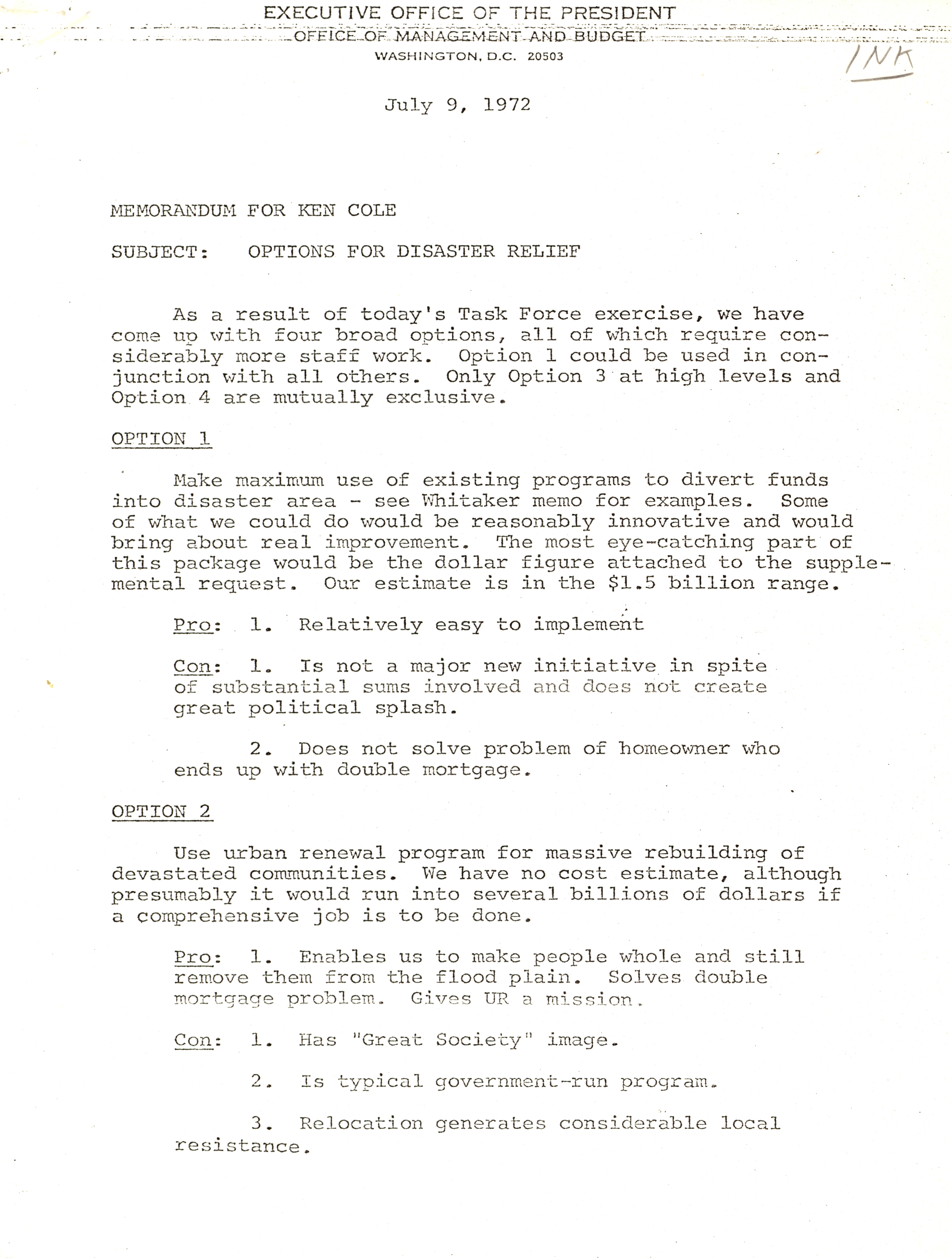 John Whitaker and Frank Carlucci memorandum for Ken Cole, July 9, 1972 Item Info